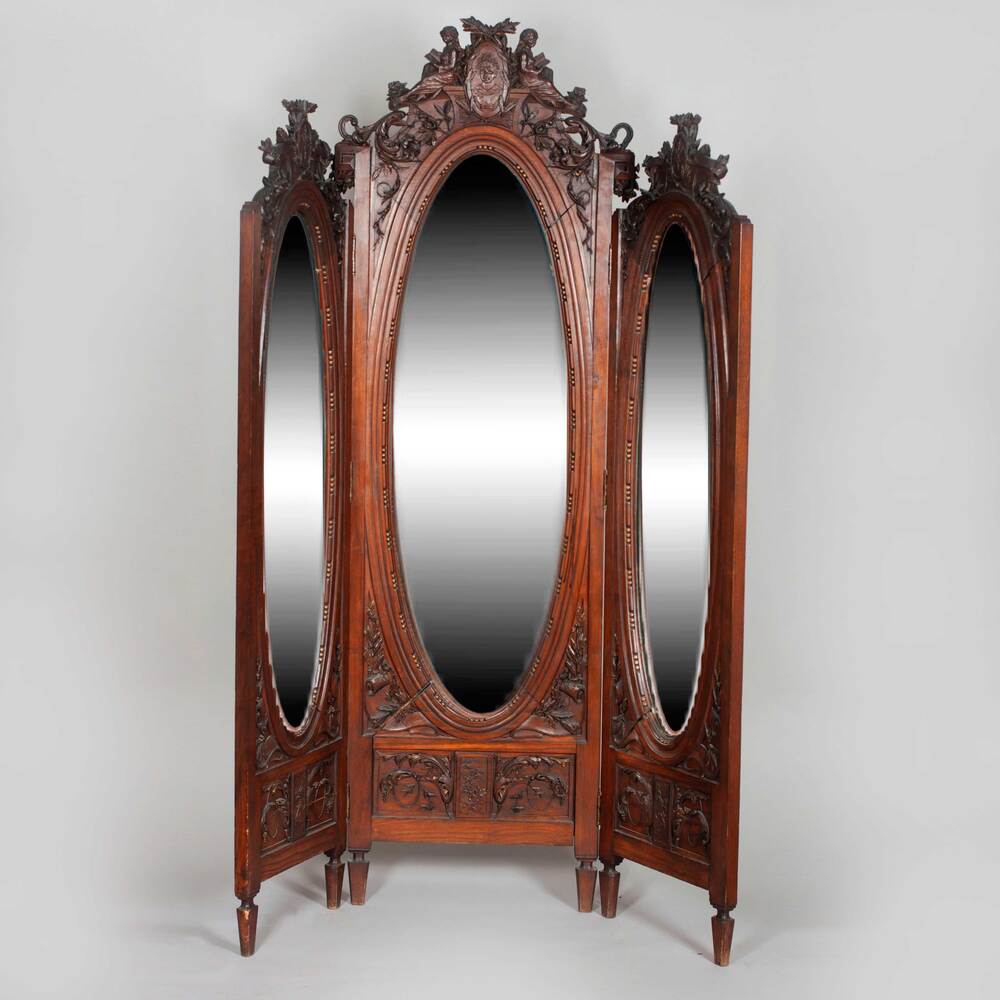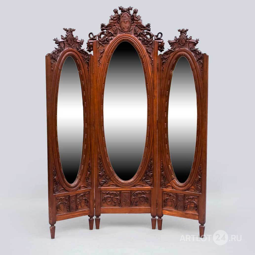 Красное дерево, массив, резьба, тонировка, зеркальное стекло