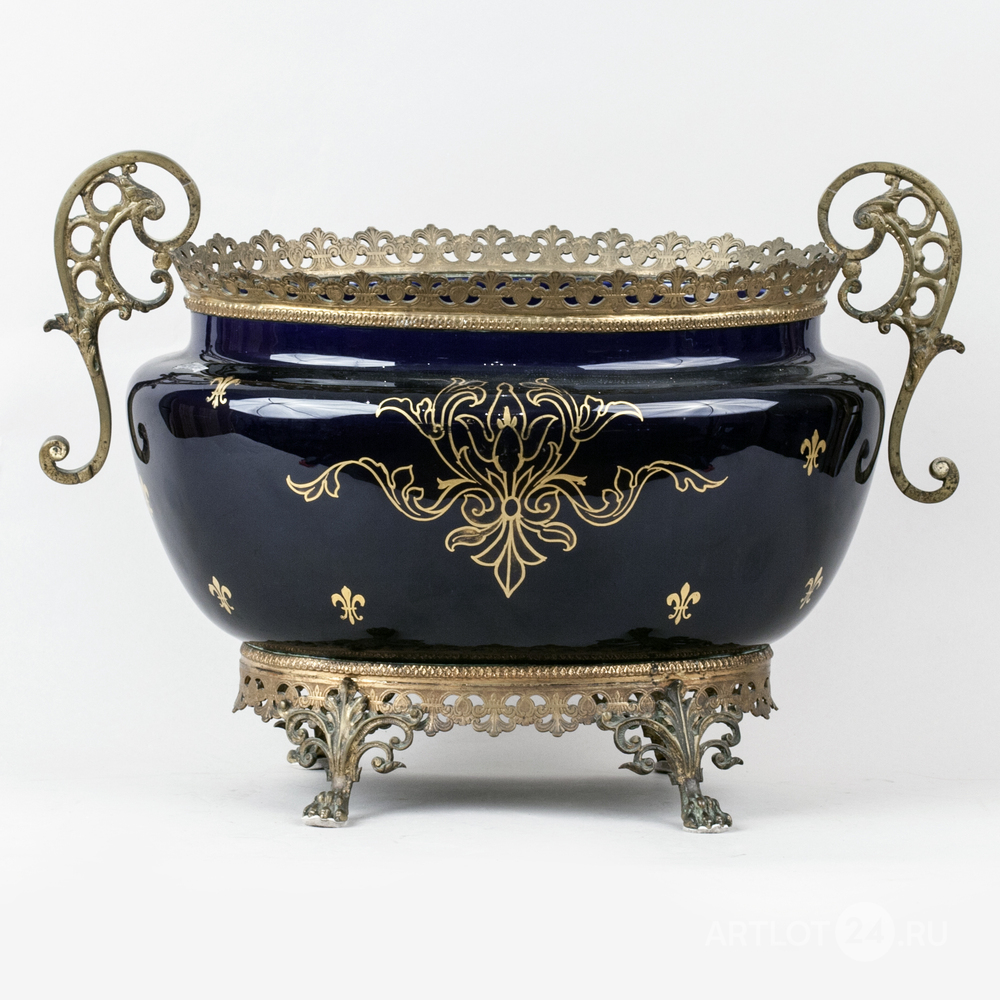Фарфор, крытье кобальтом, золочение, бронза, чеканка, клеймо отсутствует, Европа, первая треть XX века, размеры (в/д/ш): 33 х 47 х 29 см