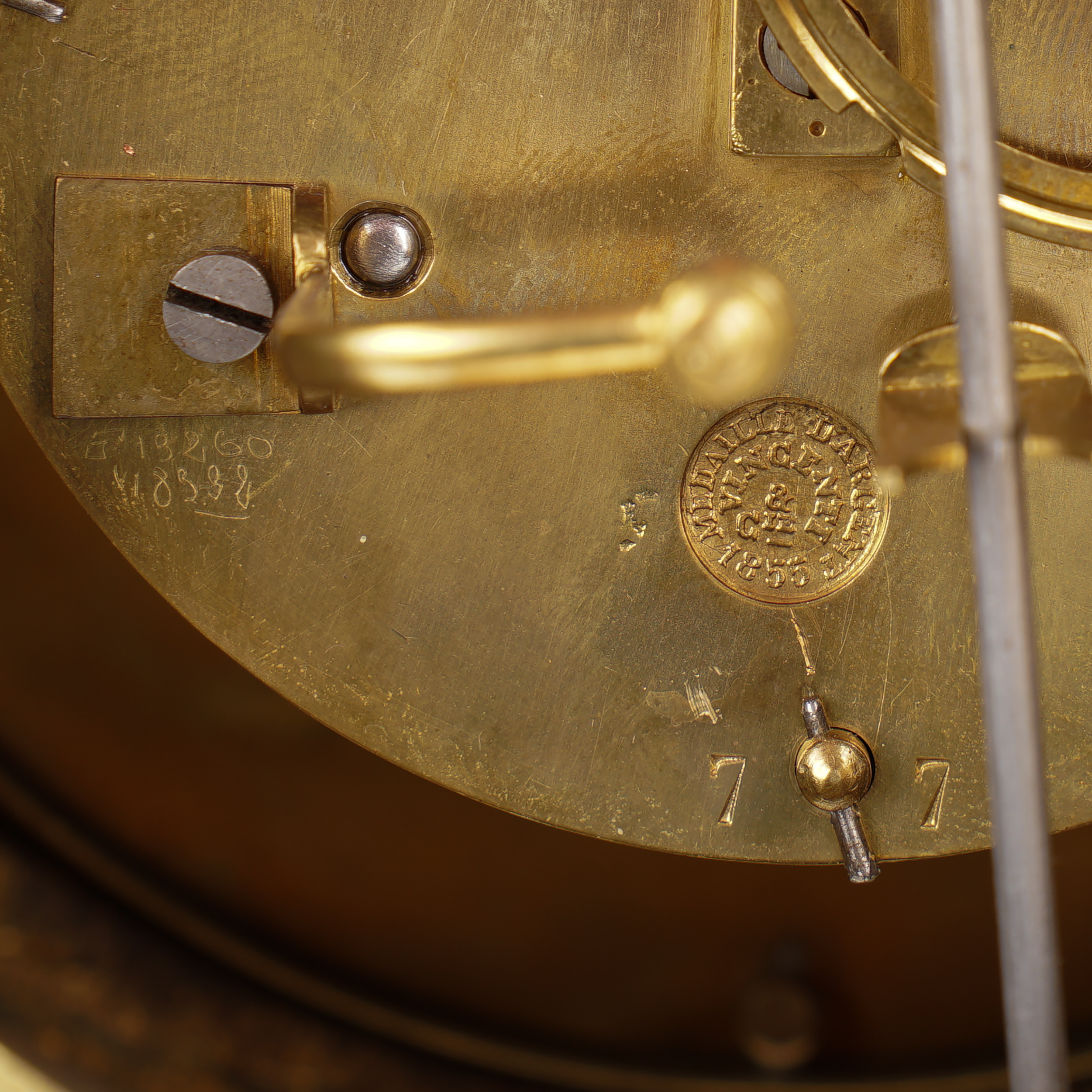 Состояние: В хорошей сохранности, на ходу, проведена профилактика, часы с получасовым боем, с восьмидневным заводом, ключ и маятник в комплекте. Галерея не несет ответственности за работу механизма