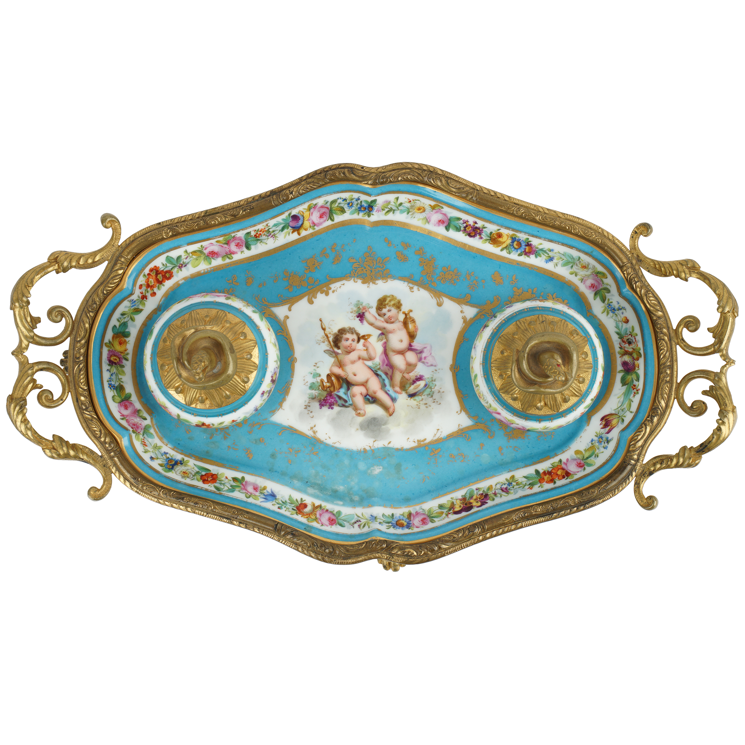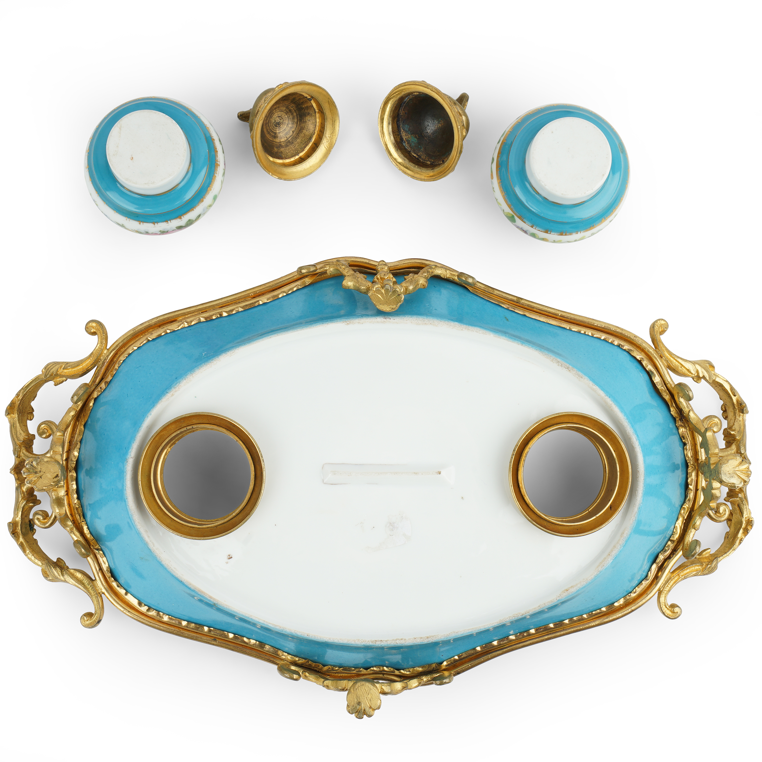 Фарфор, надглазурная роспись, золочение, бронза, литье, чеканка. Марки отсутствуют.
