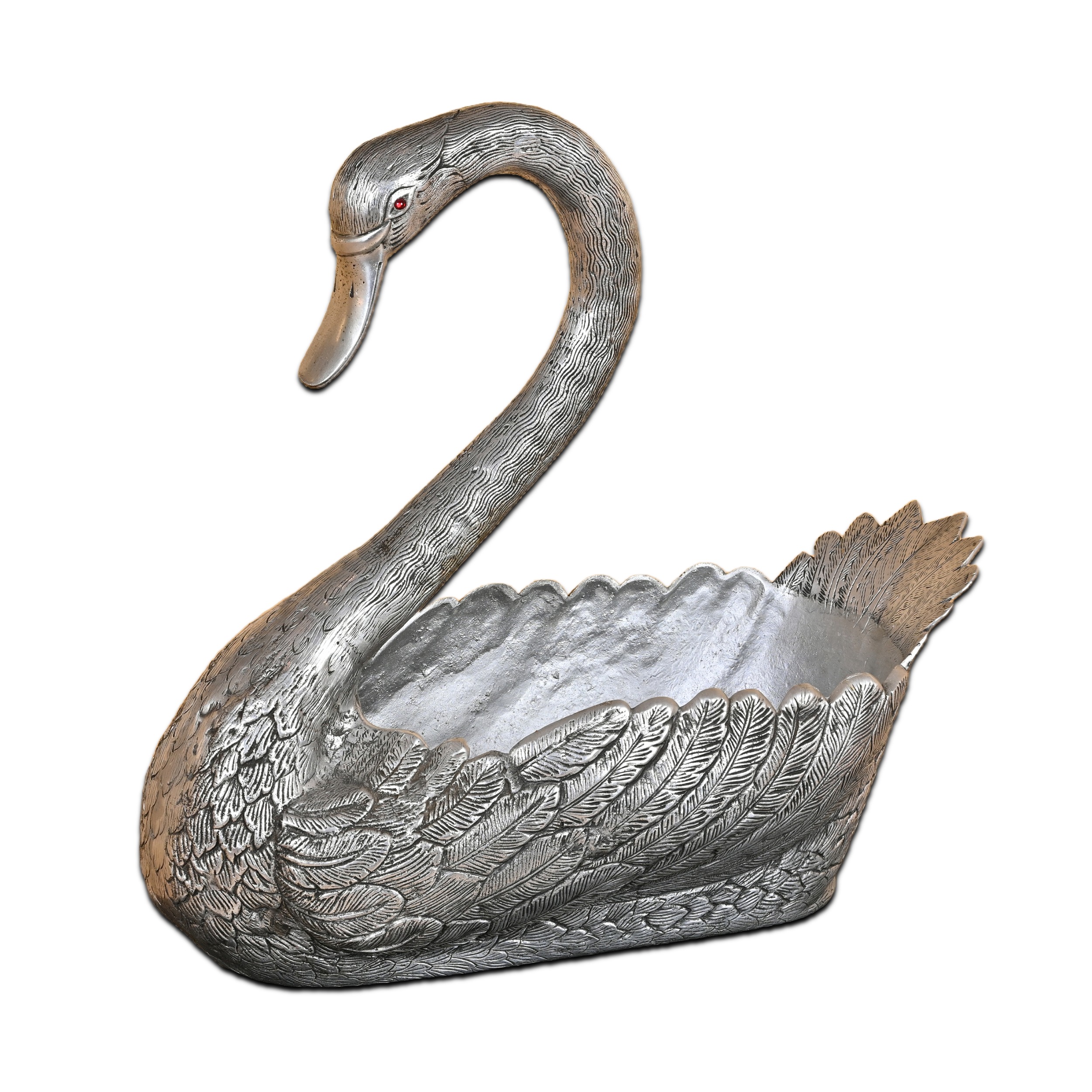 Металл, литье, штихельная резьба, серебрение, клеймо-монограмма «МС» в основании, размер (в/ш/д): 45 х 23 х 48 см.