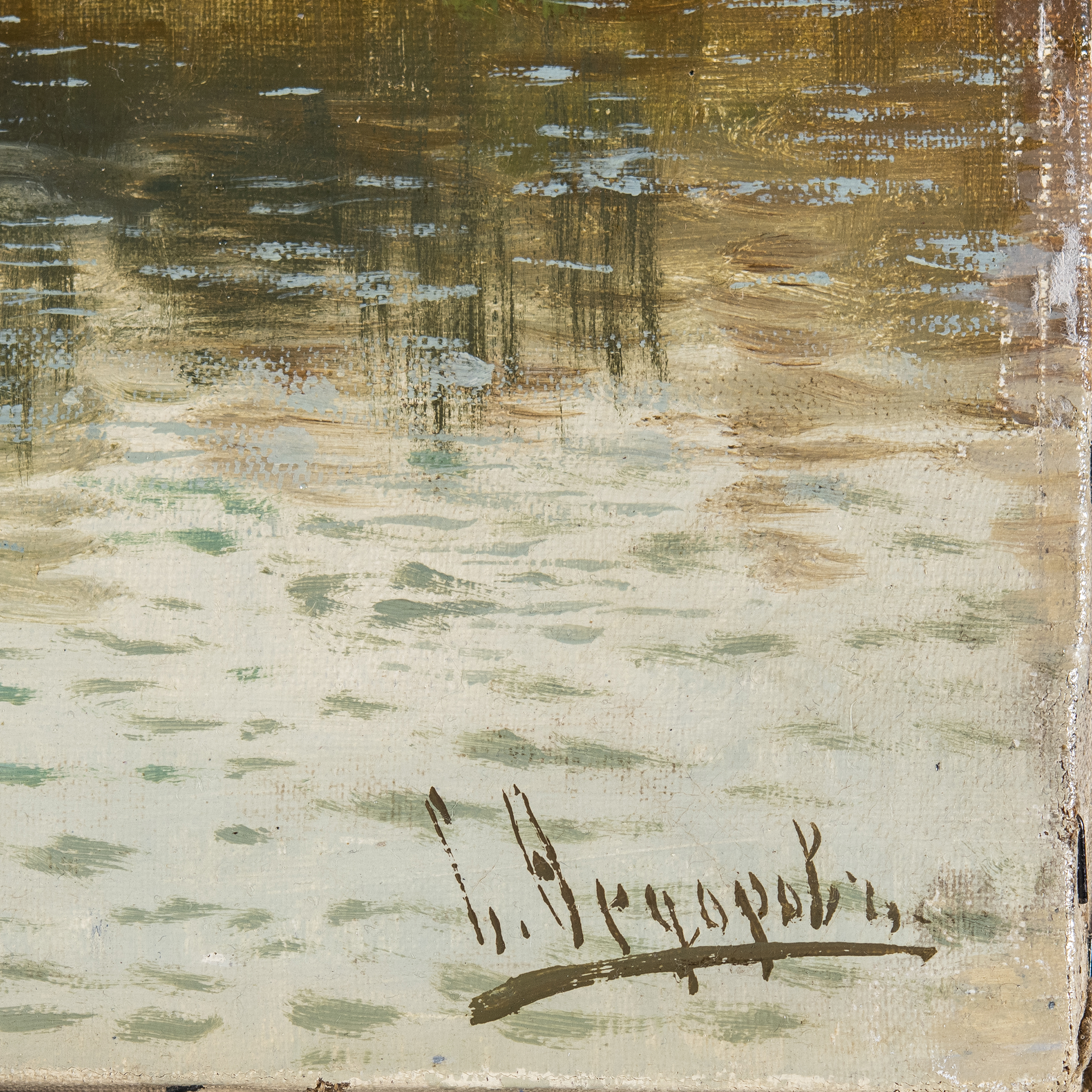 Холст, масло, подпись в правом нижнем углу «С. Федоровъ». Размеры холста: 49 х 84,5 см; в раме: 76,5 х 113 см.