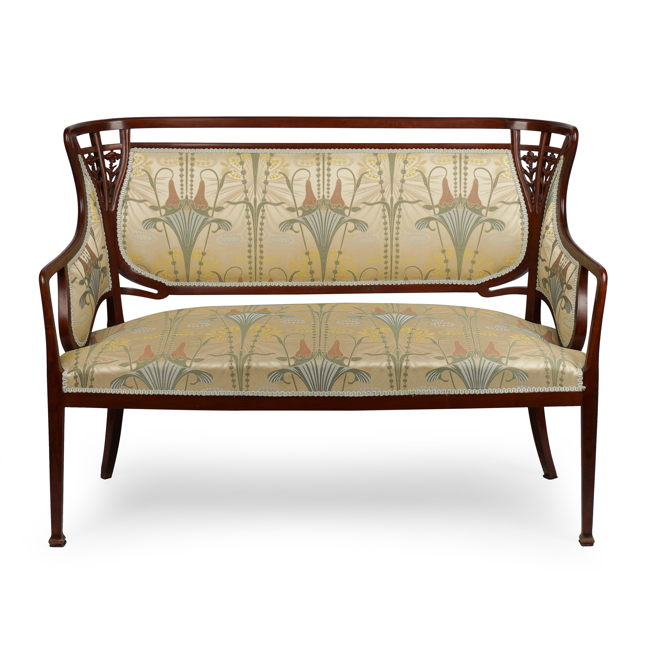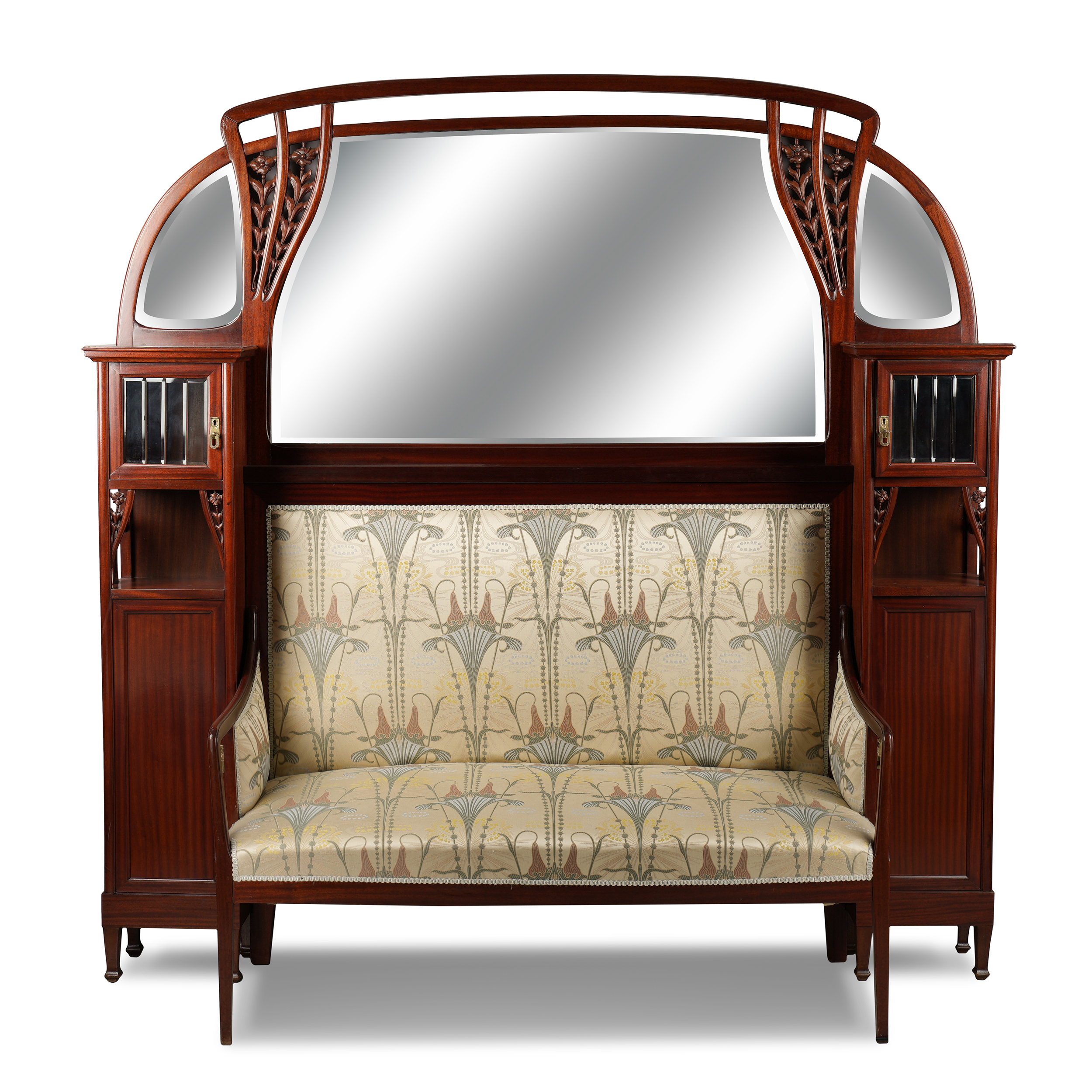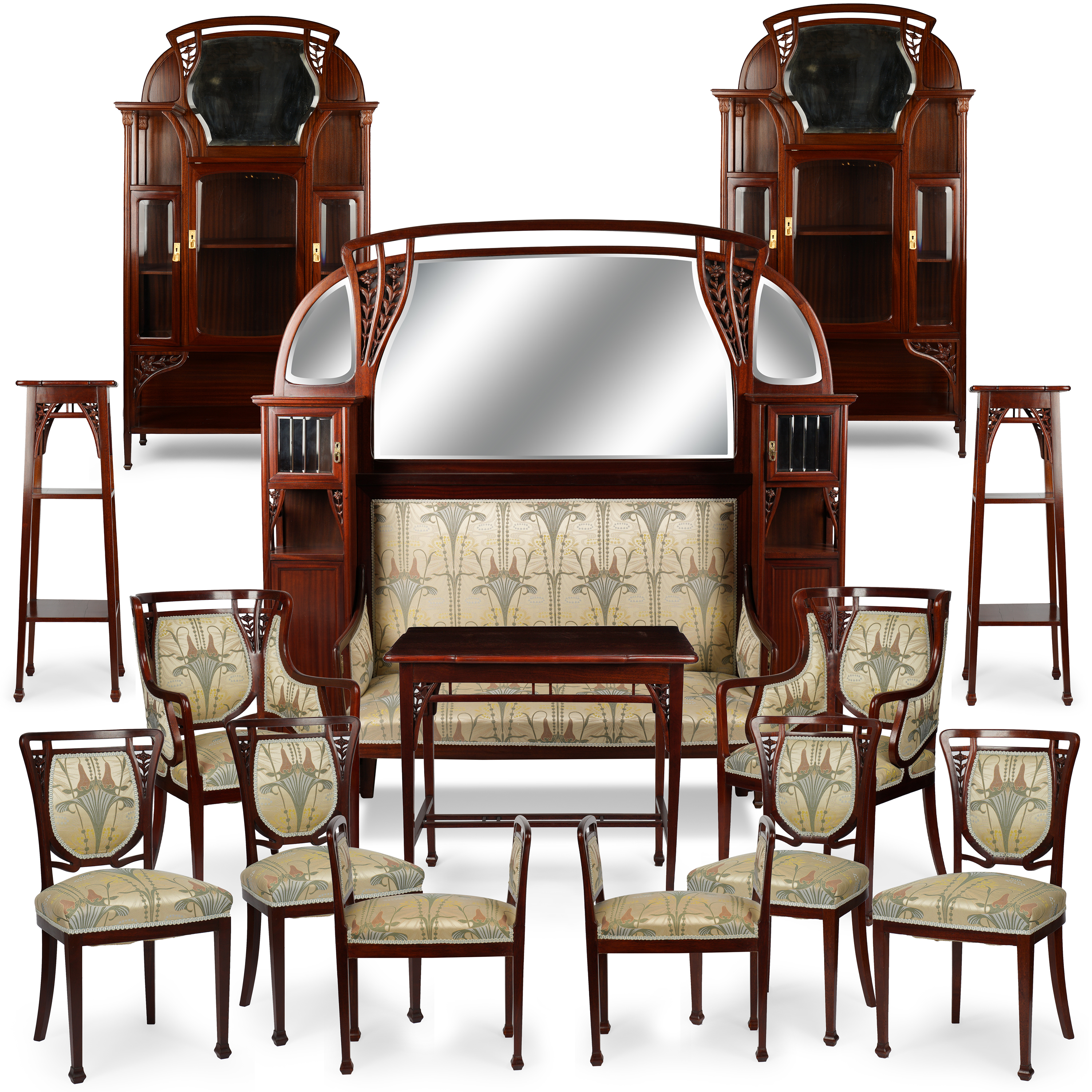 Представленный комплект мебели был создан на петербургской фабрике Мельцера, которая быстро стала одной из самых модных на российском рынке своего времени. Торговый дом “Мельцер Ф. и К” быстро завоевал статус поставщика императорского дворца. Роман Мельцер был придворным архитектором и дизайнером, мебель фирмы изготавливалась даже для Зимнего дворца и особняка С. П. Рябушинского в Москве. Благодаря Роману Мельцеру миру стал известен художник Петров-Водкин.