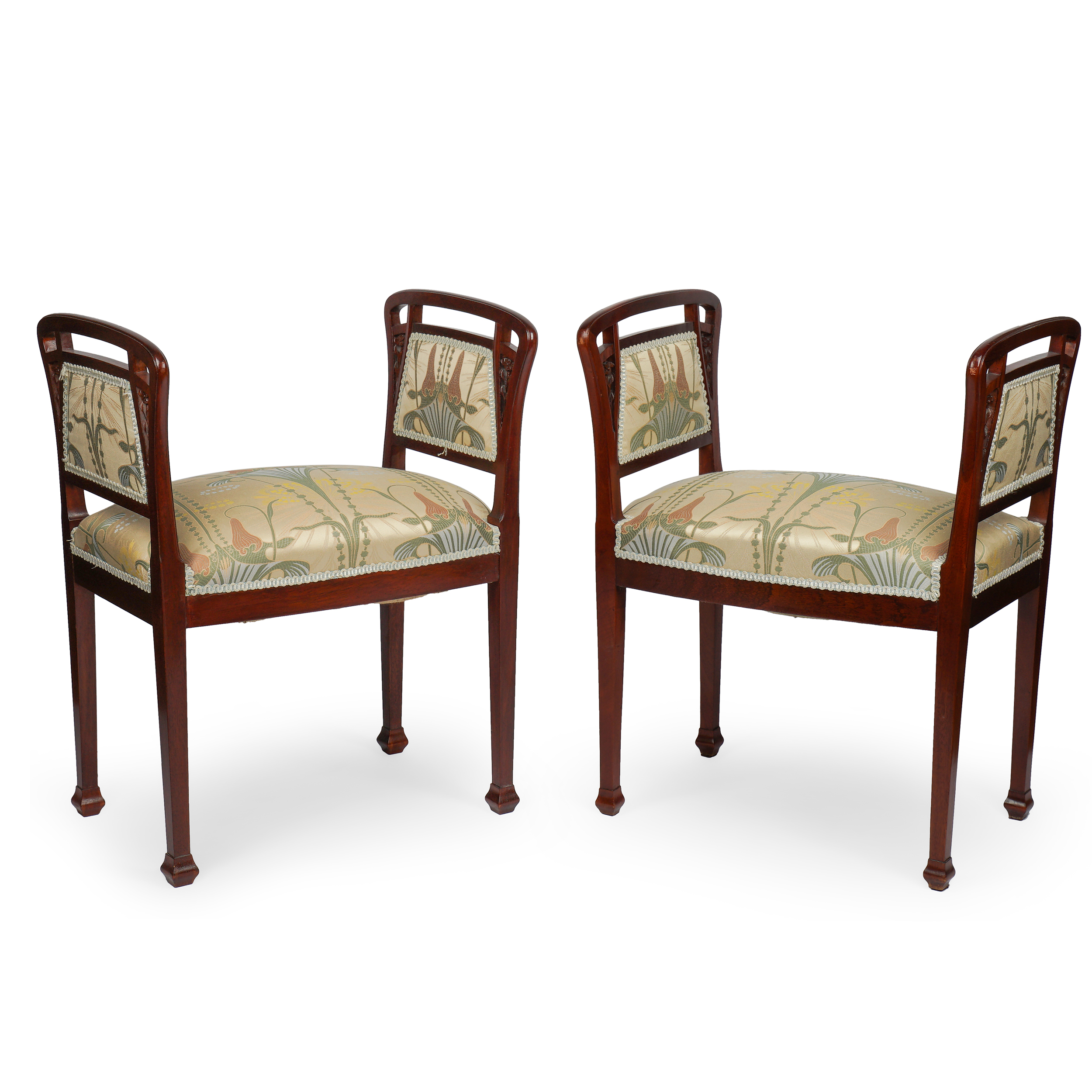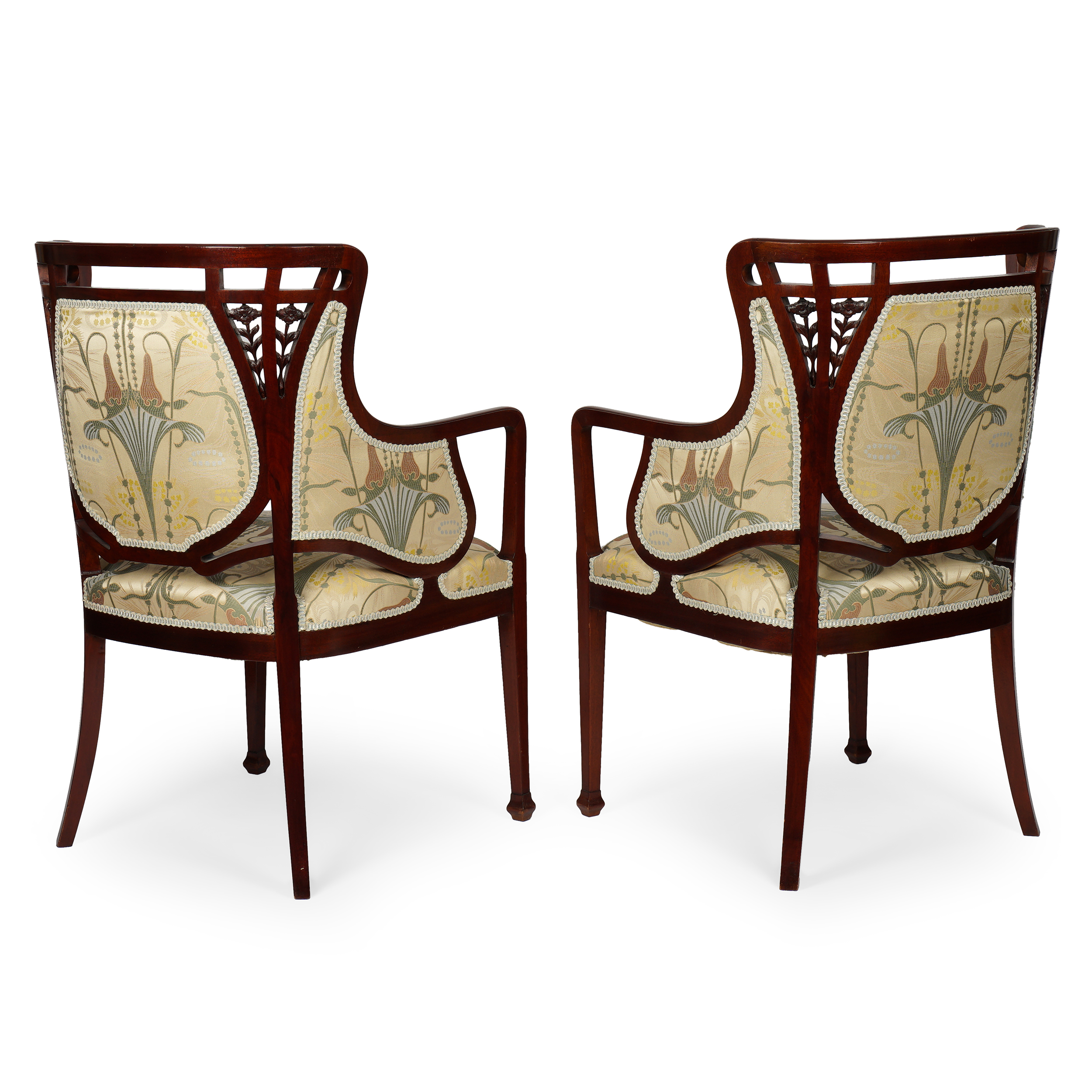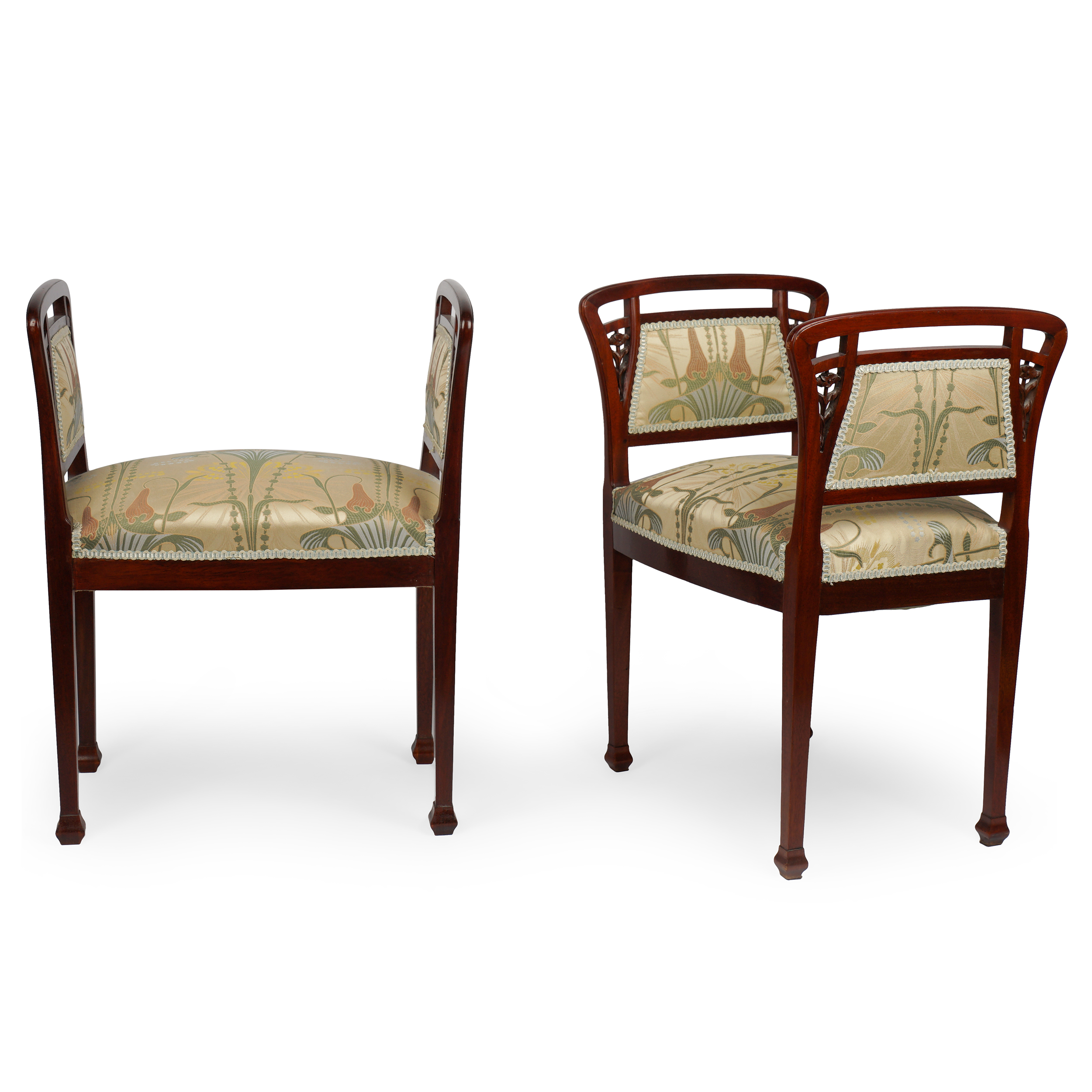Представленный комплект мебели был создан на петербургской фабрике Мельцера, которая быстро стала одной из самых модных на российском рынке своего времени. Торговый дом “Мельцер Ф. и К” быстро завоевал статус поставщика императорского дворца. Роман Мельцер был придворным архитектором и дизайнером, мебель фирмы изготавливалась даже для Зимнего дворца и особняка С. П. Рябушинского в Москве. Благодаря Роману Мельцеру миру стал известен художник Петров-Водкин.
