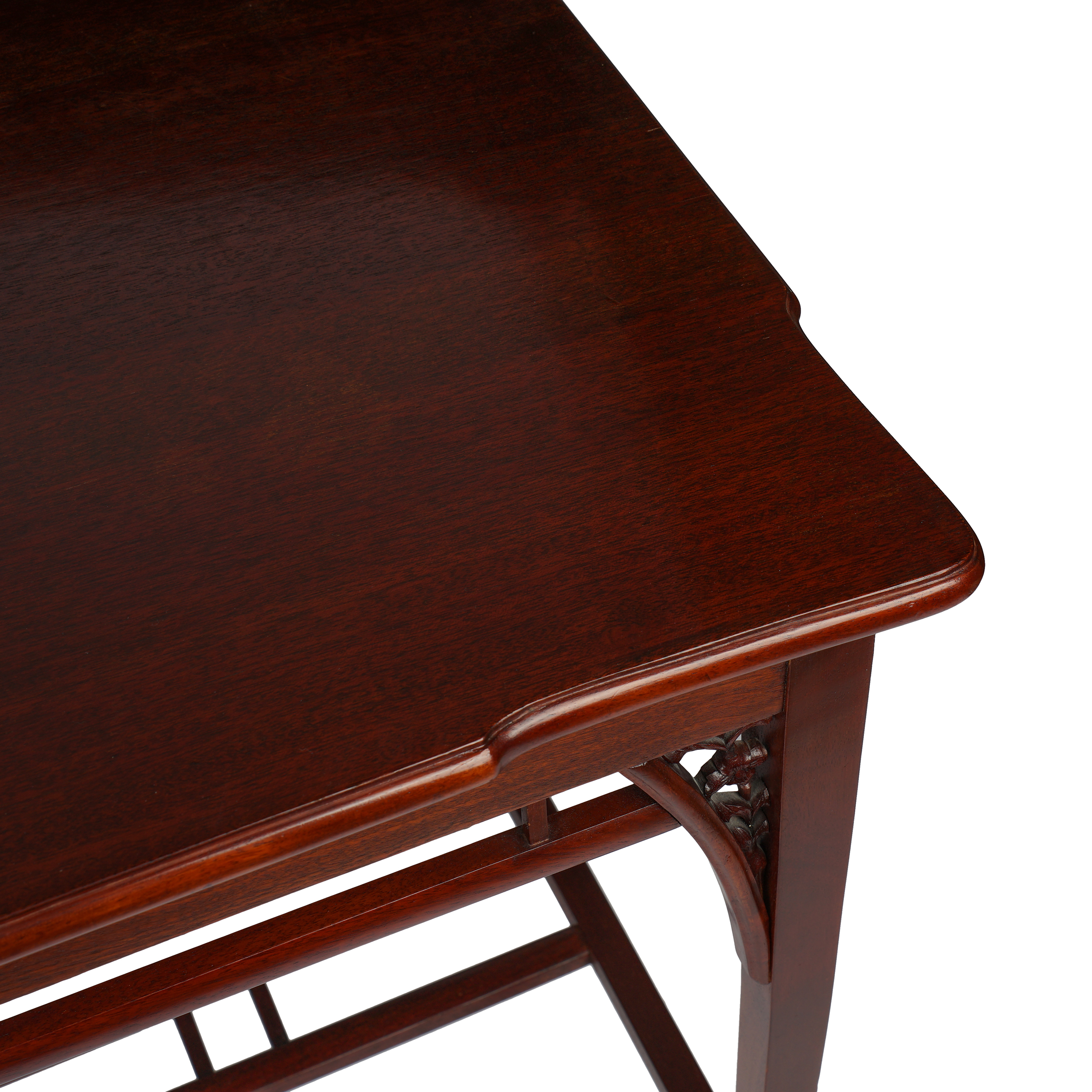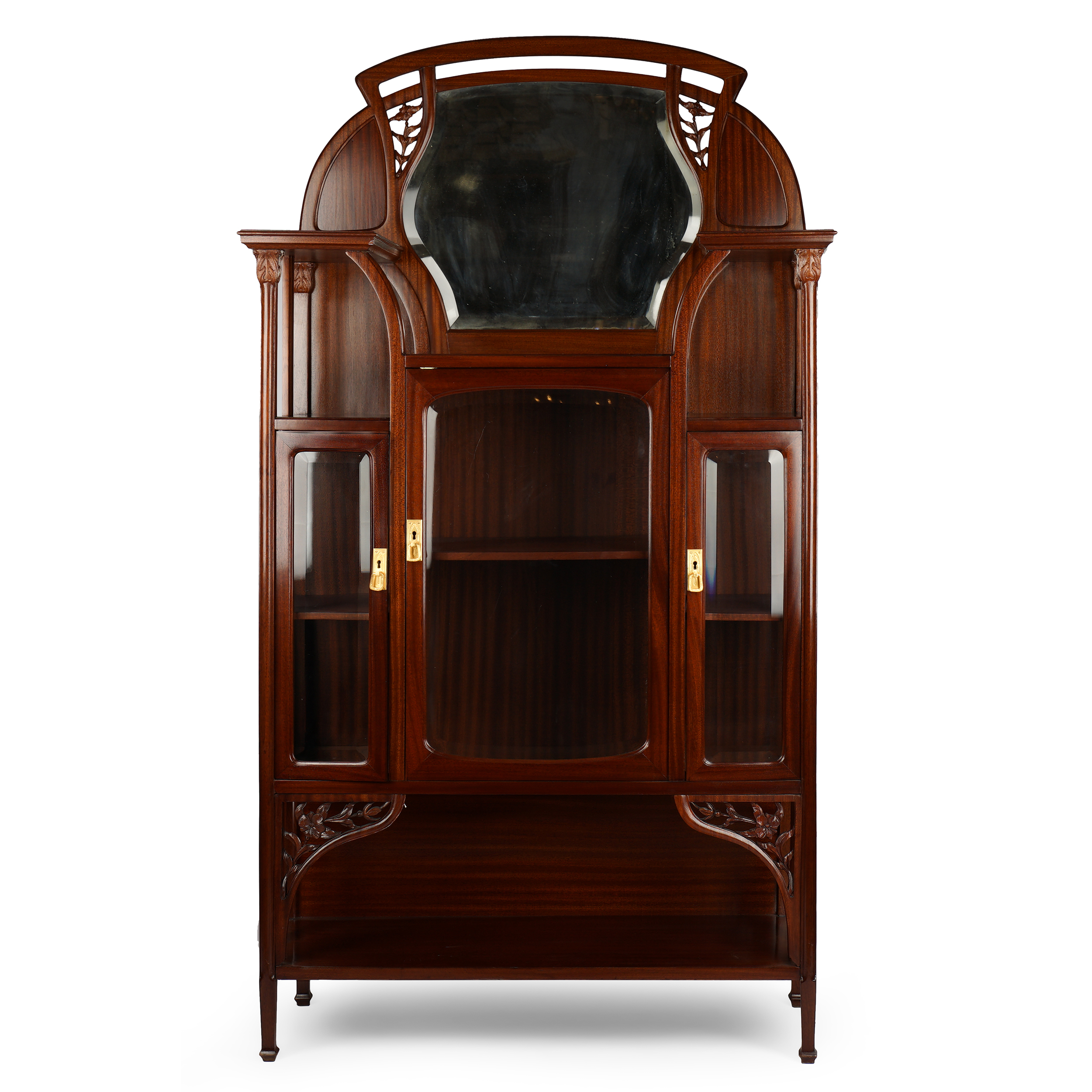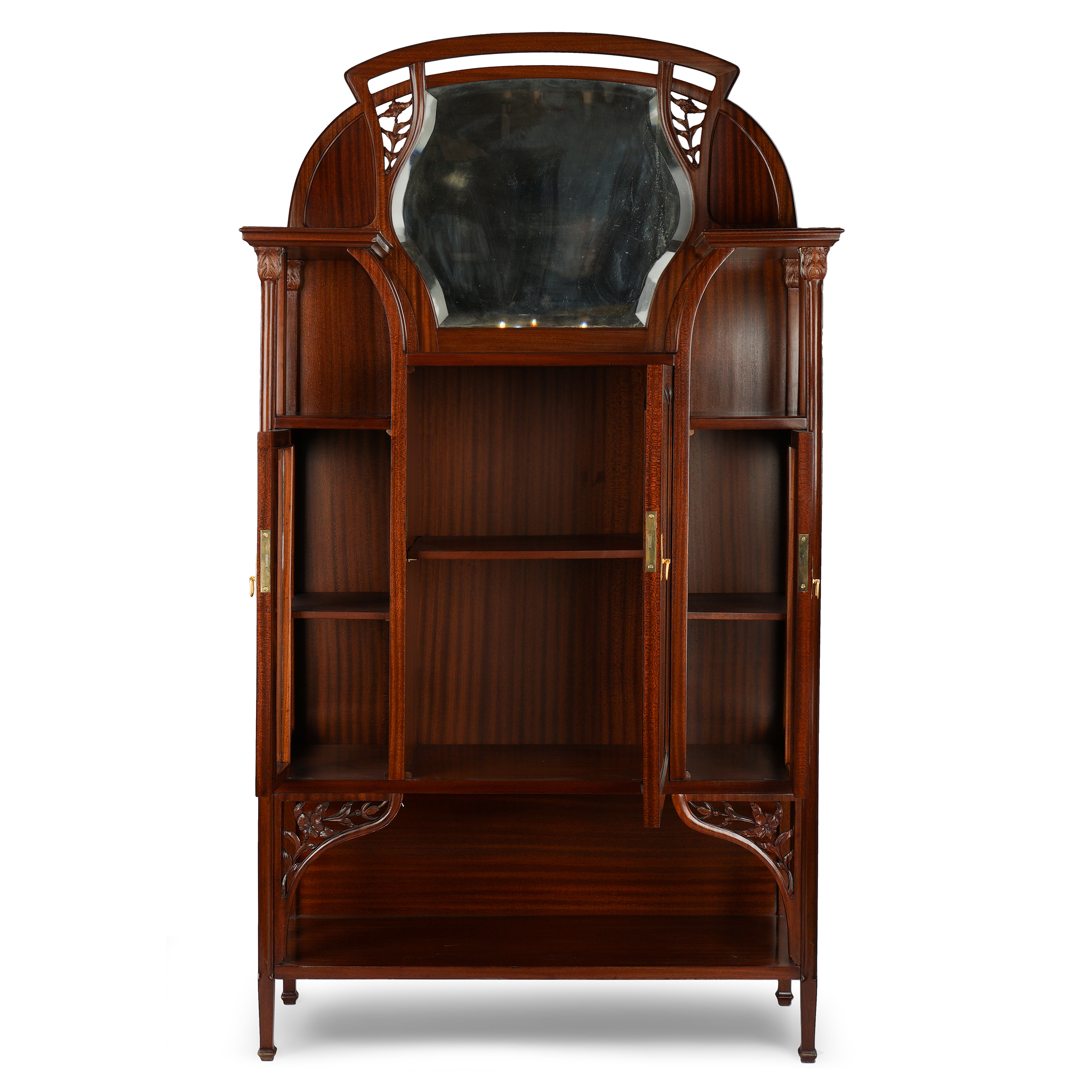 Красное дерево, резьба, тонировка, бесцветное и зеркальное стекло с фацетом, латунь.