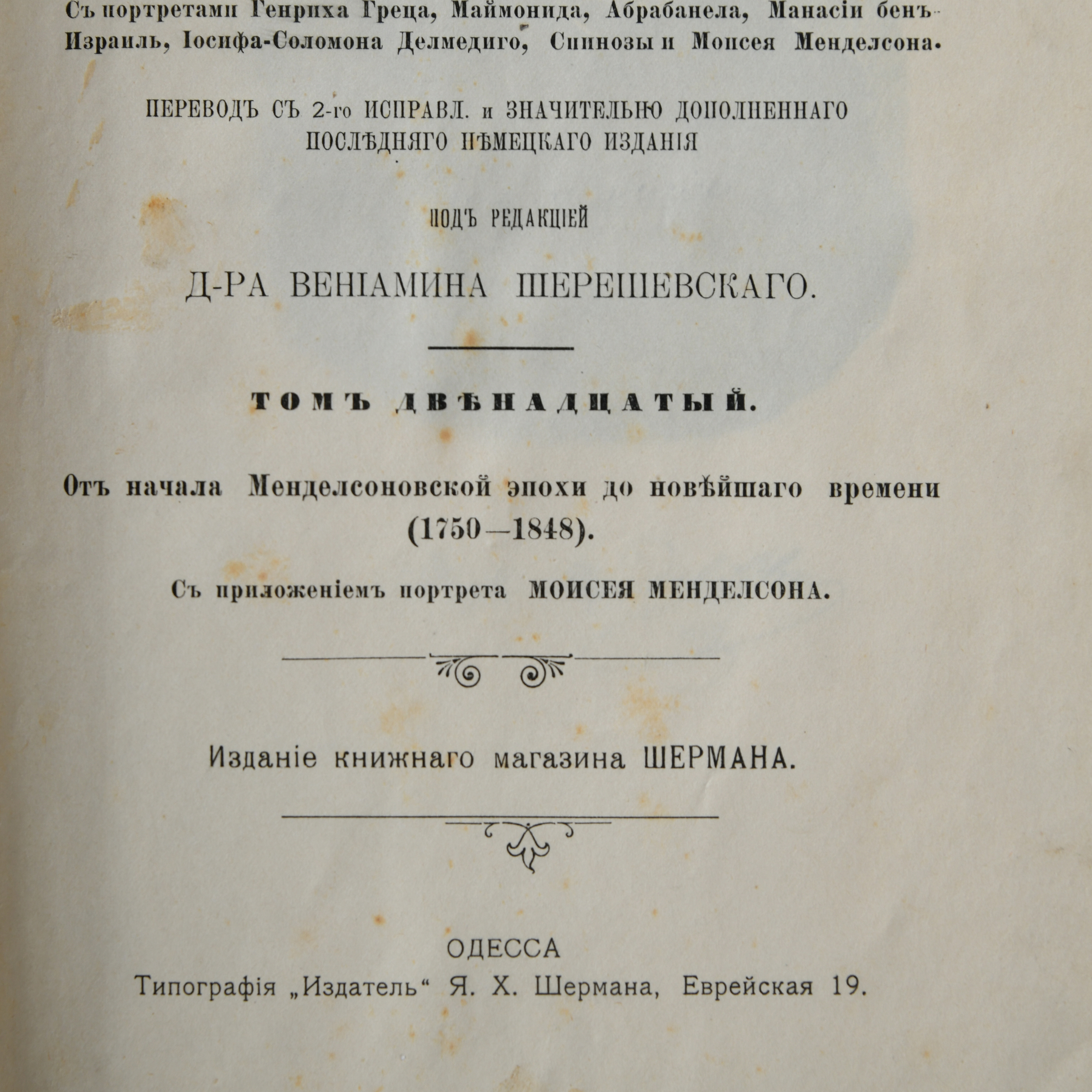 Первый монументальный труд по всеобщей истории евреев выдающегося историка Генриха Греца (1817-1891).