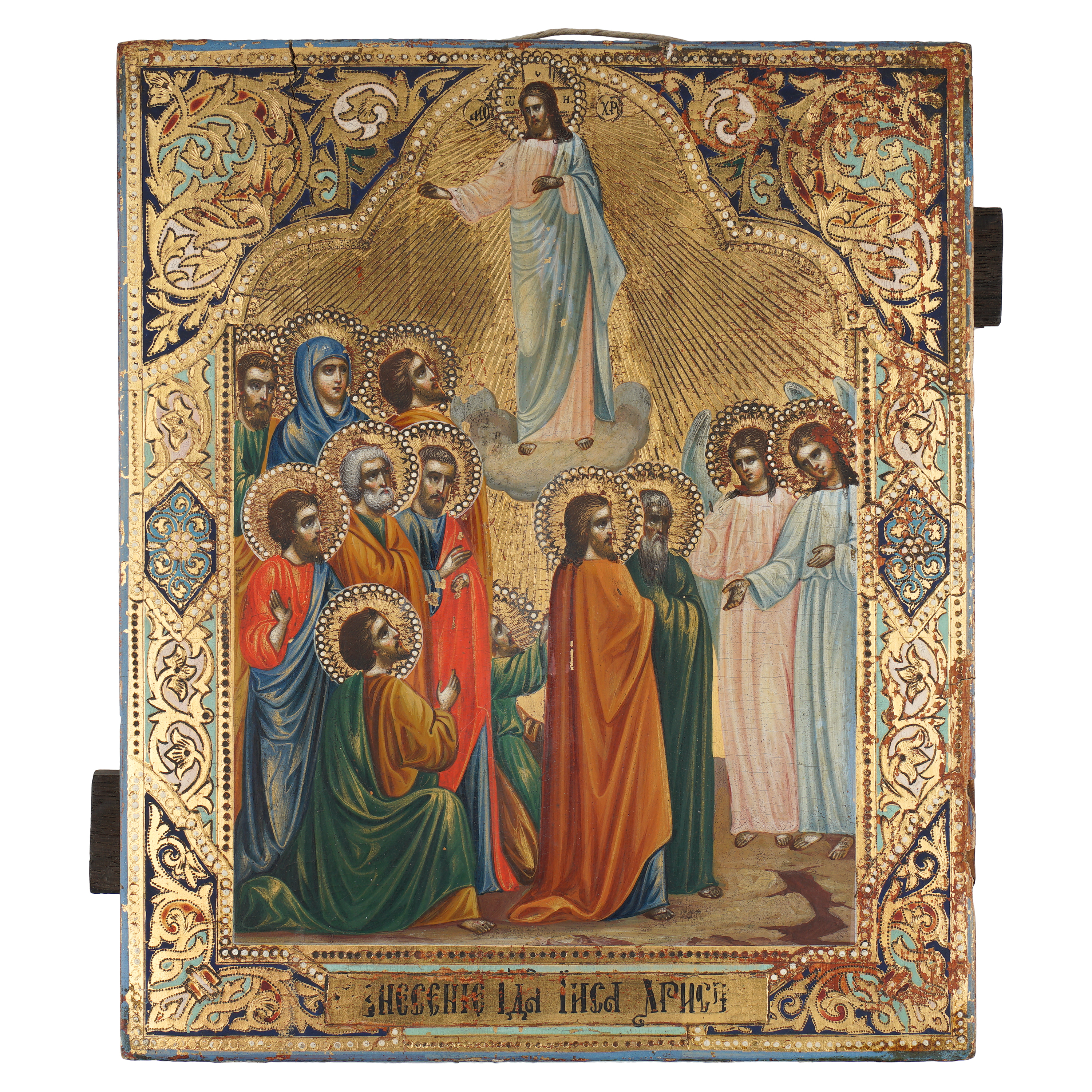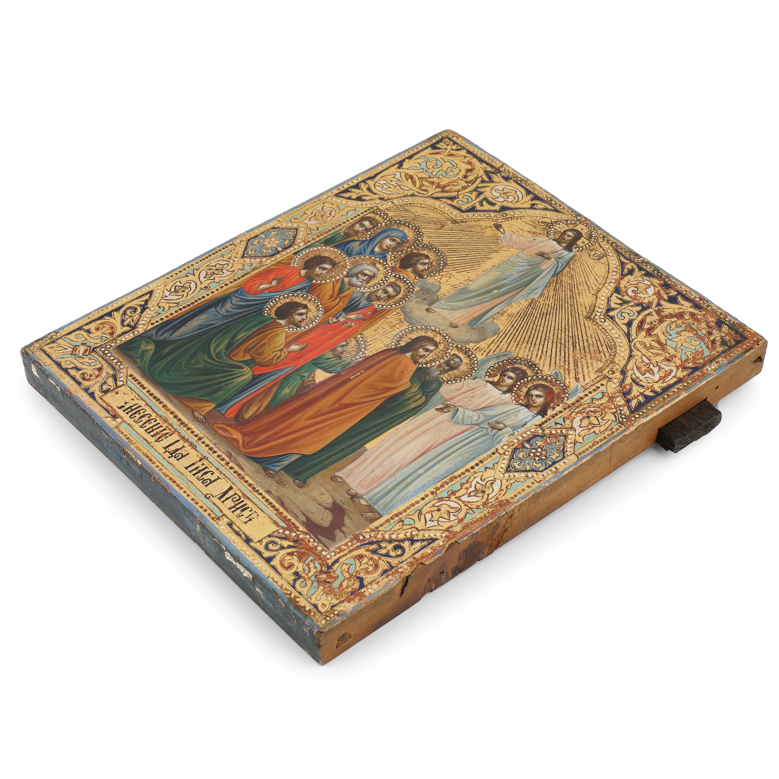 Состояние: Присутствуют следы бытования, сколы красочного слоя, вертикальная трещина на живописи в левой части доски