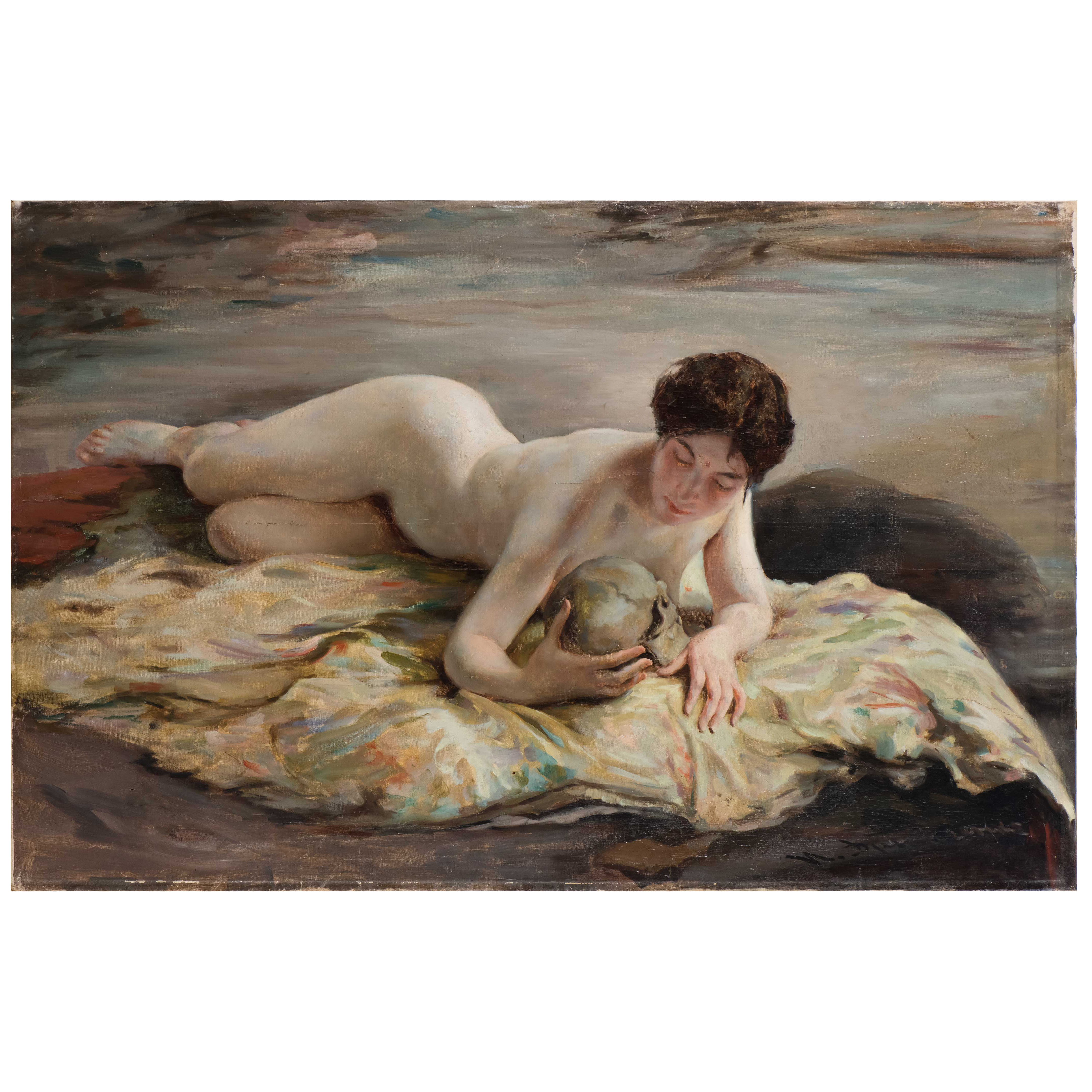 Работа выполнена в жанре "ванитас". Холст, масло, справа внизу подпись «И. Дряпаченко», Иван Кириллович Дряпаченко (1881-1936), Россия, Санкт-Петербург, начало ХХ века, размер холста: 85,3 х 133,5 см, в раме: 109 х 155 см. Экспертное заключение Государственного Русского музея (ГРМ)