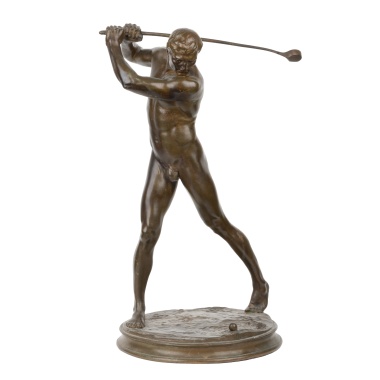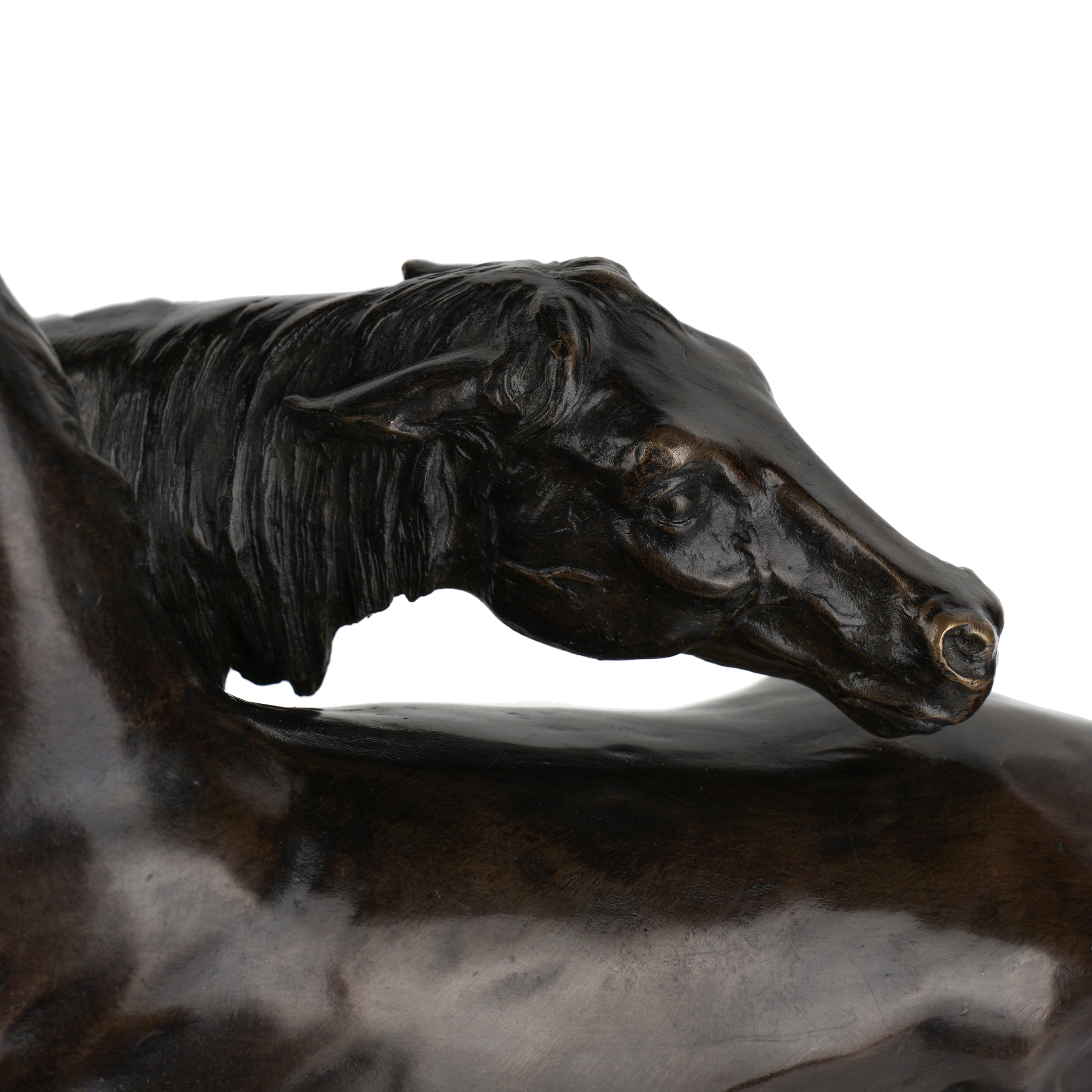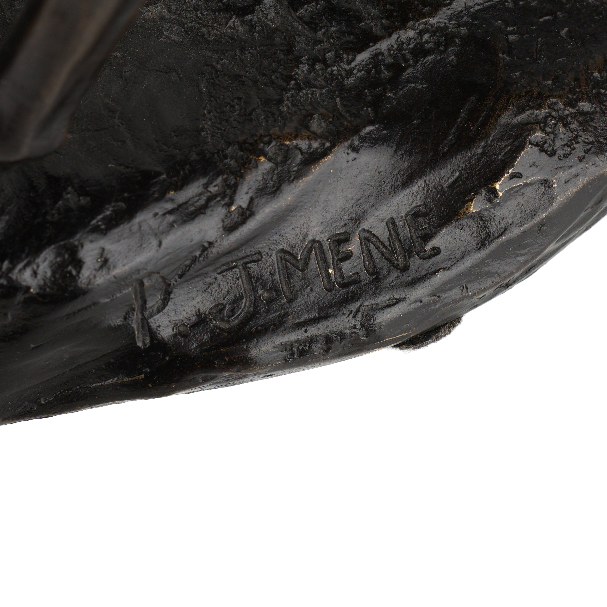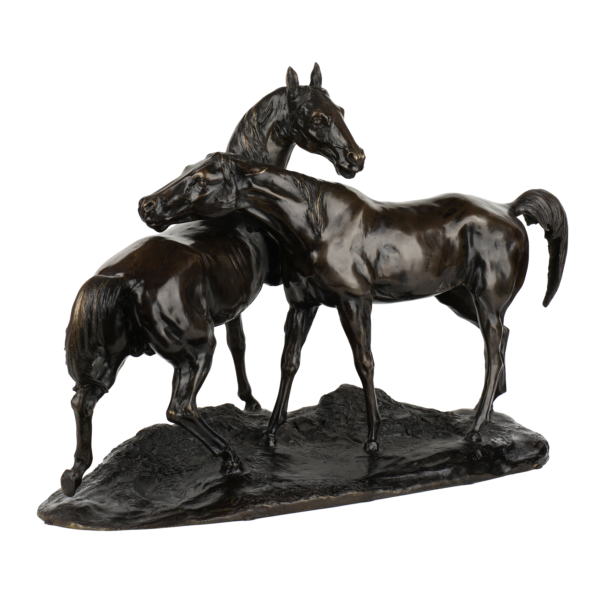 Выполнена по модели французского скульптора Пьера Жюля Мене (Pierre-Jules Mеne, 1810-1871). Бронза, литье, чеканка, патинирование, в основании факсимиле подписи скульптора: «P.J. Mene», размер (в/ш/г): 40 х 56 х 24 см.