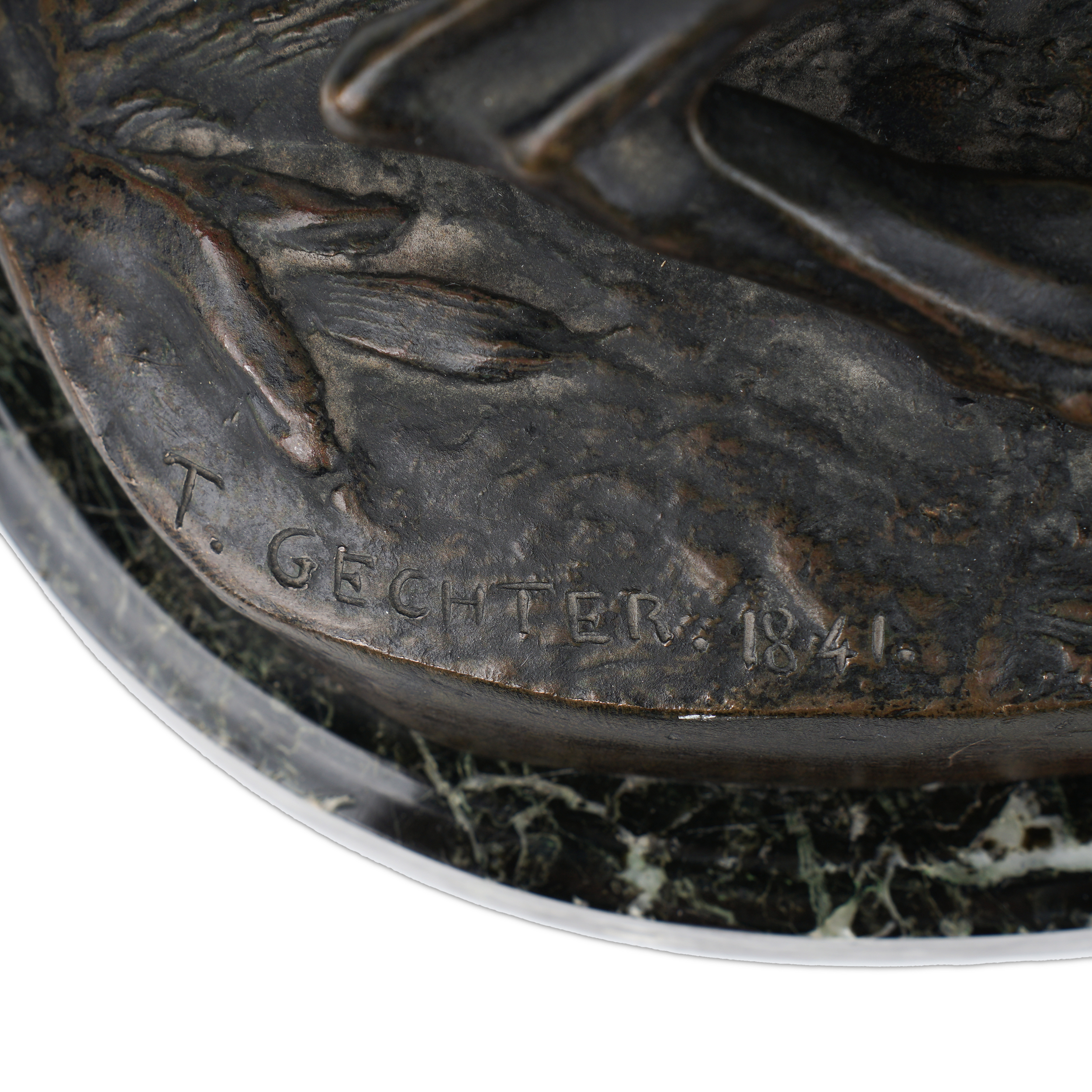 Бронза, литье, патинирование, монтировка, на поземе воспроизведение подписи «T. GECHTER 1841» французского скульптора Жана Франсуа Гехтера (Jean Francois Gechter, 1795-1844), размеры (в/ш/г): 39 х 45 х 17 см