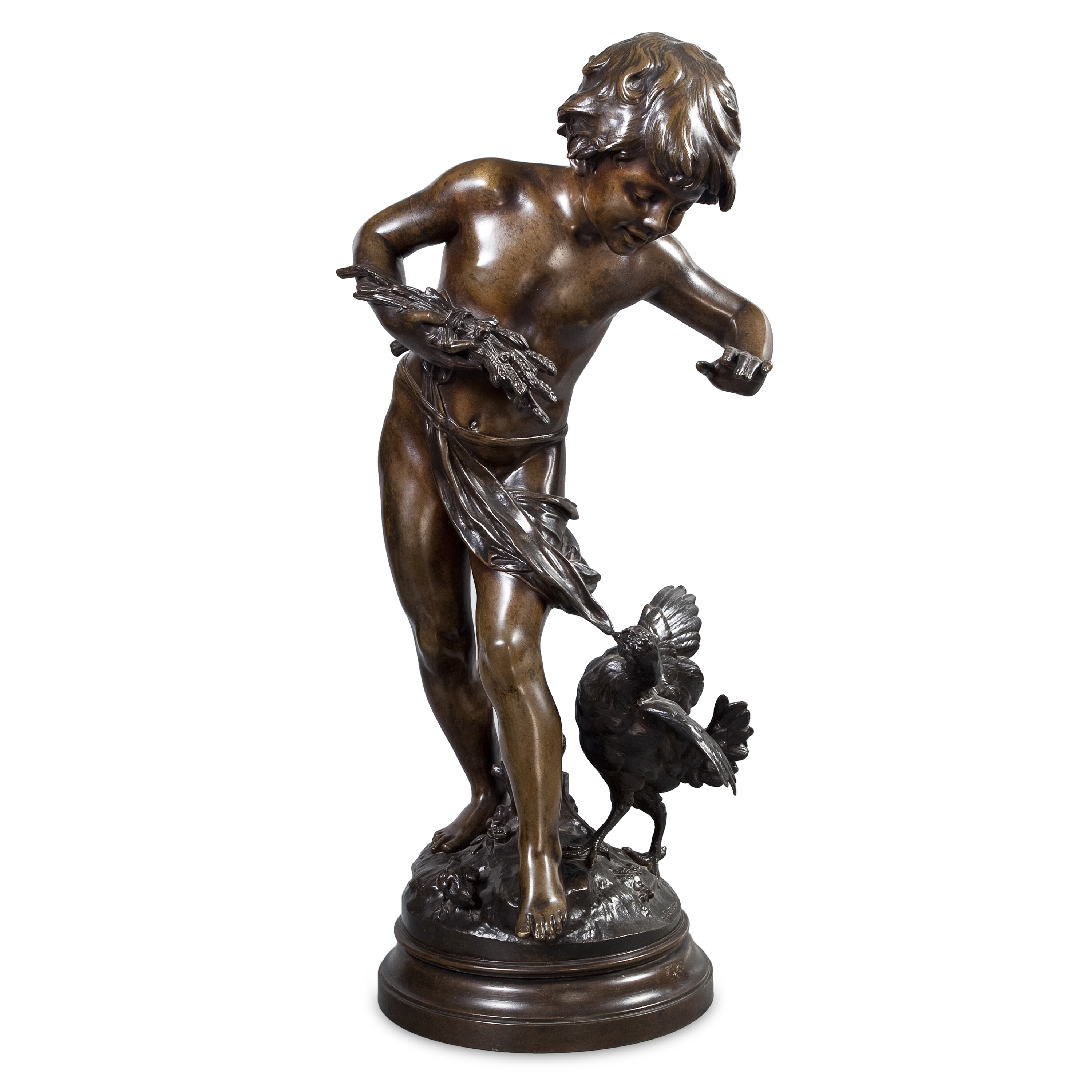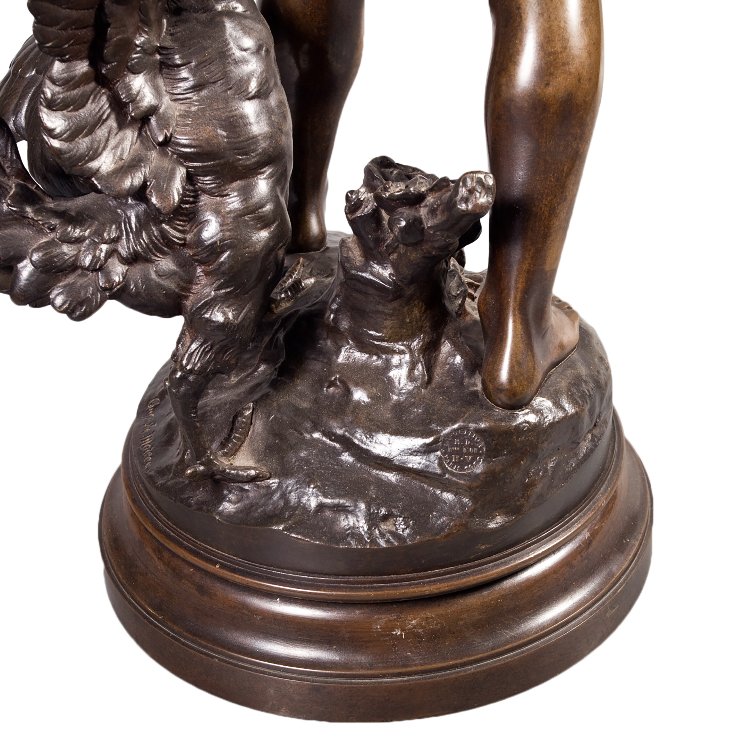 Выполнена по модели французского скульптора Луи-Огюста Моро (Louis-Auguste Moreau, 1855-1919). Бронза, литье, проработка, патинирование, подпись «Auguste Moreau», литейный штамп с надписью «H.V Paris 1900», высота - 54 см.