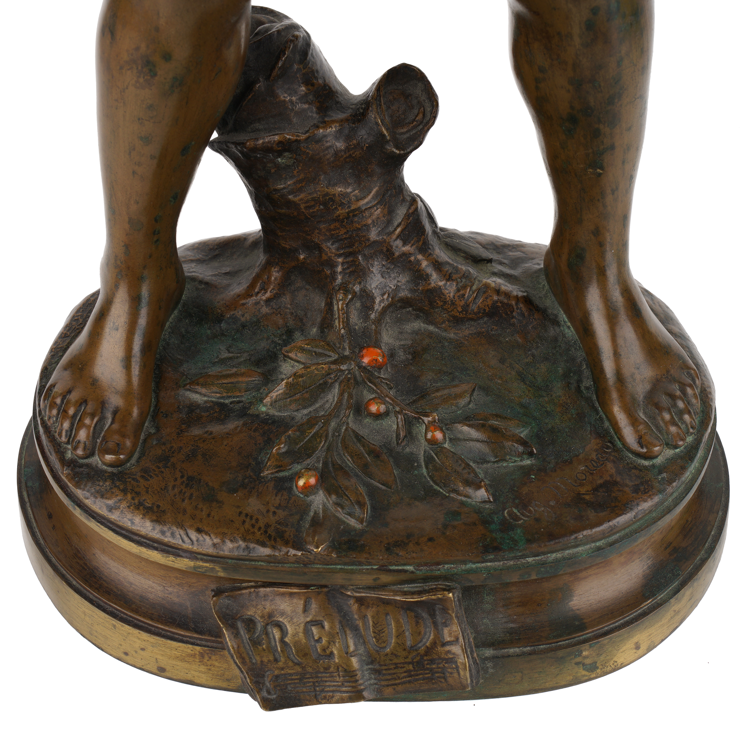 По модели французского скульптора Луи-Огюста Моро (Louis-Auguste Moreau, 1855-1919) под оригинальным названием «Прелюдия». Бронза, литье, проработка, тёмно-коричневое патинирование, в основании «Prelude», на позёме в литье факсимиле подписи скульптора «Auguste Moreau», «EP»; высота – 50 см