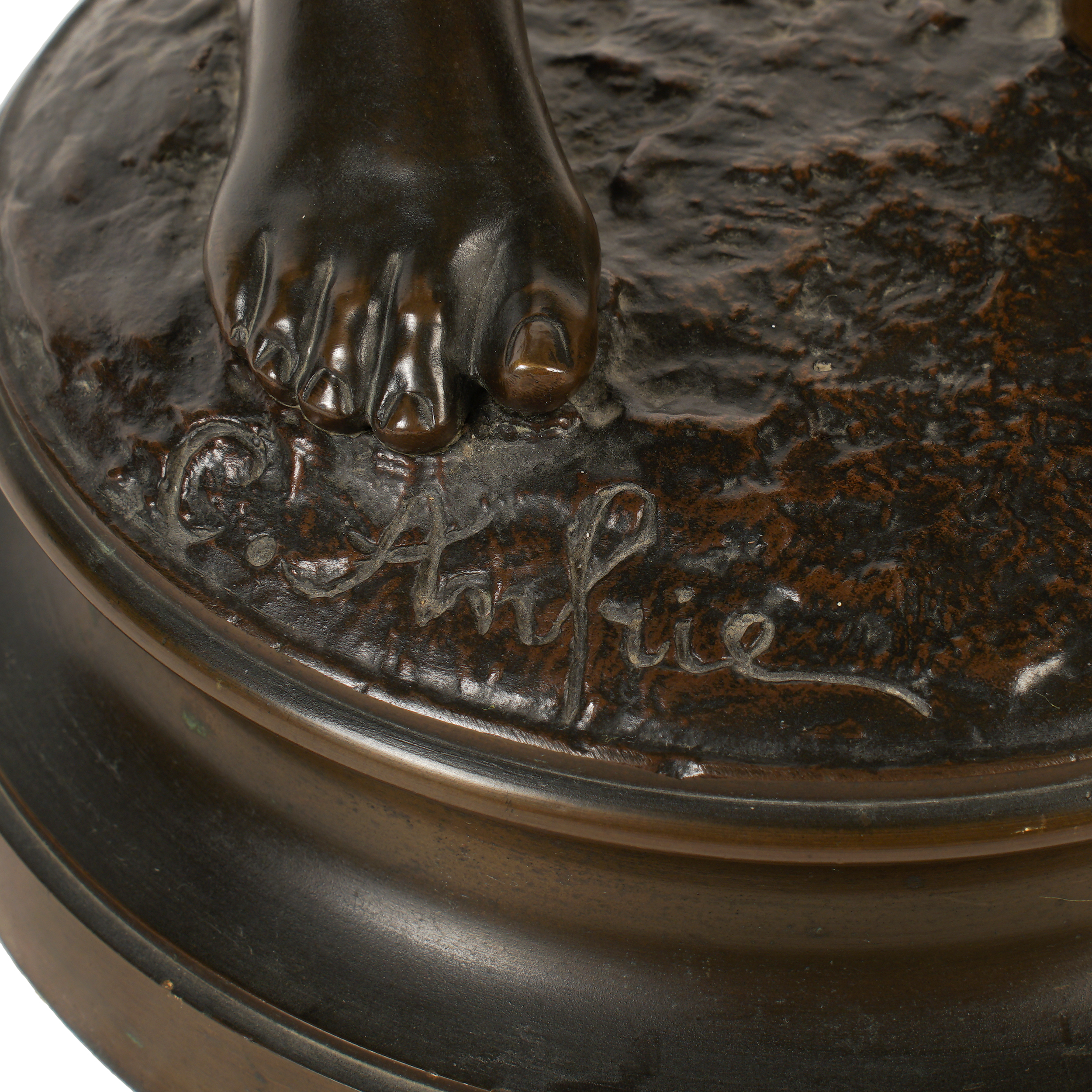 Бронза, литье, патинирование, монтировка; на основании «Elle Ronfle», в литье факсимиле подписи «C. Anfrie».