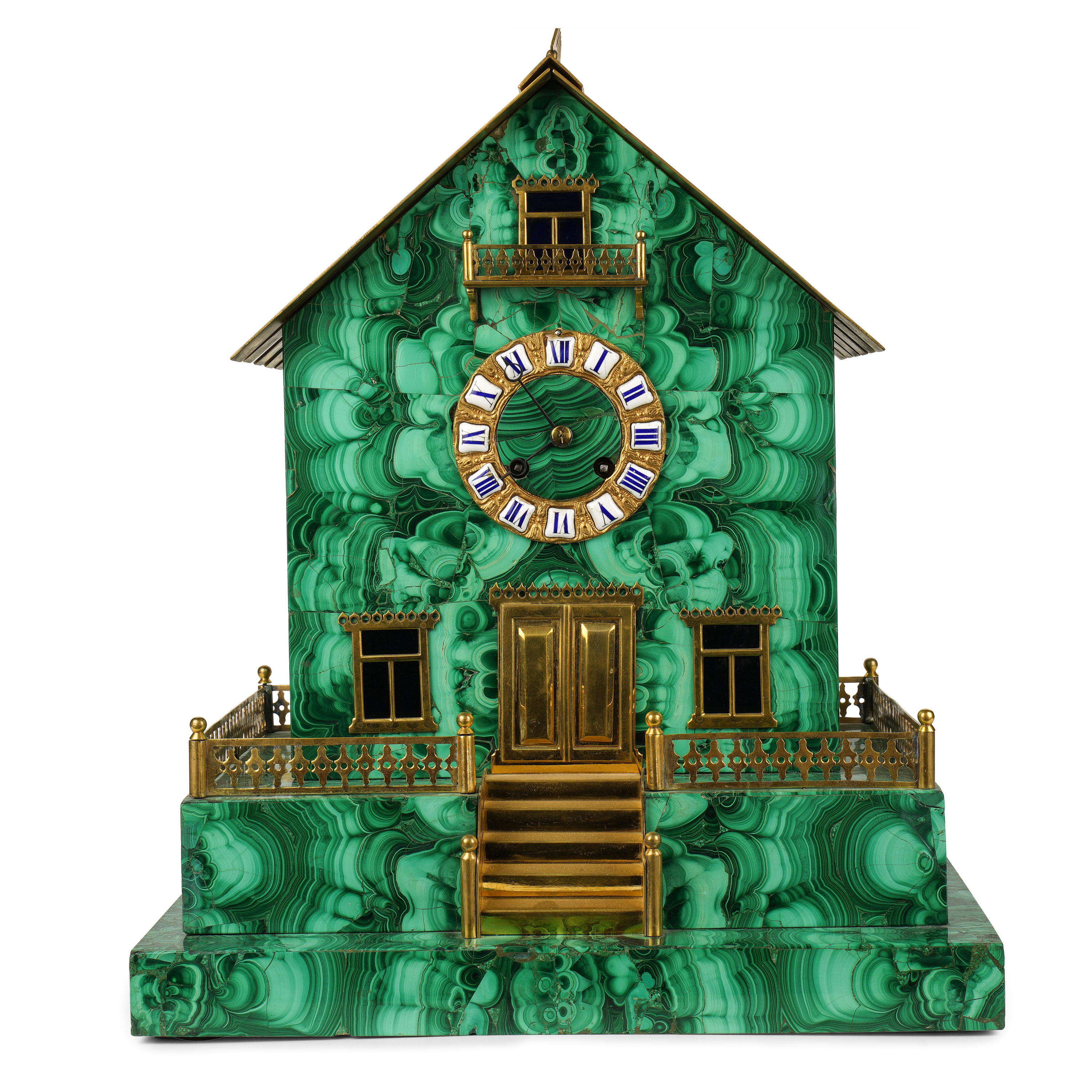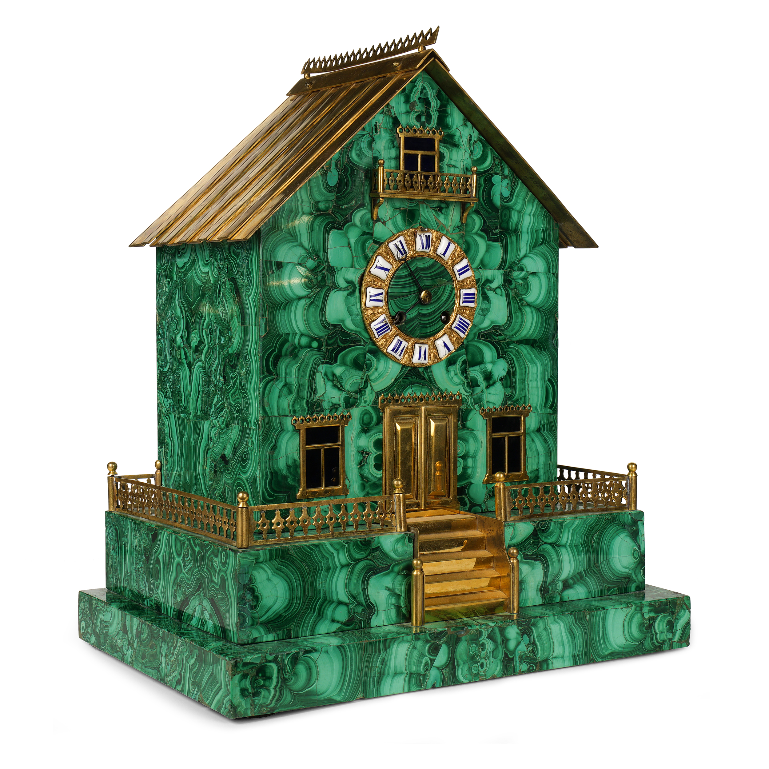Кабинетные часы в виде русской избы в малахитовом корпусе
