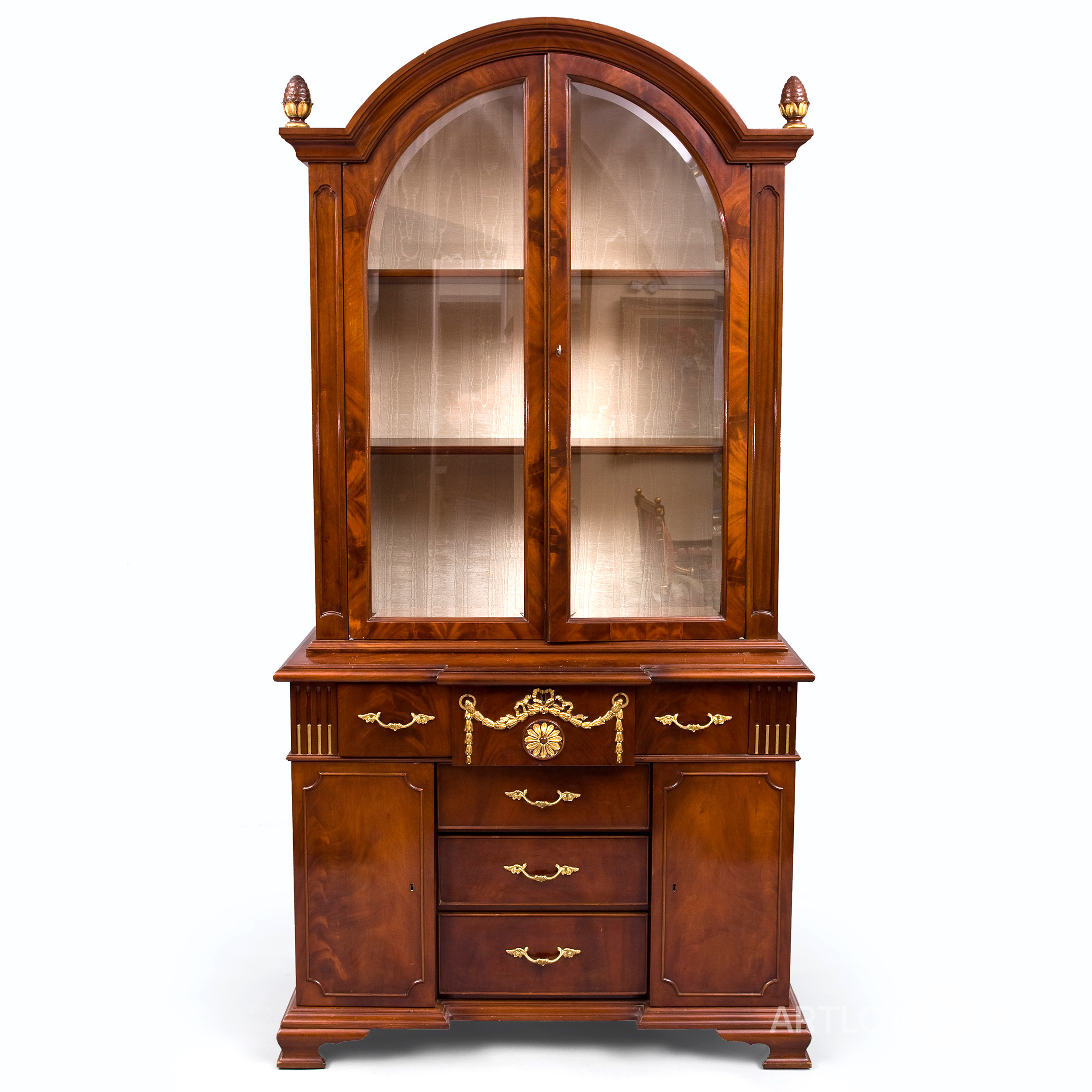 Красное дерево, фанеровка «пламя», хвойные породы (основа), резьба, полировка, бронзовые накладки, золочение, стекло, Франция, ХIХ век, размер (в/ш/г): 224 х 114 х 51 см