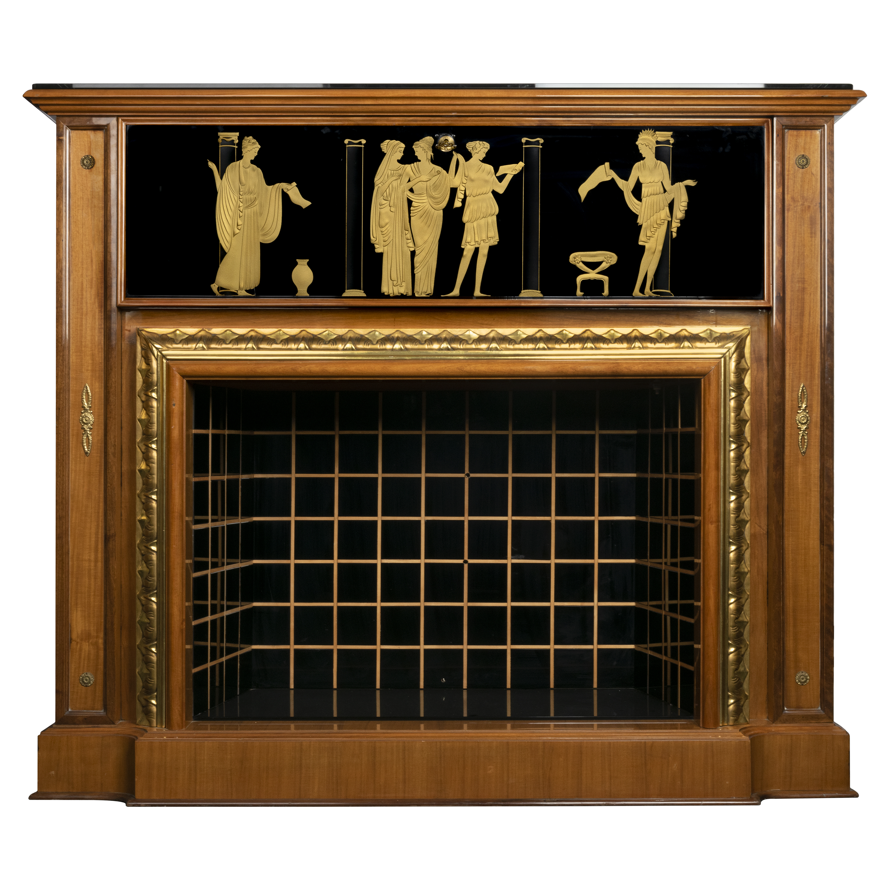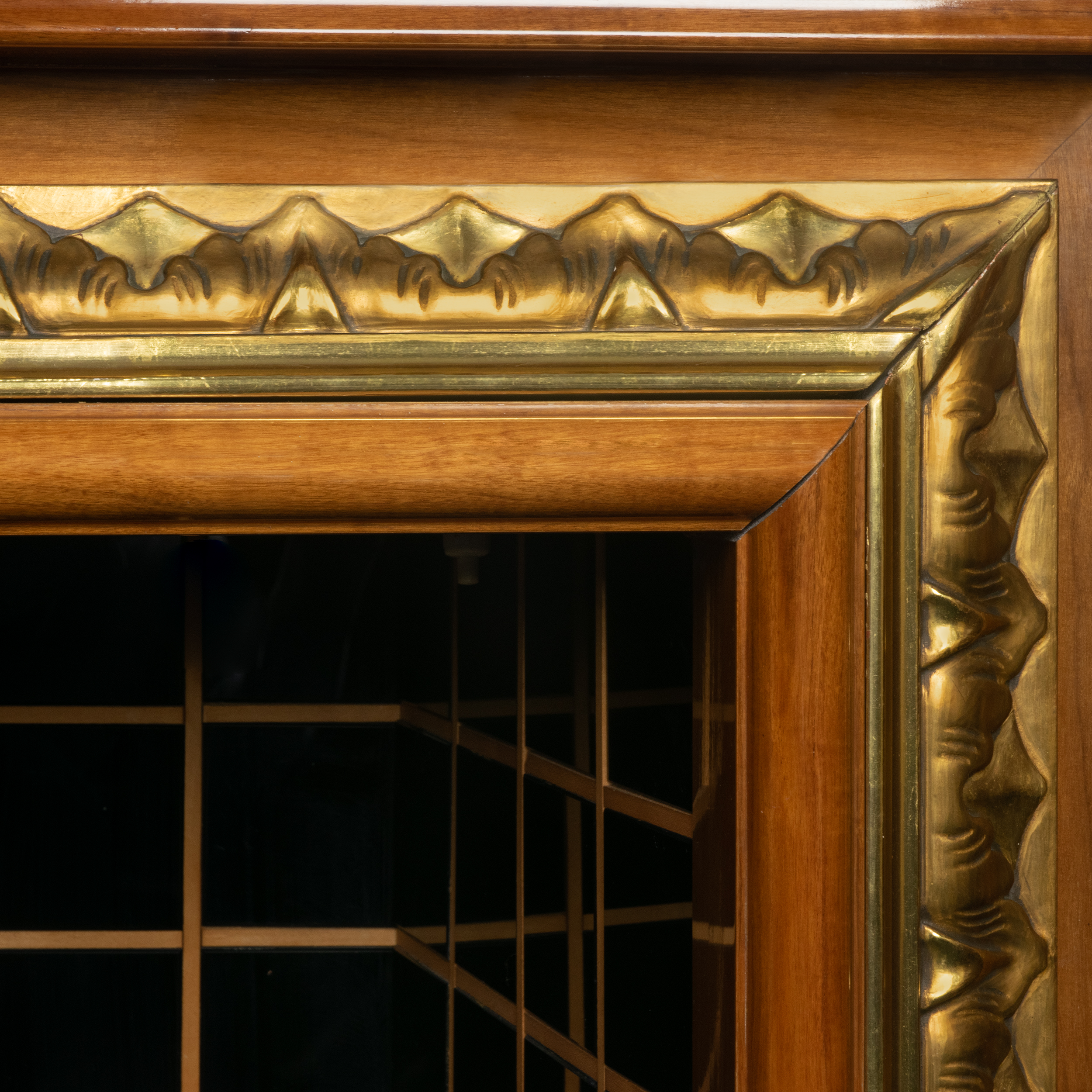 Дерево, бронзовые накладки, эгломизе, стекло.