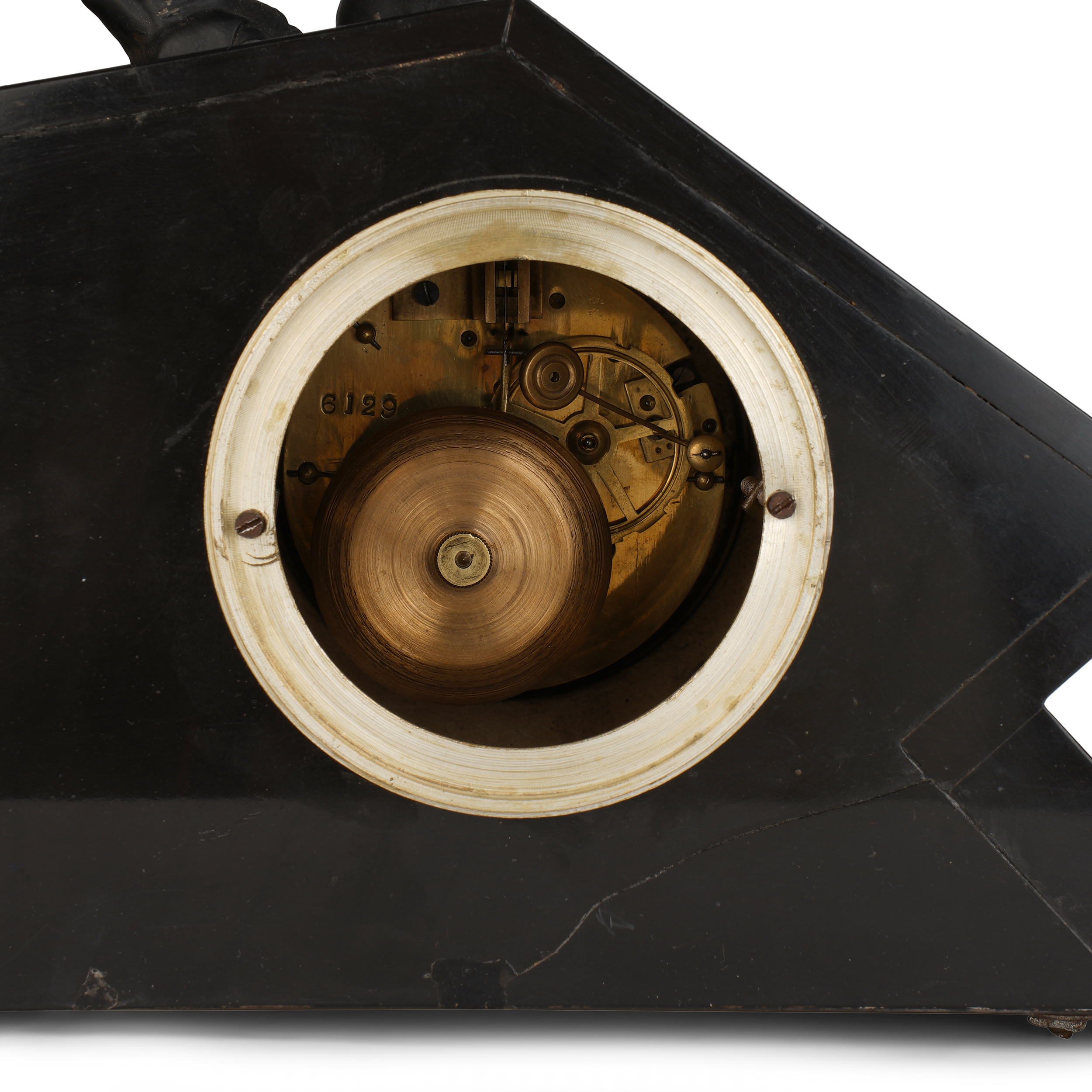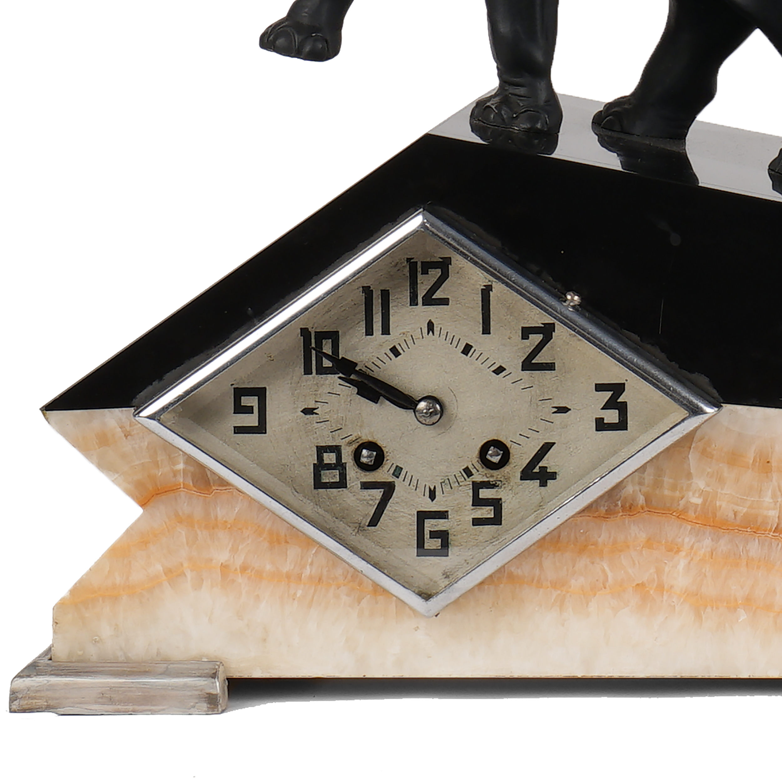 Французские часы в стиле ар-деко. Фигуры слонов выполнены в манере французского скульптора-анималиста Жоржа Гарде (GEORGES GARDET,1863-1939). Бронза, литье, патинирование, чёрный мрамор, оникс, Европа, около 1930 года, размер (в/д/г): 39 х 72 х 16 см