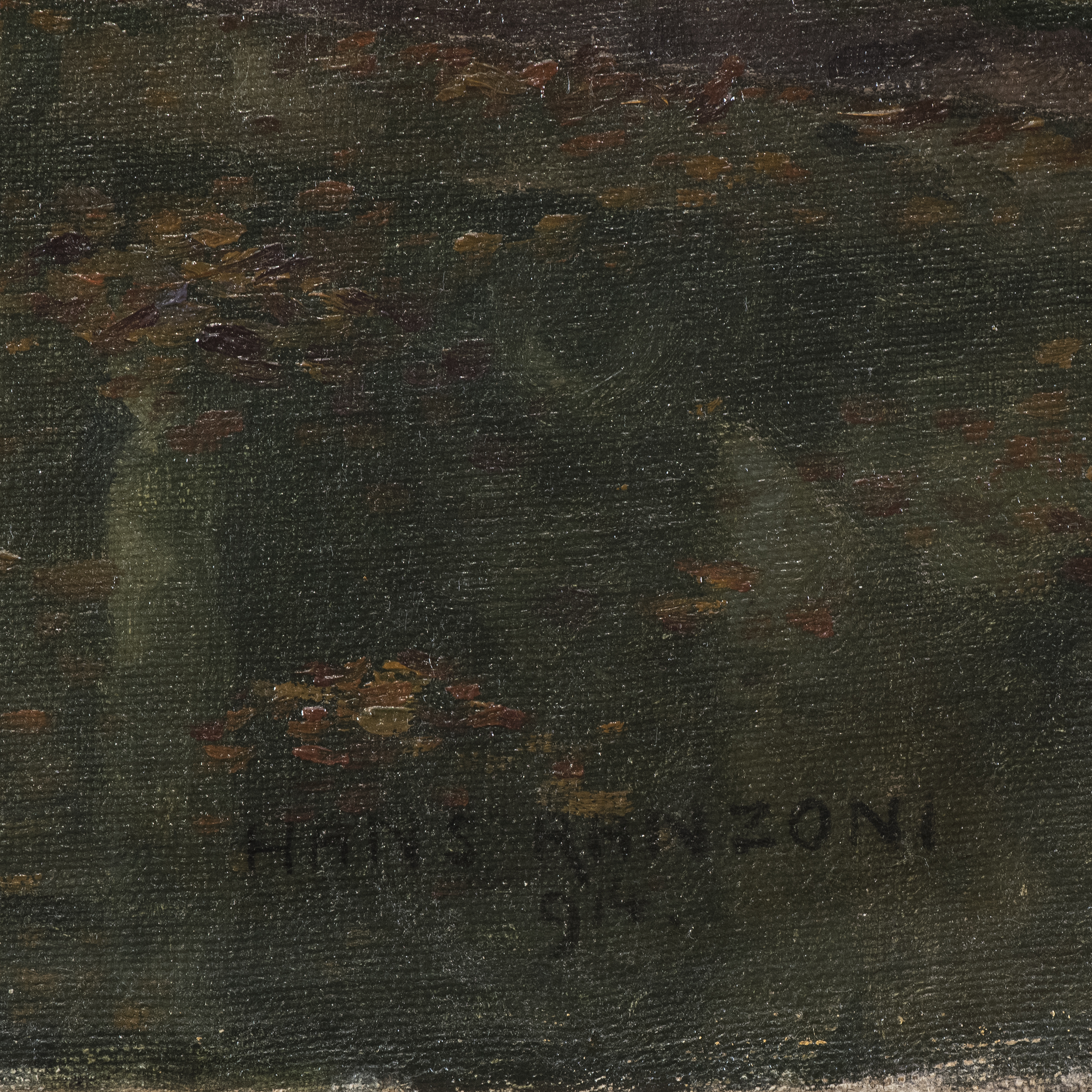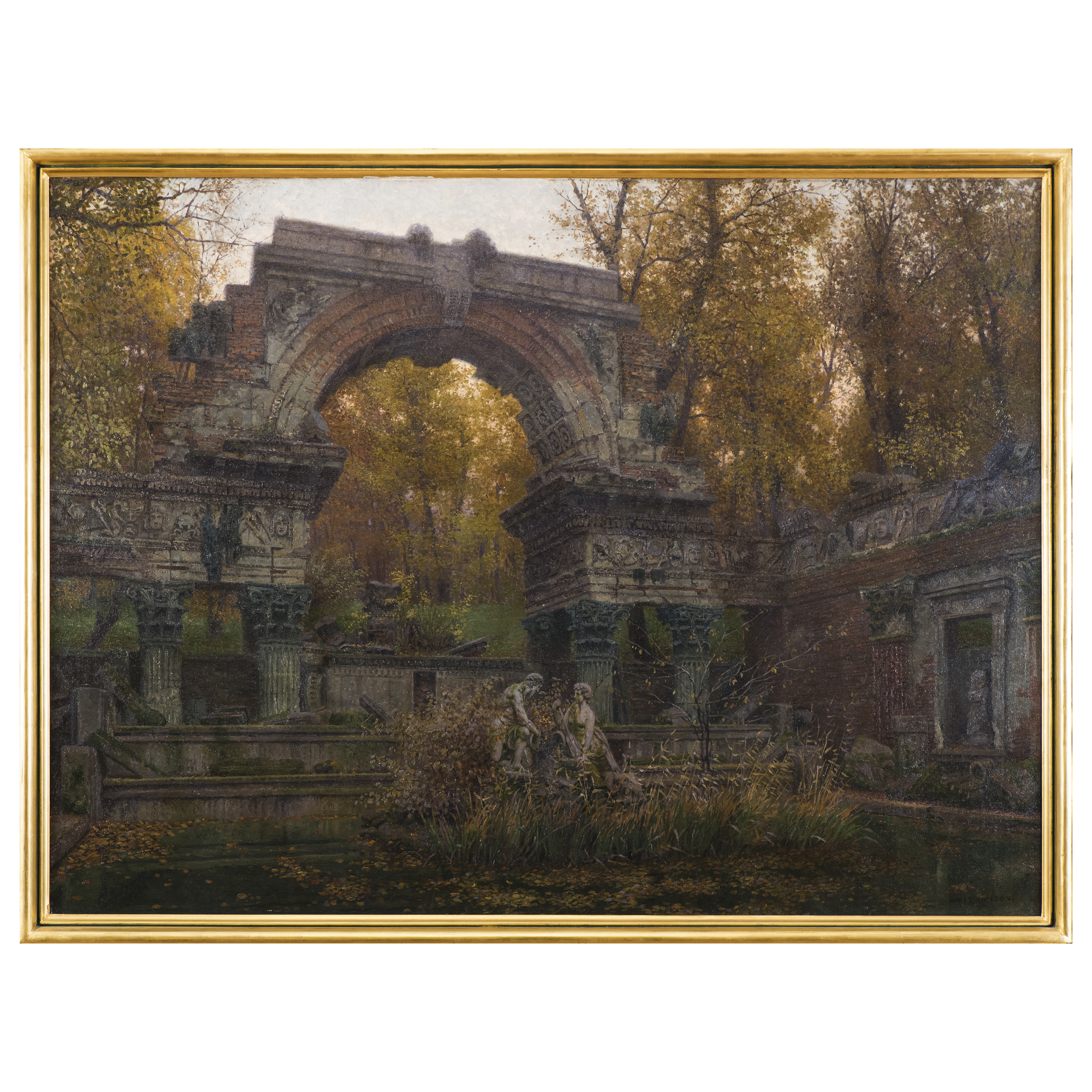 Холст, масло, в правом нижнем углу авторская подпись «Hans Ranzoni 914», живописец, мастер романтического архитектурного пейзажа Ханс Ранцони (Hans I Ranzoni, 1868-1956)