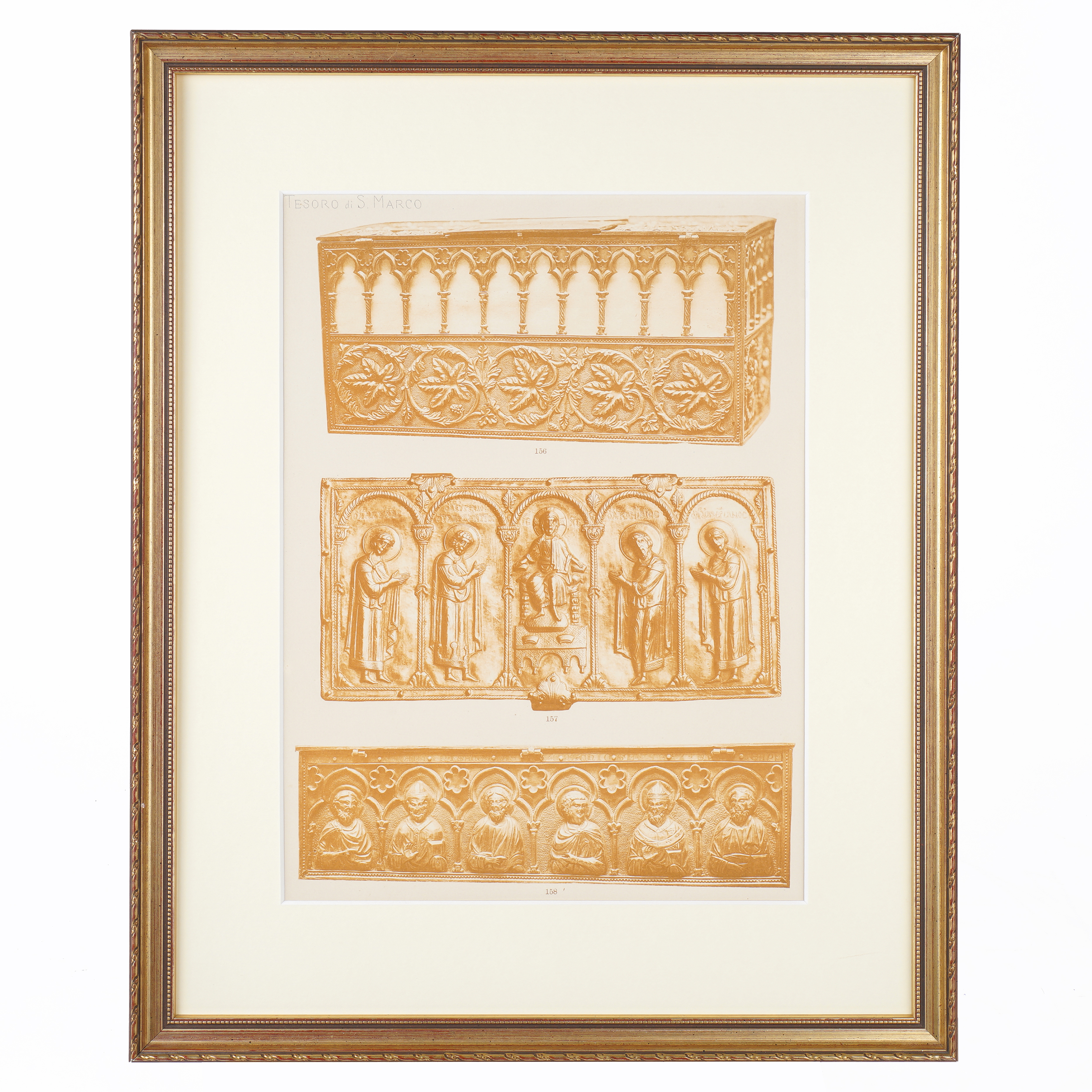 Tav. LXIV. Хромолитография является частью серии литографий из монументального труда «Il Tesoro Di San Marco in Venezia» редактора и издателя иллюстрированных книг Фердинандо Онганиа. Бумага, типографская печать, цветная литография, под изображением надписи «Eliot C. Jacobi/Venezia Ferd/ Ongania Editore», Италия. Размеры: 26 х 19.5 см (оттиск), 36 х 28 см (лист), 40х31 см (в раме)