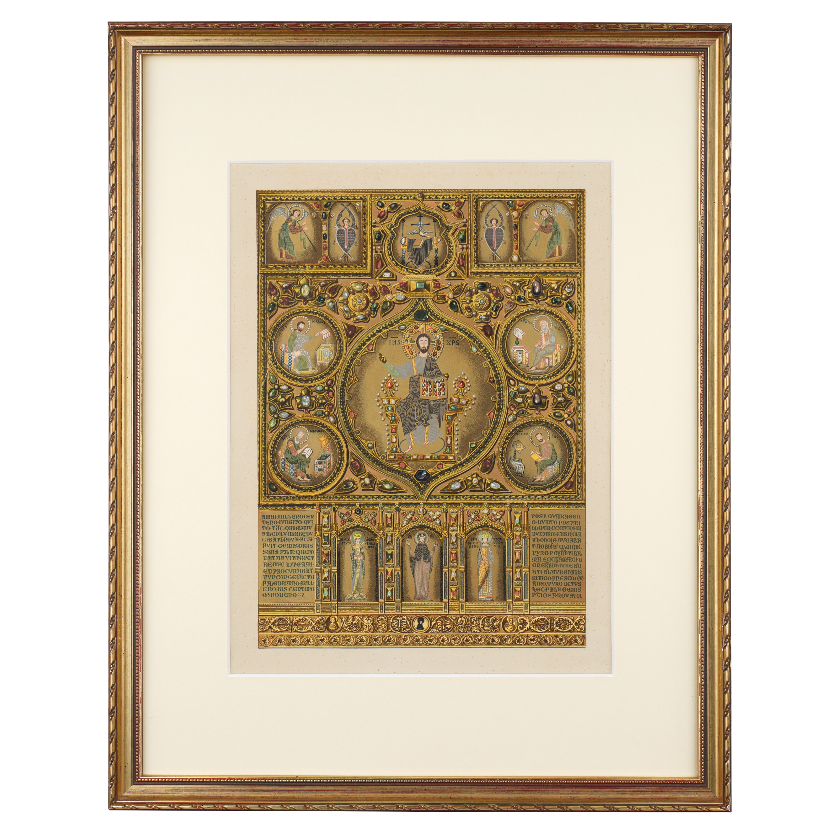 Экспонаты сокровищницы Сан Марко. XIX - 22. Золотой алтарь (Пала д'Оро). Фрагмент. Хромолитография является частью серии литографий из монументального труда «Il Tesoro Di San Marco in Venezia» редактора и издателя иллюстрированных книг Фердинандо Онганиа. Бумага, типографская печать, цветная литография, под изображением надписи «Ferd. Ongania Edit. 1887» Италия. Размеры: 26 х 19.5 см (оттиск), 36 х 28 см (лист), 40х31 см (в раме)