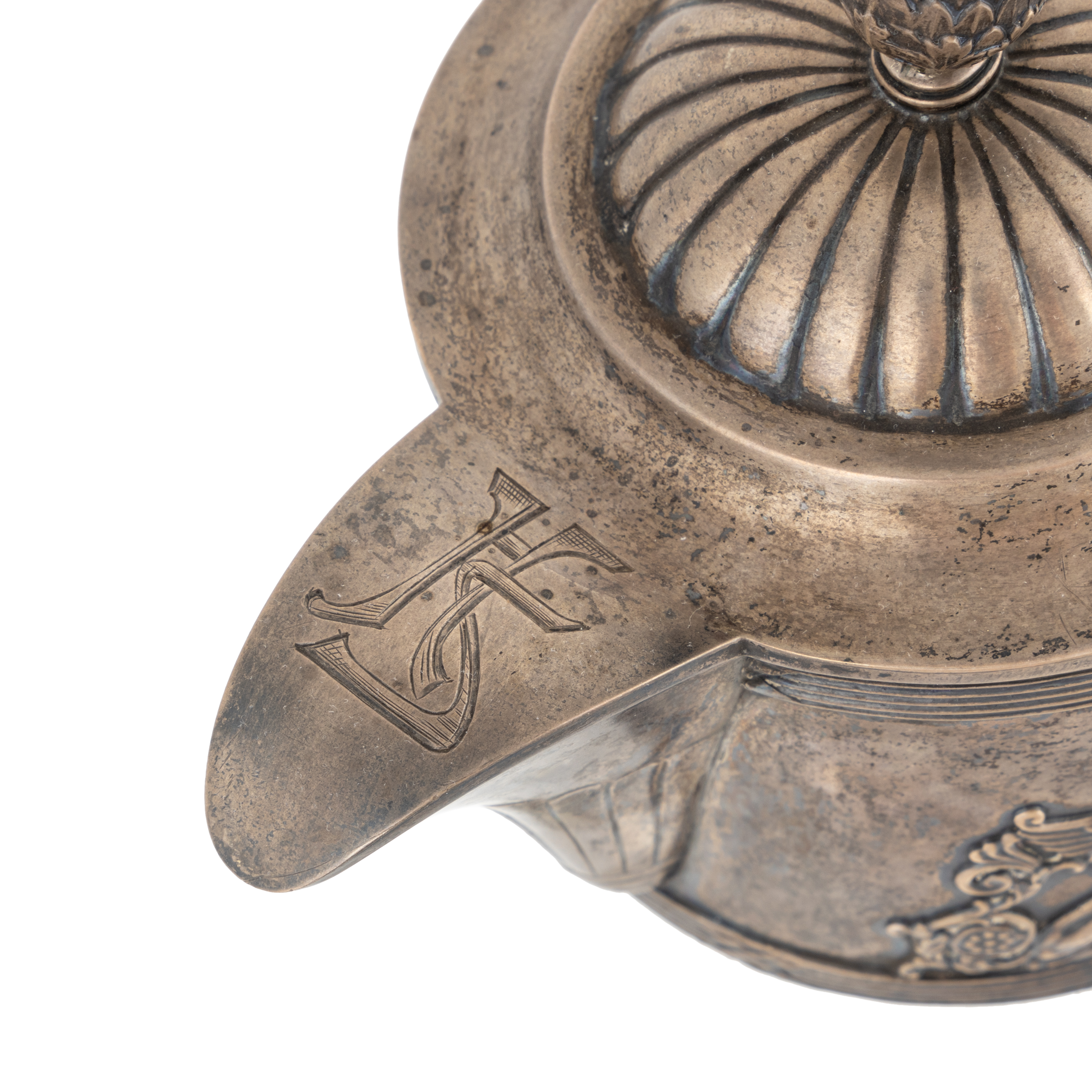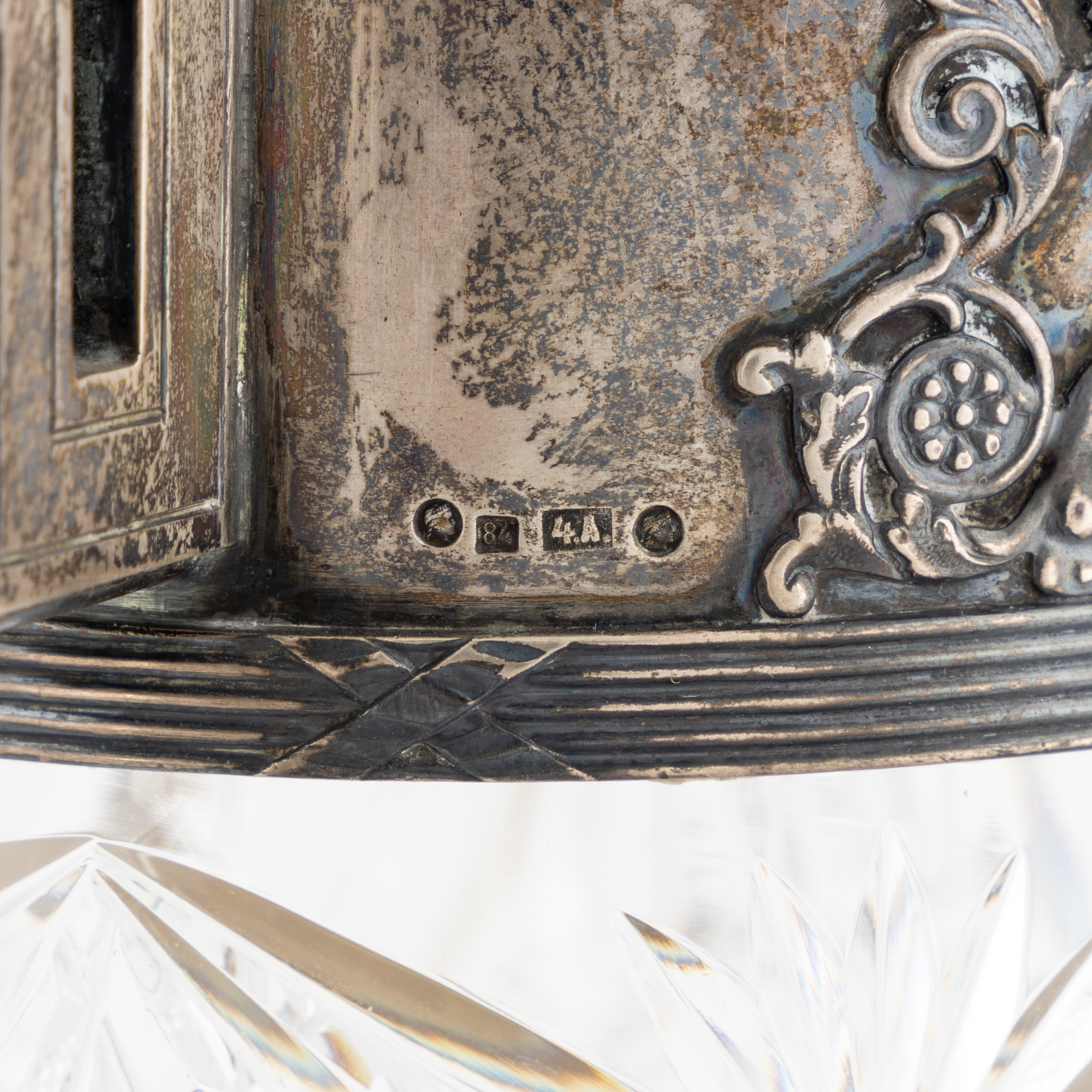 Хрусталь, гранение, серебро, литьё, гравировка, золочение. Клеймо 4-я Московской Артели ювелиров: «4А»; знаки удостоверения Московского окружного пробирного управления 1908–1917 гг.; высота – 42 см.