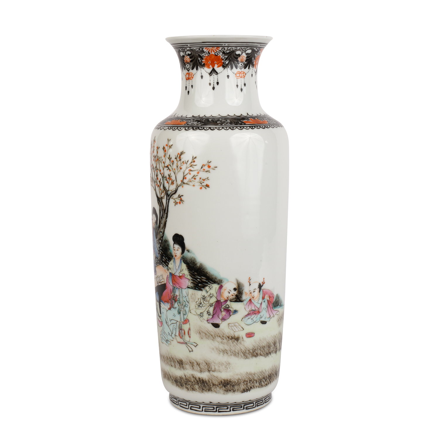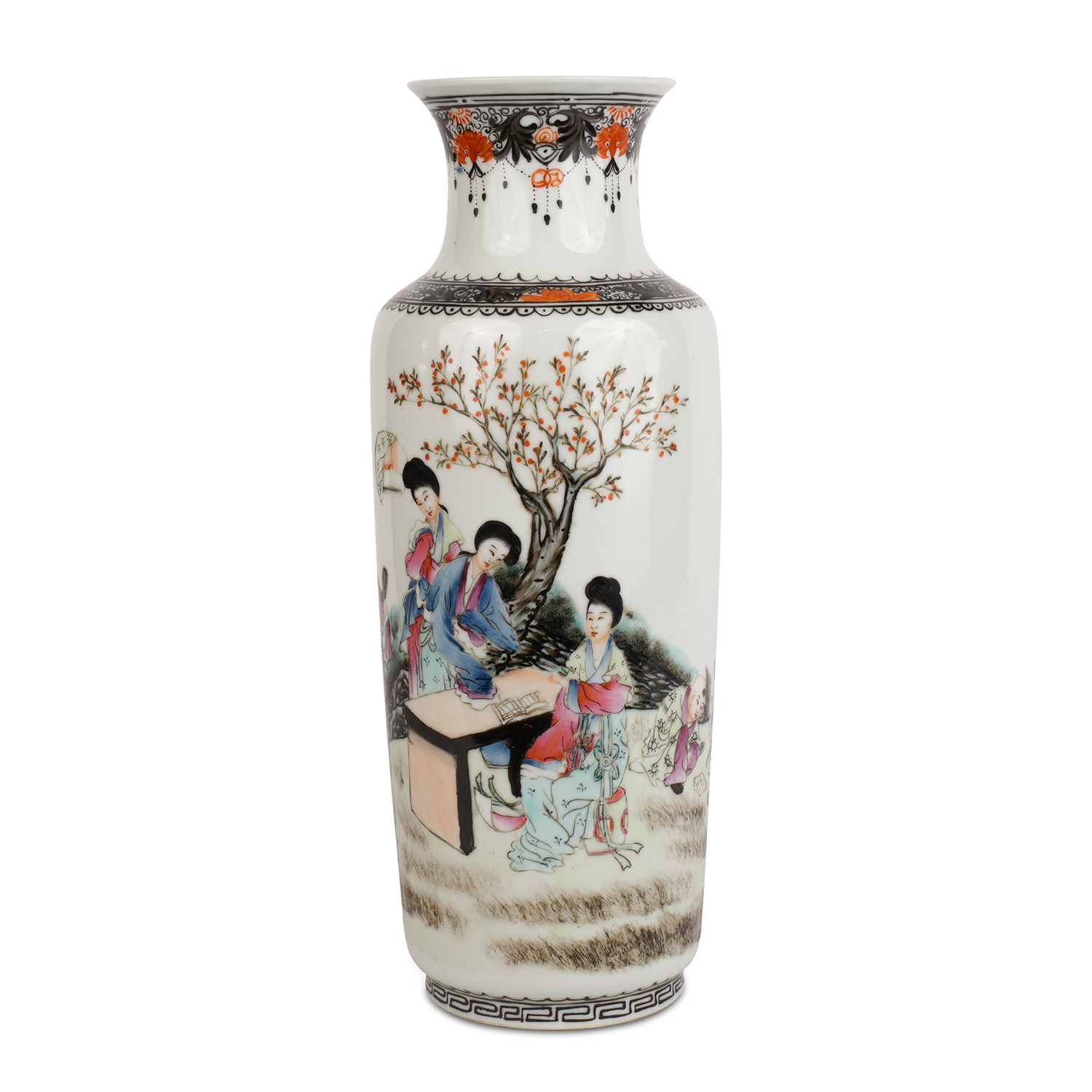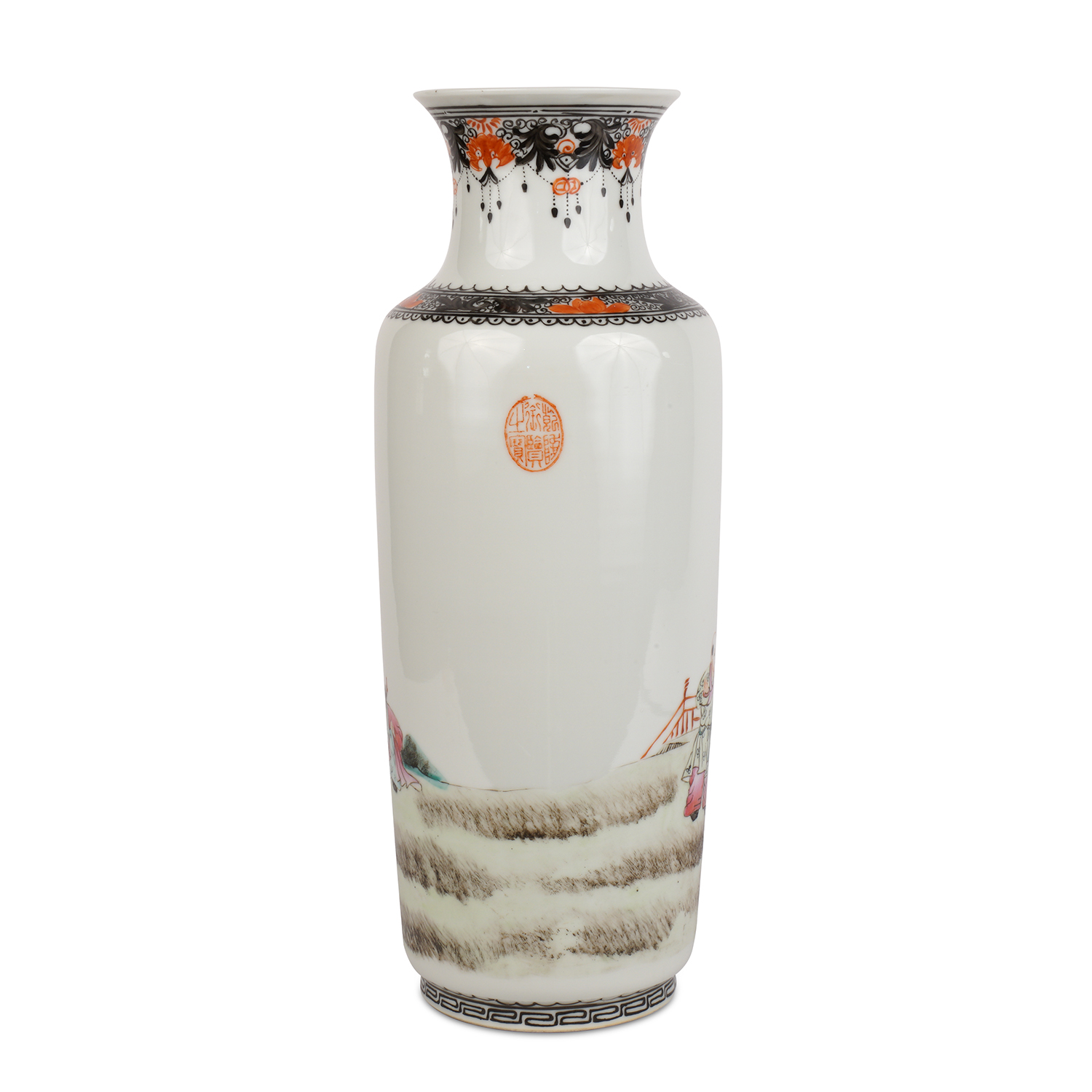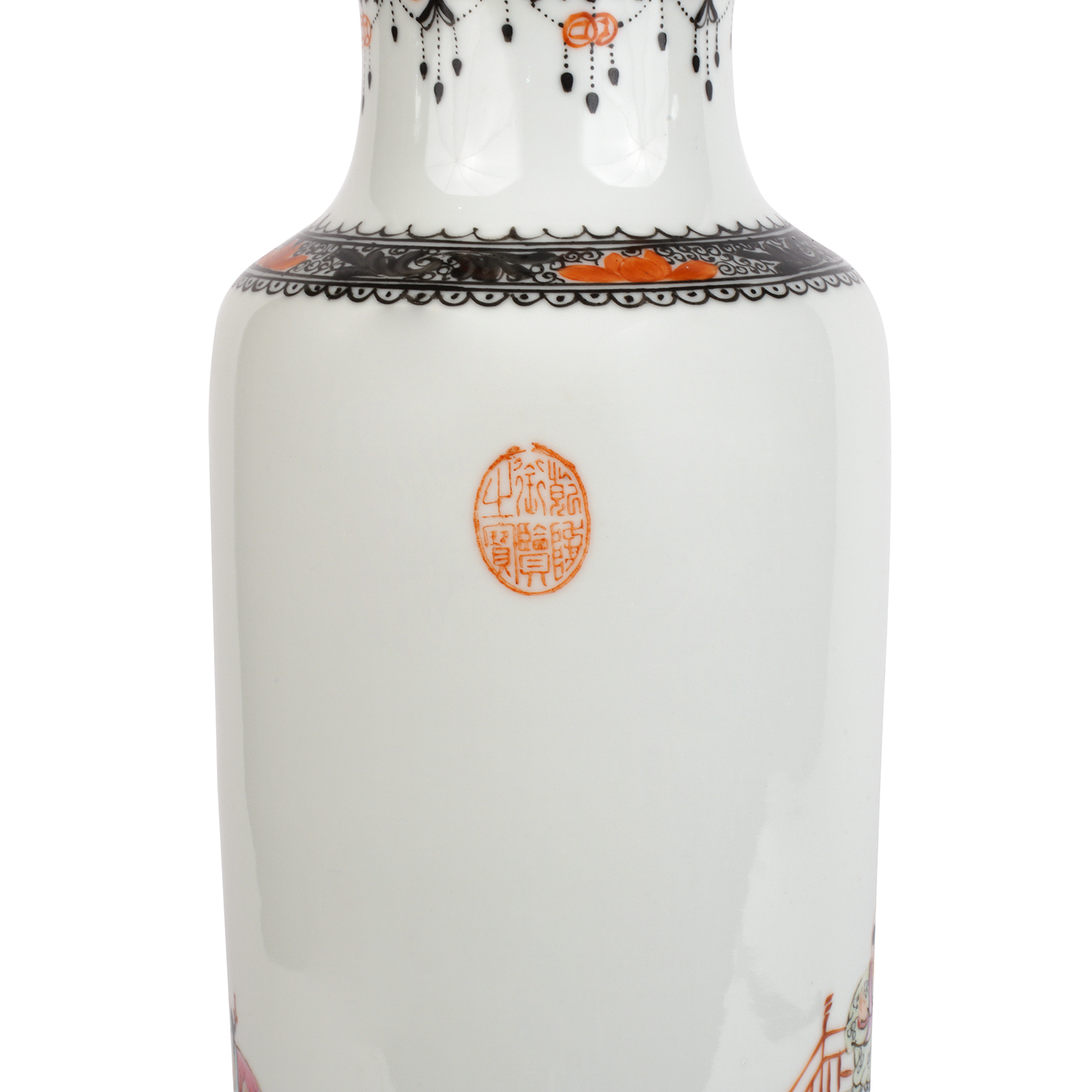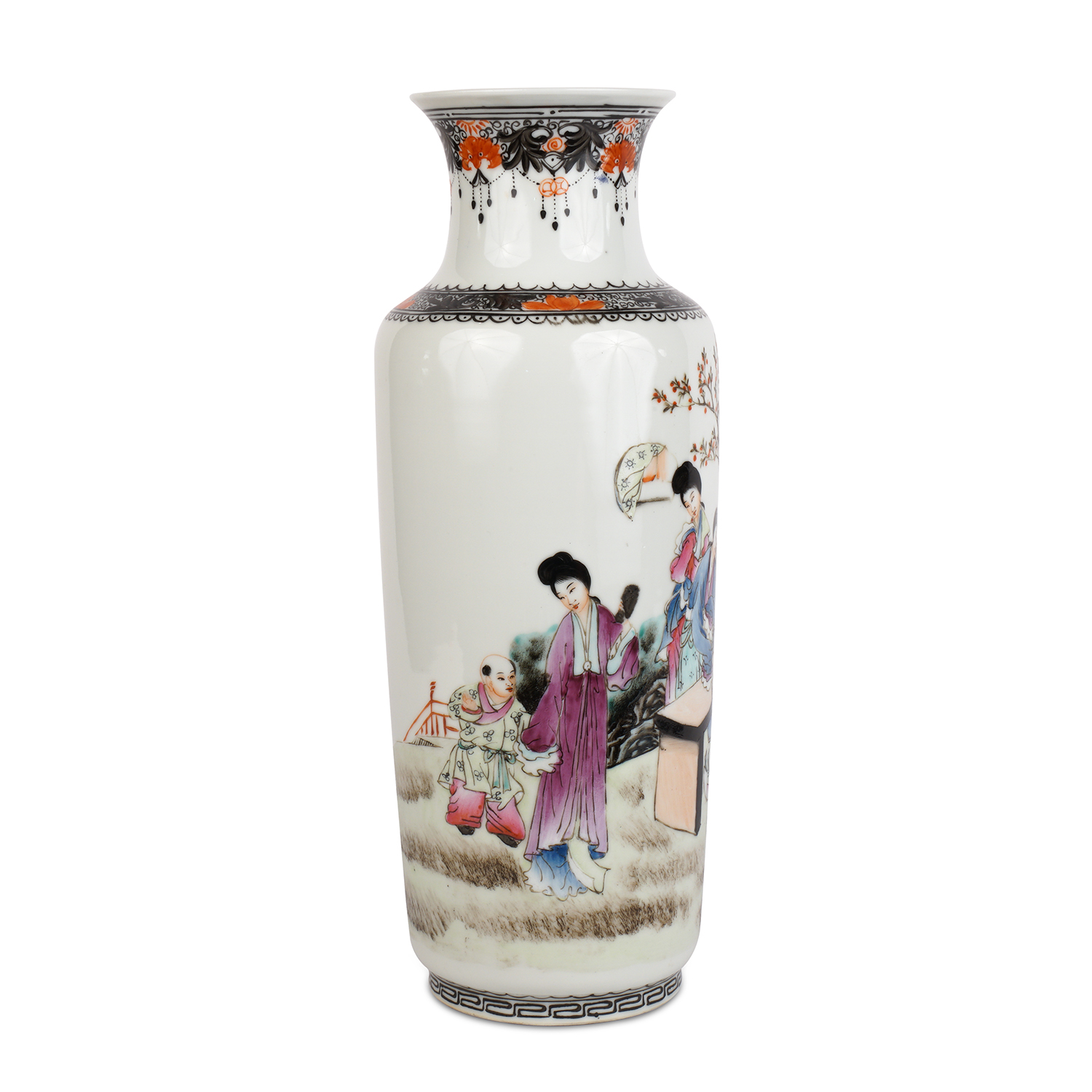 Фарфор, надглазурная полихромная роспись, на дне вазы красное надглазурное клеймо-печать Цяньлун Нянь Чжи. Китай, 1940-1950-е гг., высота - 35 см, диаметр горлышка - 40 см.