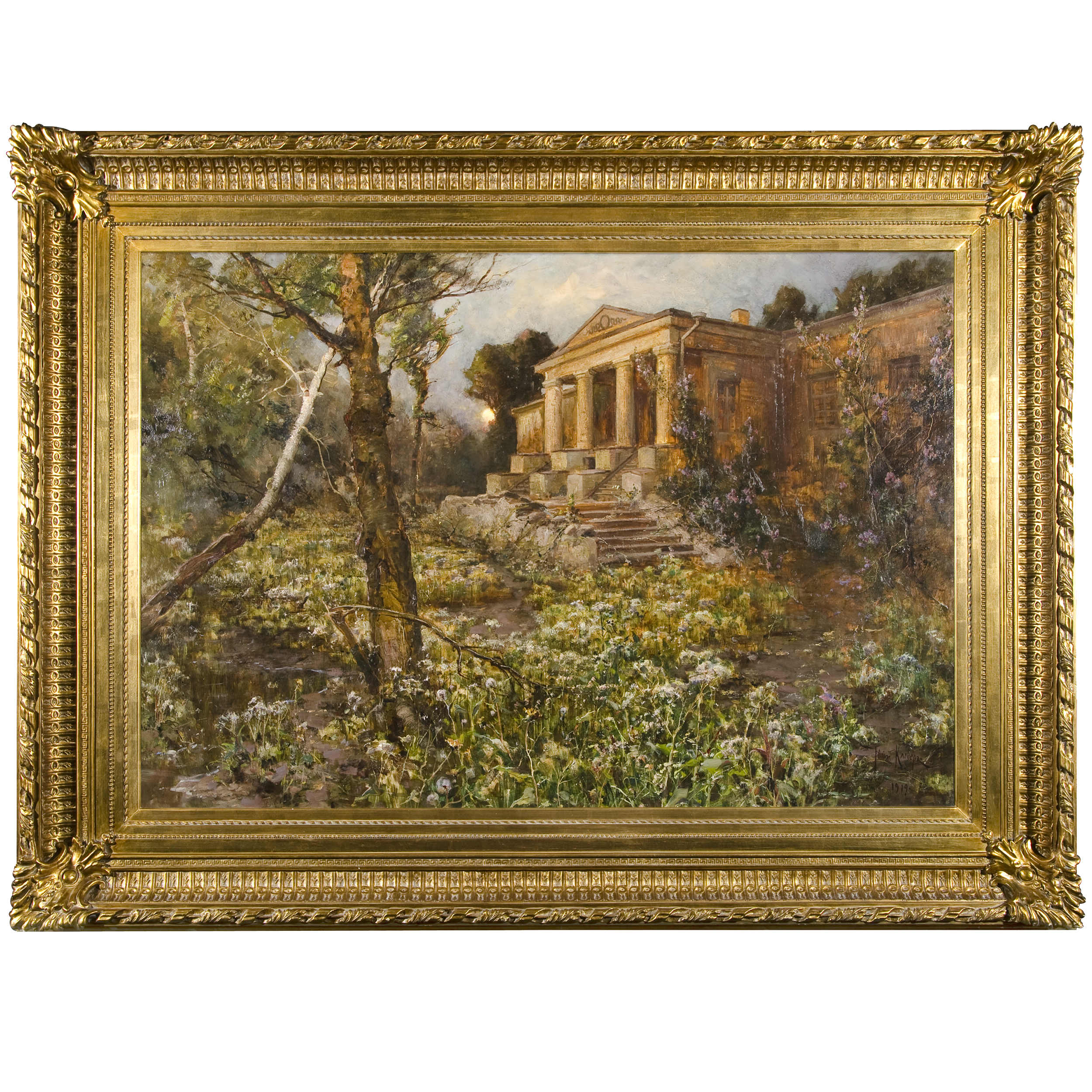 Холст, масло, справа внизу подпись «Юлiй Клеверъ. 1919.», на оборотной стороне имеется надпись «Варiантъ съ моей неоконченной картины «Былое» 1917 года. «Минувшее» - такъ крестилъ ту картину мой дорогой другъ Владимиръ Бонди – по желанию которого она и написана мною. Юлiй Клеверъ. 2-го Jюля 1919. Петроградъ», Юлий Юльевич Клевер (1850-1924), Россия, 1919 год, размер холста: 106,5 х 155 см, в раме: 149 х 198 см