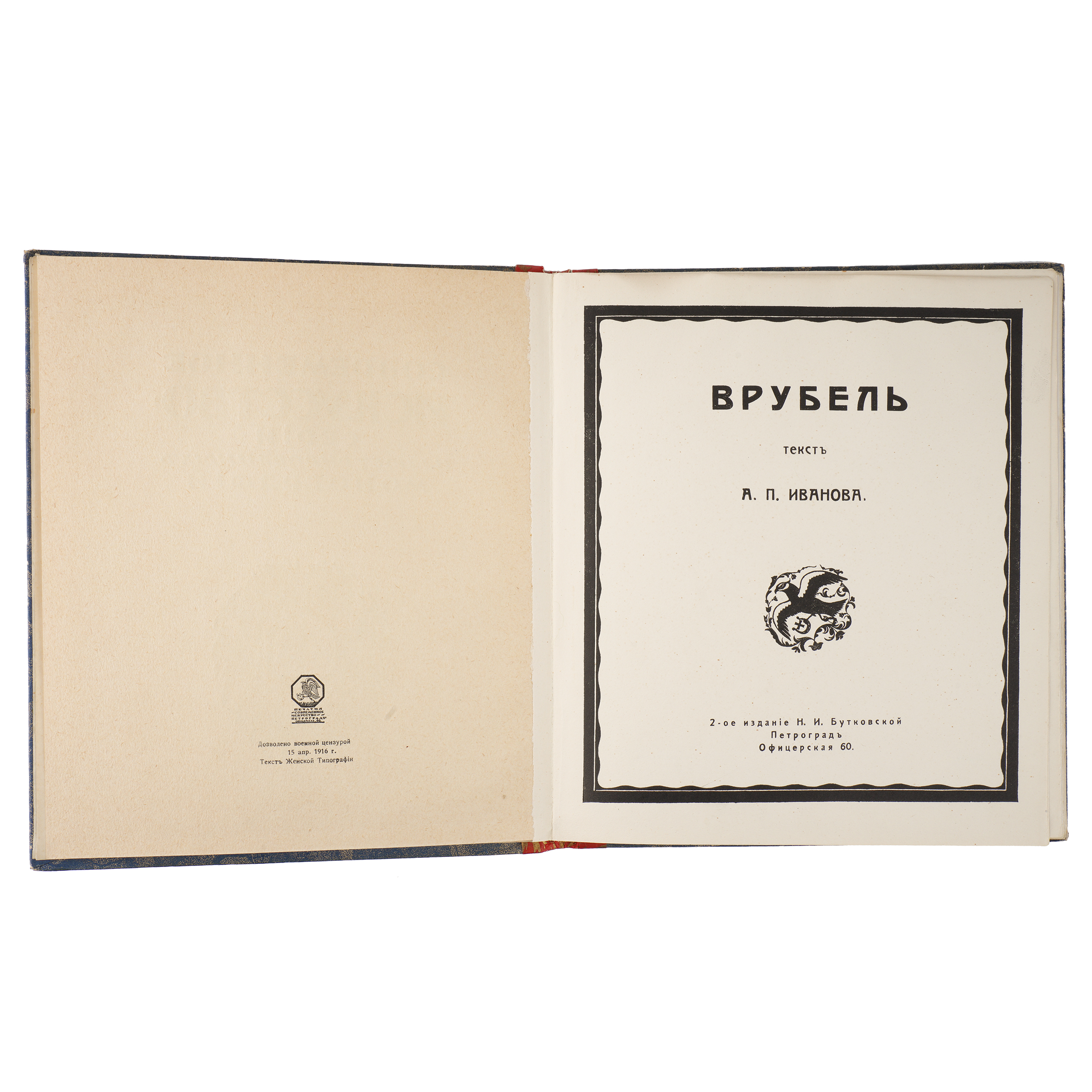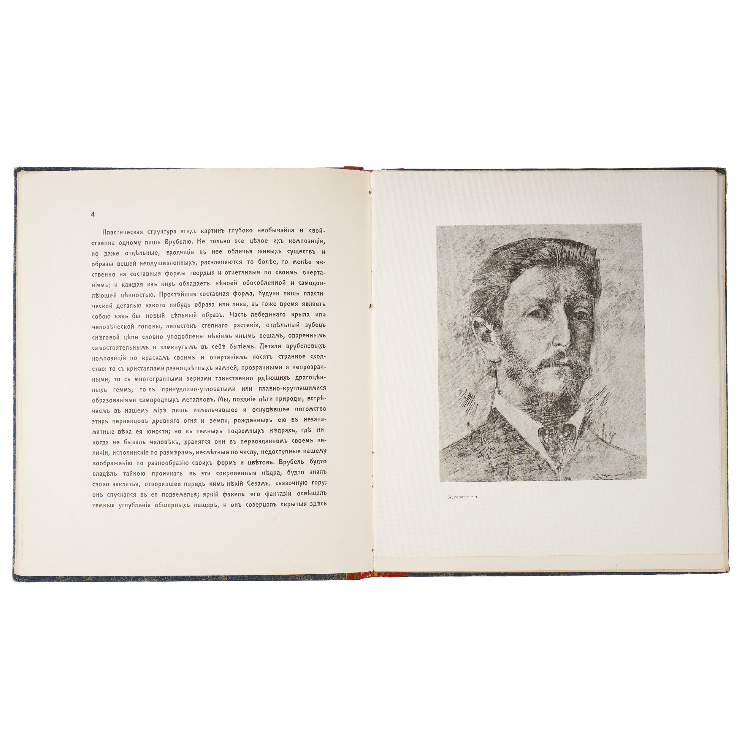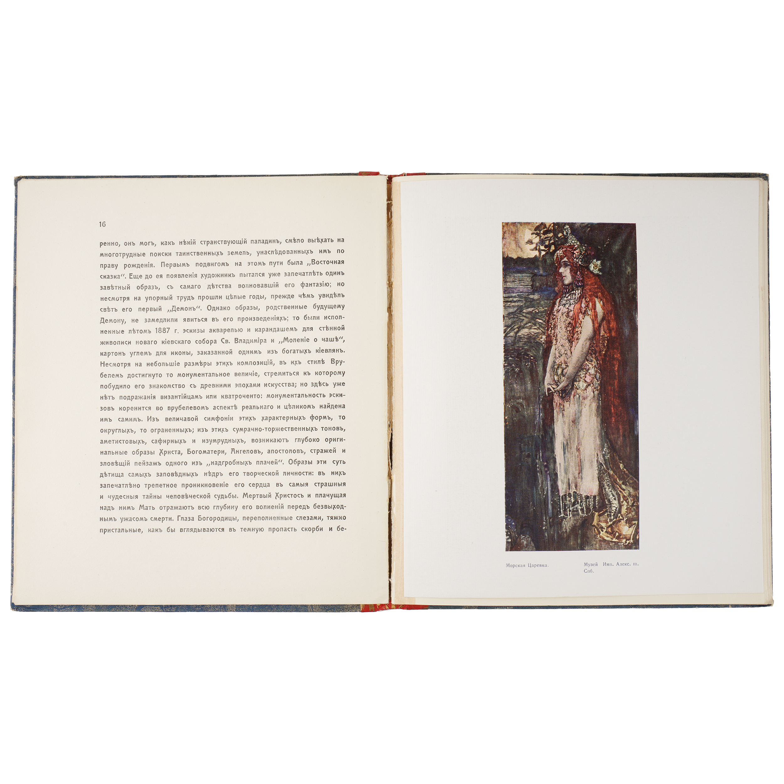 Текст А.П. Иванова «Современное искусство» серии иллюстрированных монографий. 2-е изд. Пг.: Н.И. Бутковской, Петроград, 1916 г. Две иллюстрации в тексте и 14 репродукций на отдельных листах с картин М. Врубеля выполнены в технике автотипии. Титульный лист и авантитул работы С. Чехонина. 63 ст., 15 л. цв. и ч.б илл., формат 21 х 18 см
