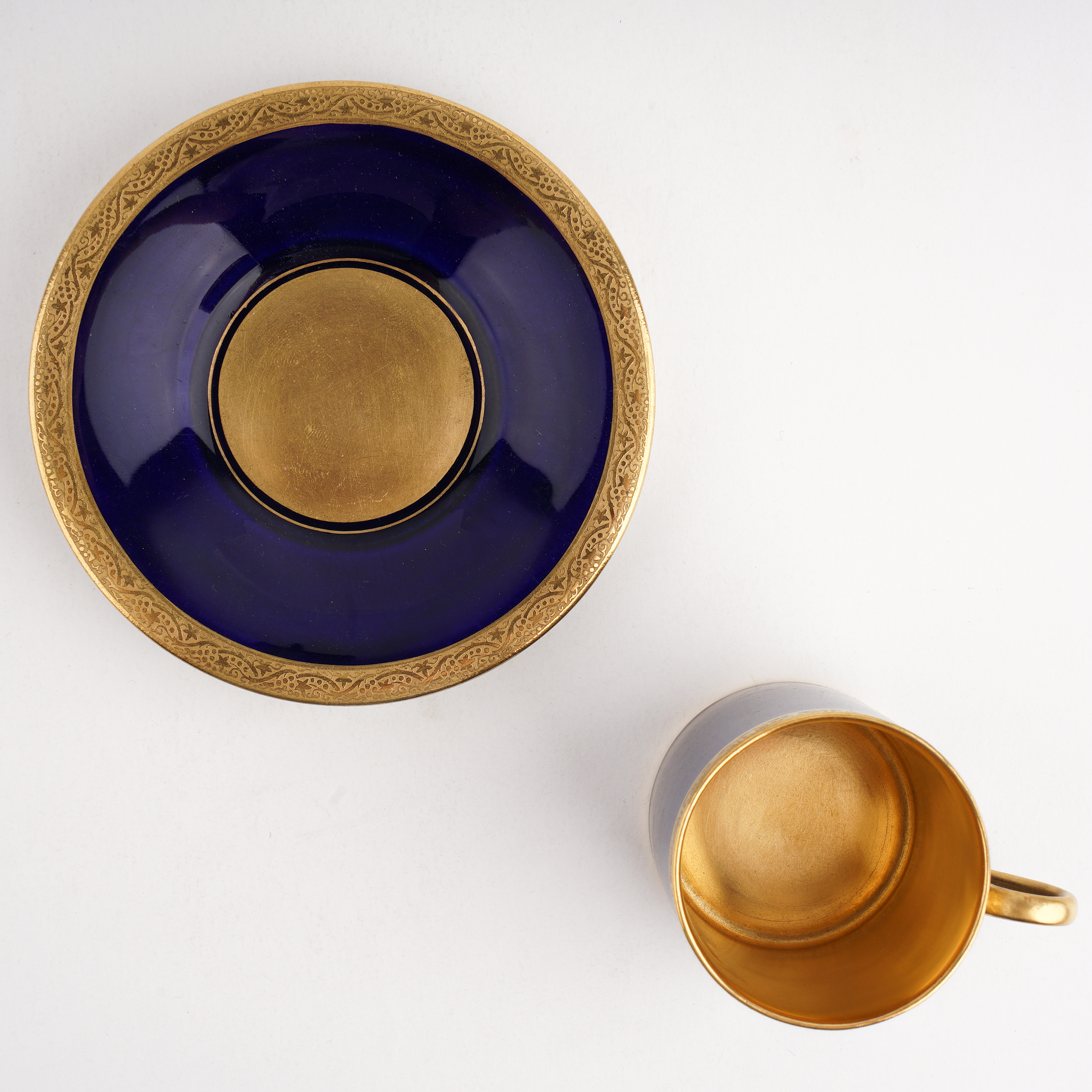 Фарфор, кобальт, внутреннее золочение, золотой кант с цировкой