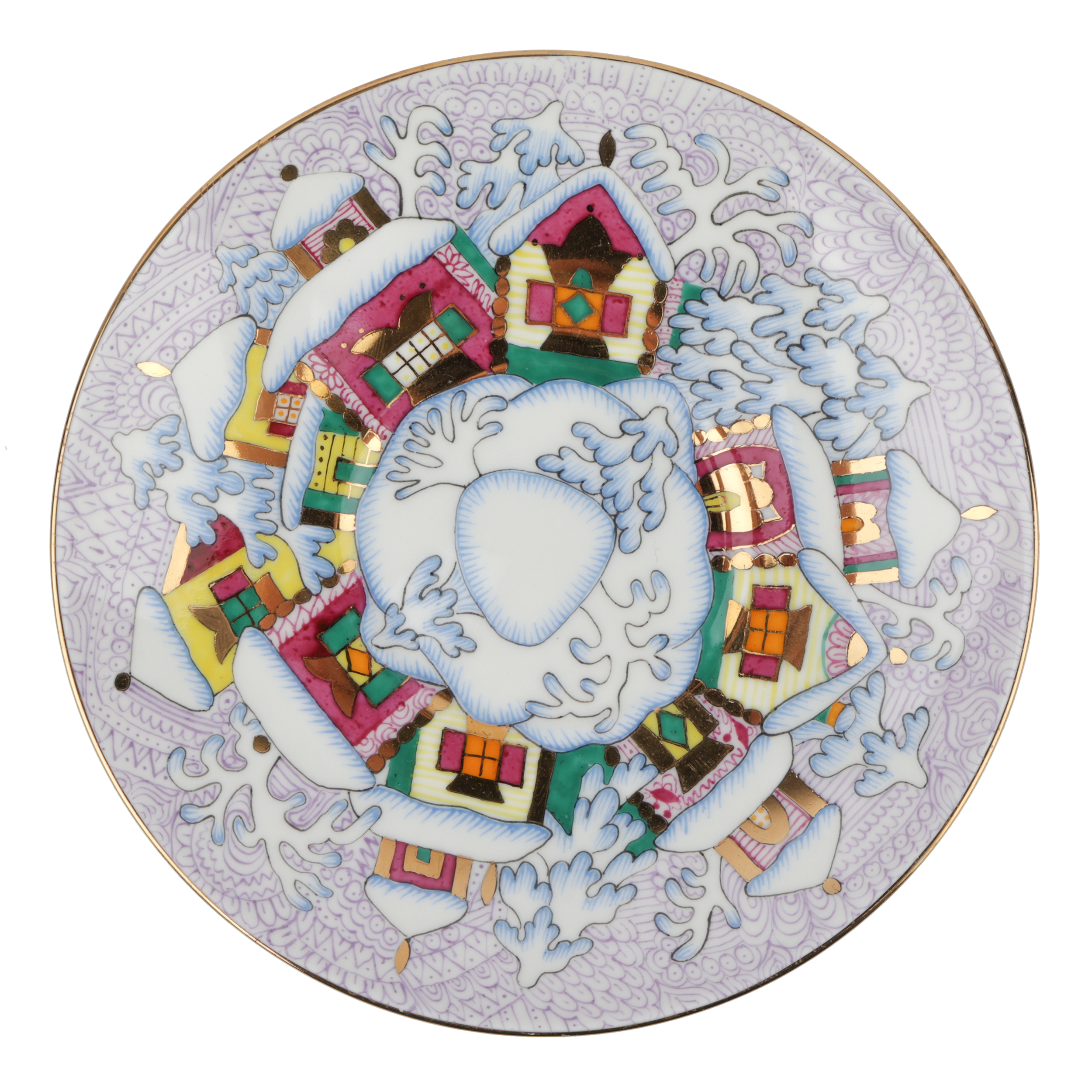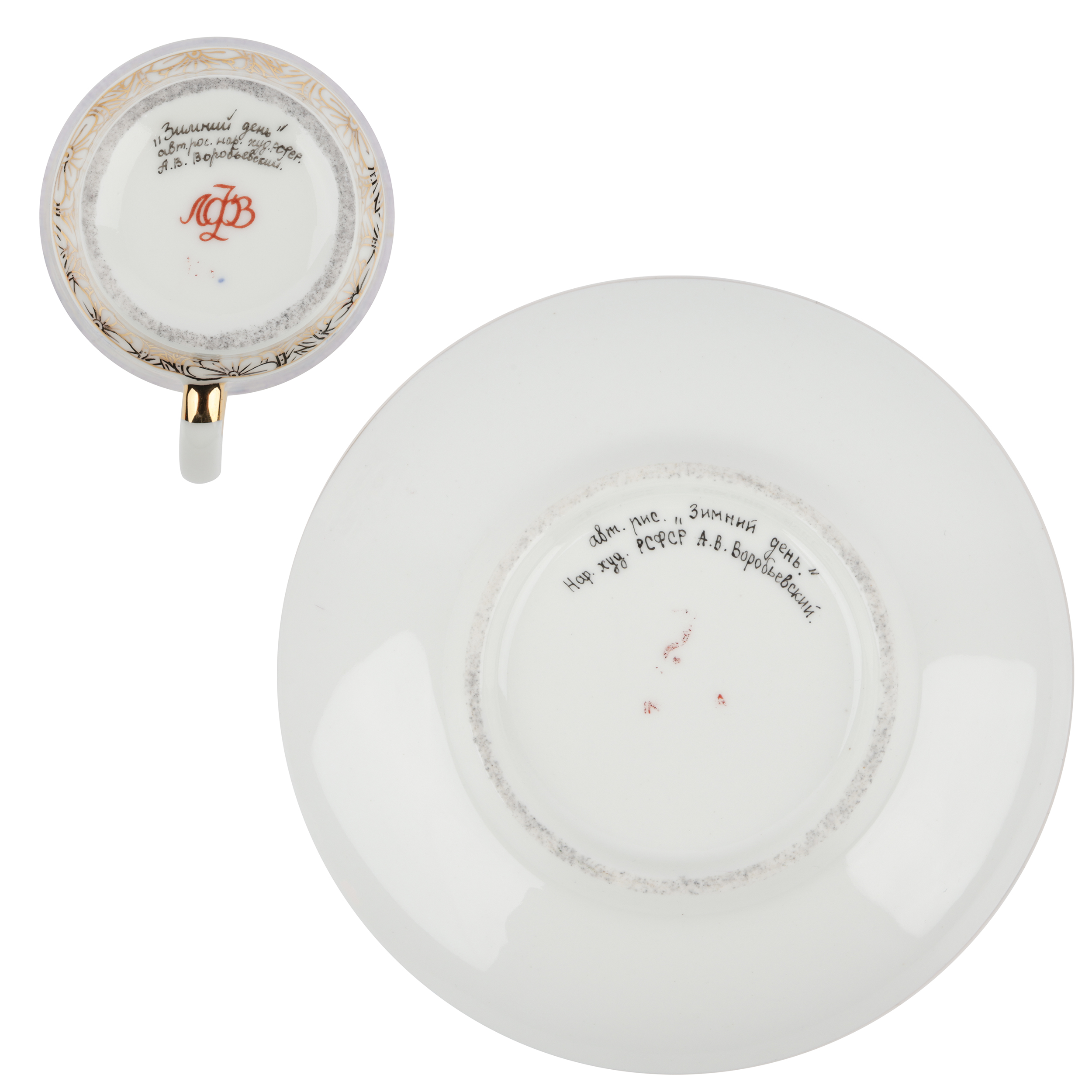 Костяной фарфор, ручная роспись, золочение. Марка: красная «ЛФЗ / MADE IN RUSSIA», 1-ый сорт, подпись.