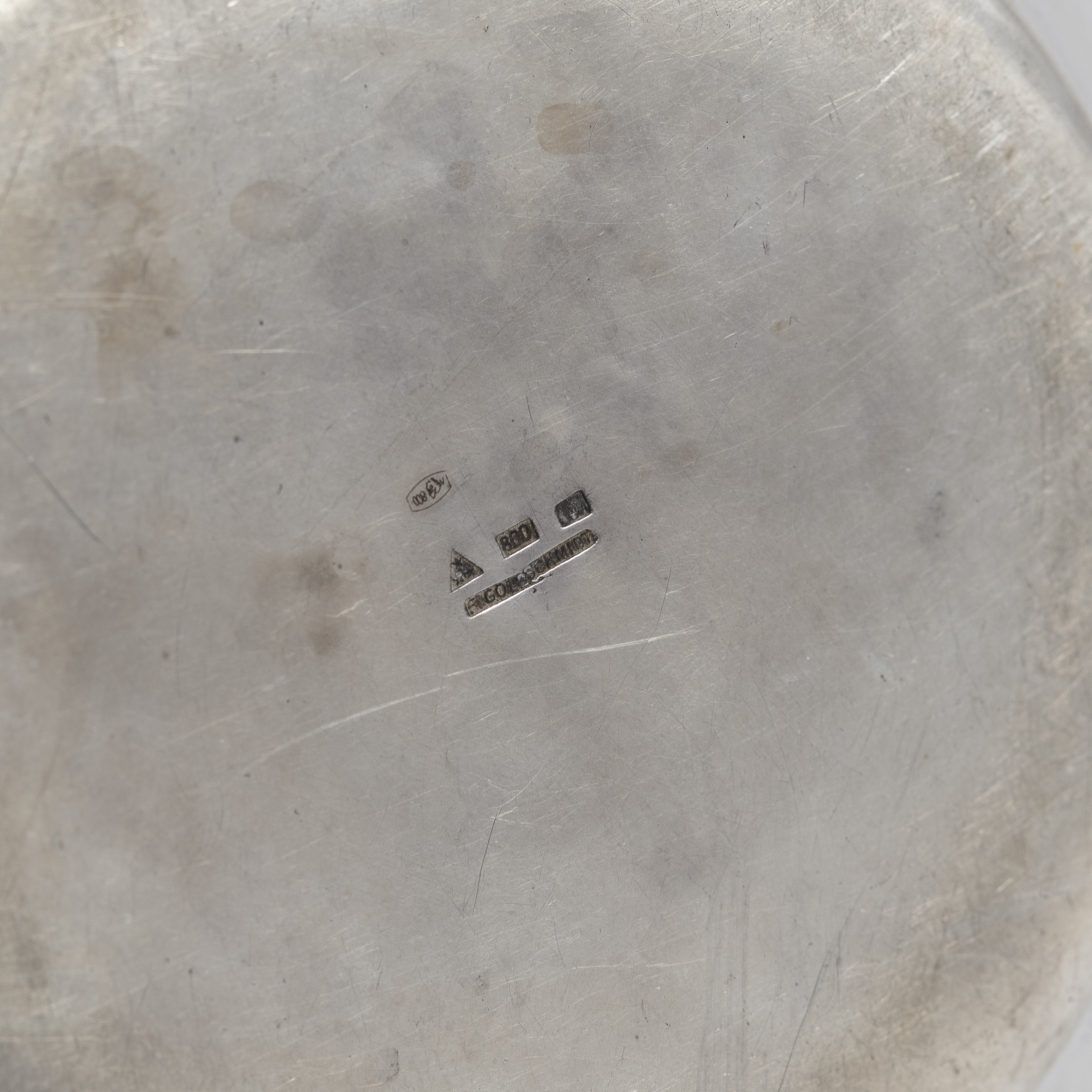 Клейма: 800 проба, пробирные клейма Германии в виде «короны с полумесяцем», «трёх звезд в треугольнике», «E. Goldschmidt» фирмы Эмиля Гольдшмидта; Германия, Берлин, 1890-1900-е годы;