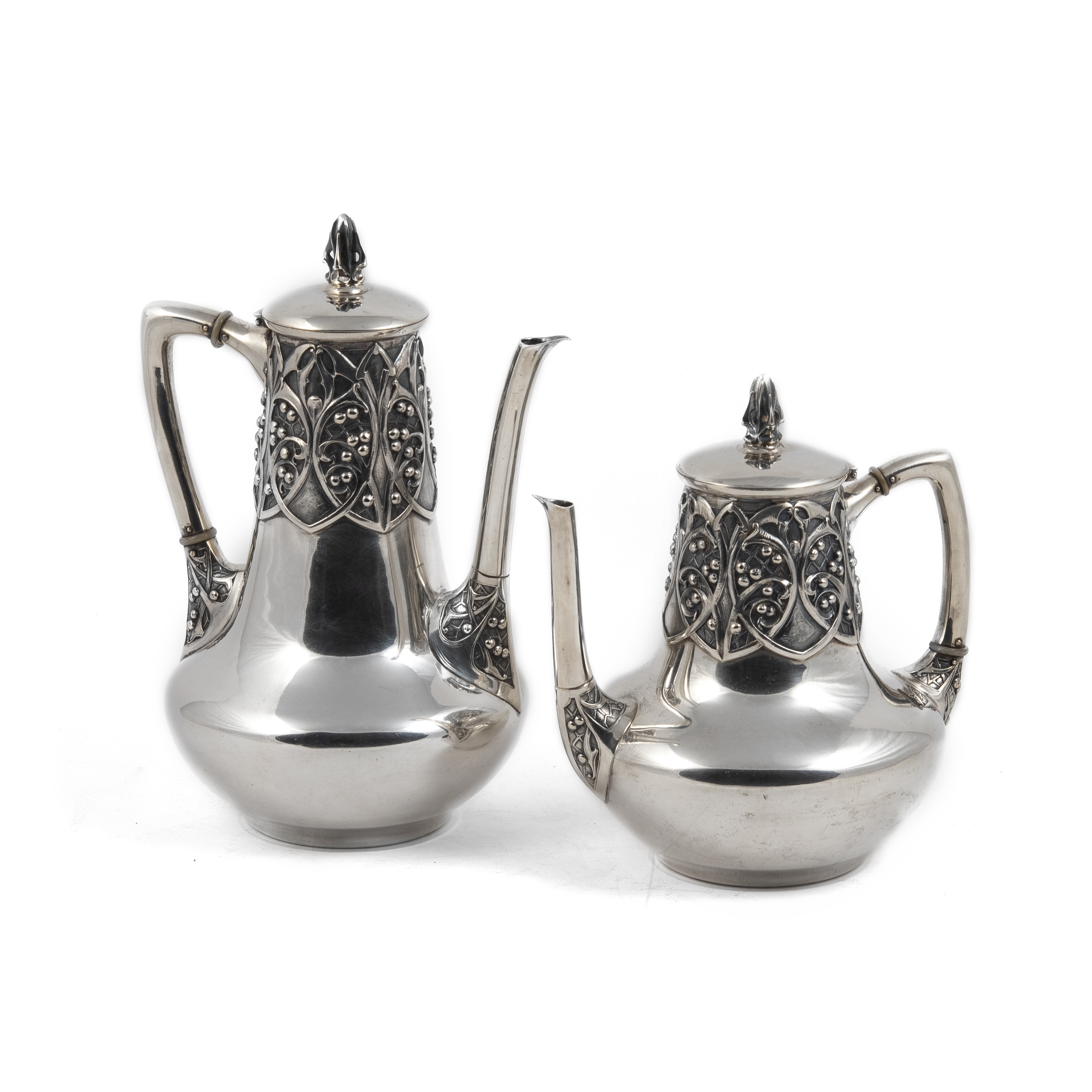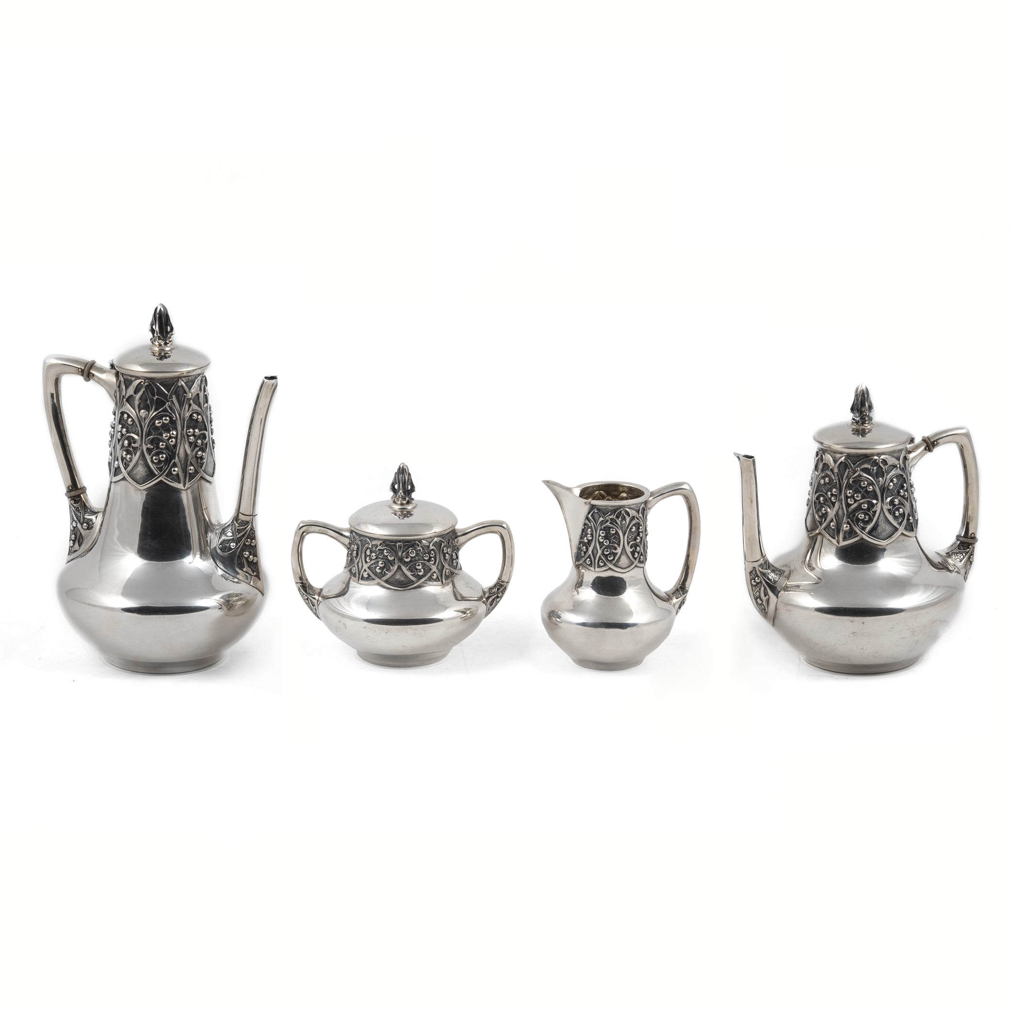 Кофейный сервиз из четырёх предметов: чайник, кофейник, молочник и сахарница.