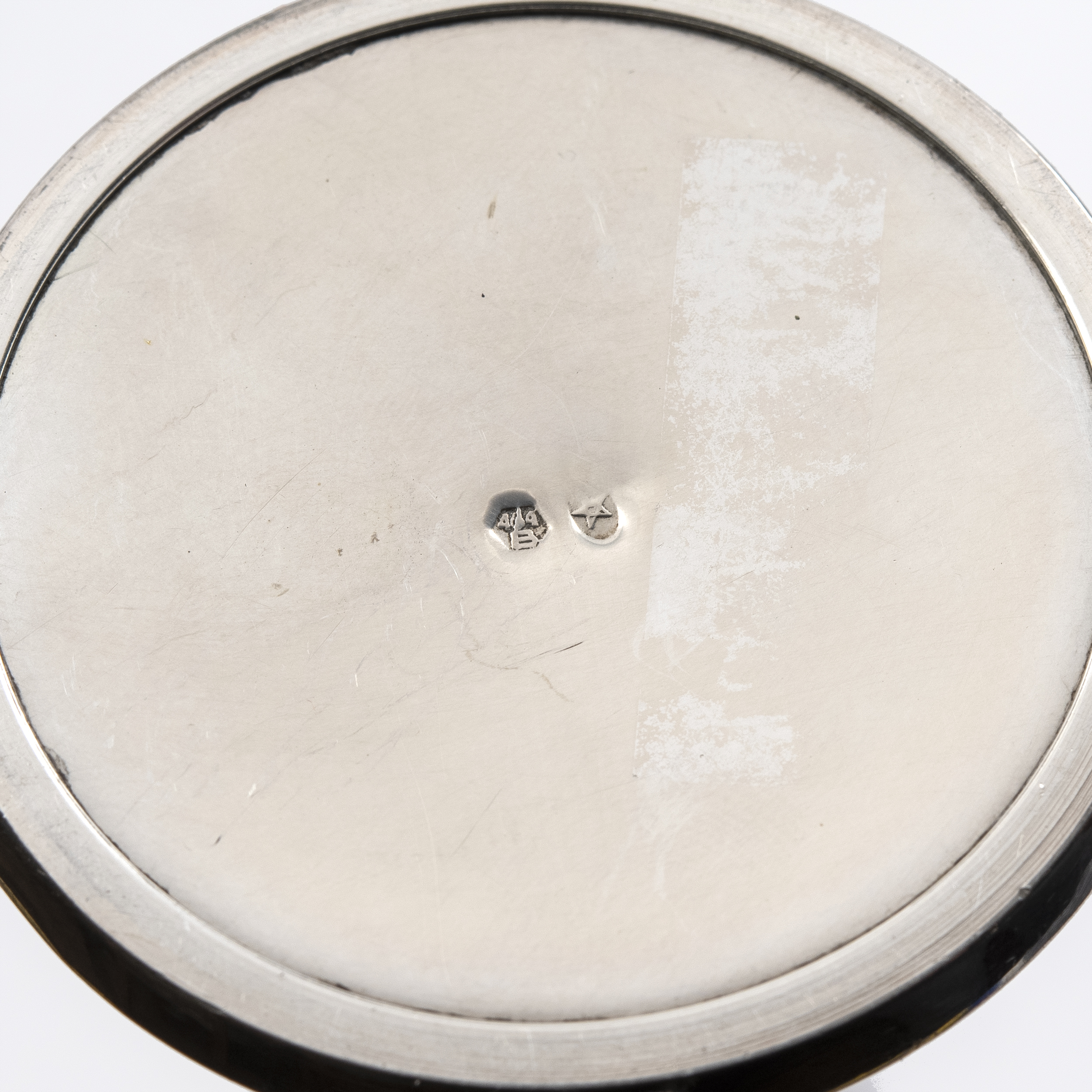Пробирное клеймо Испании в виде пятиконечной звезды в круглом щитке, используемое с 1934 по 1988 год, удостоверяющее, что изделие выполнено из серебра не ниже 915 пробы, а также клеймо мастерской «44B» в шестиугольнике, 925 проба;