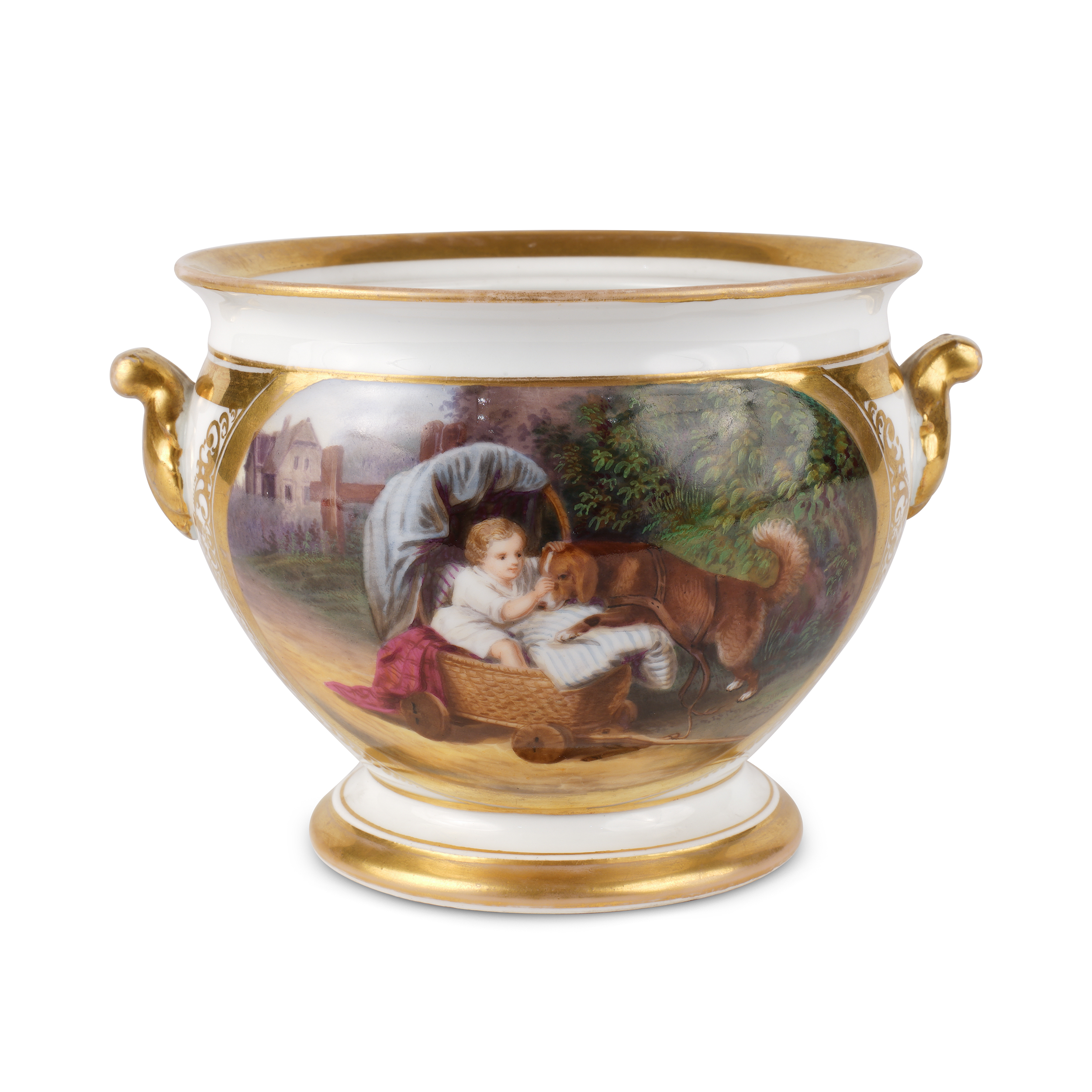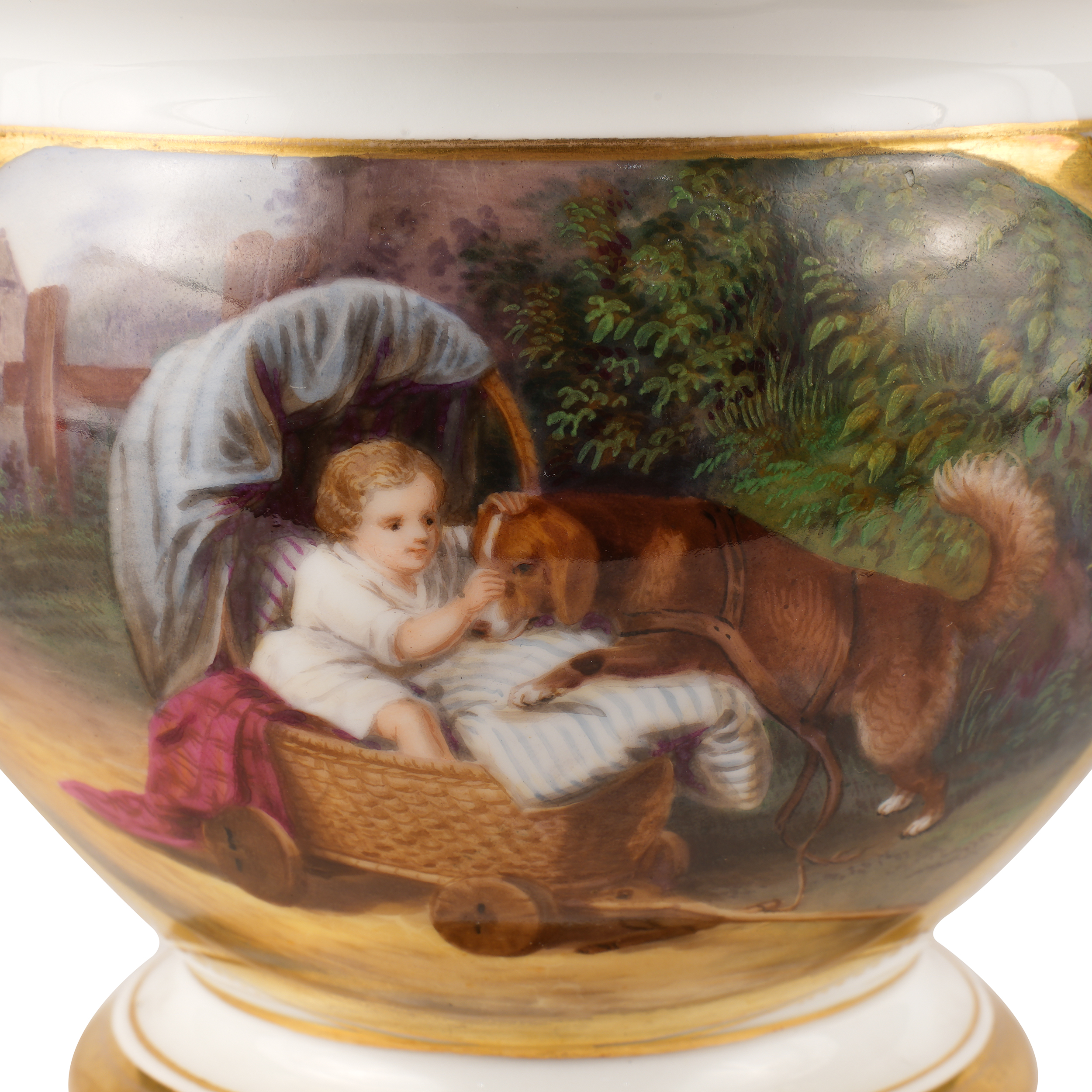 Фарфор, подглазурная полихромная роспись, золочение, клеймо отсутствует, Европа, середина XIX века, высота - 11 см; диаметр - 13,5 см