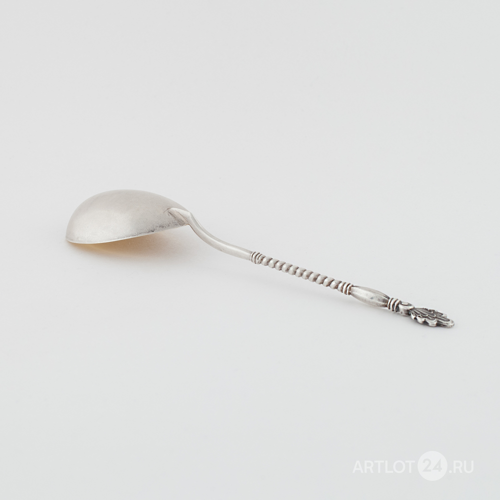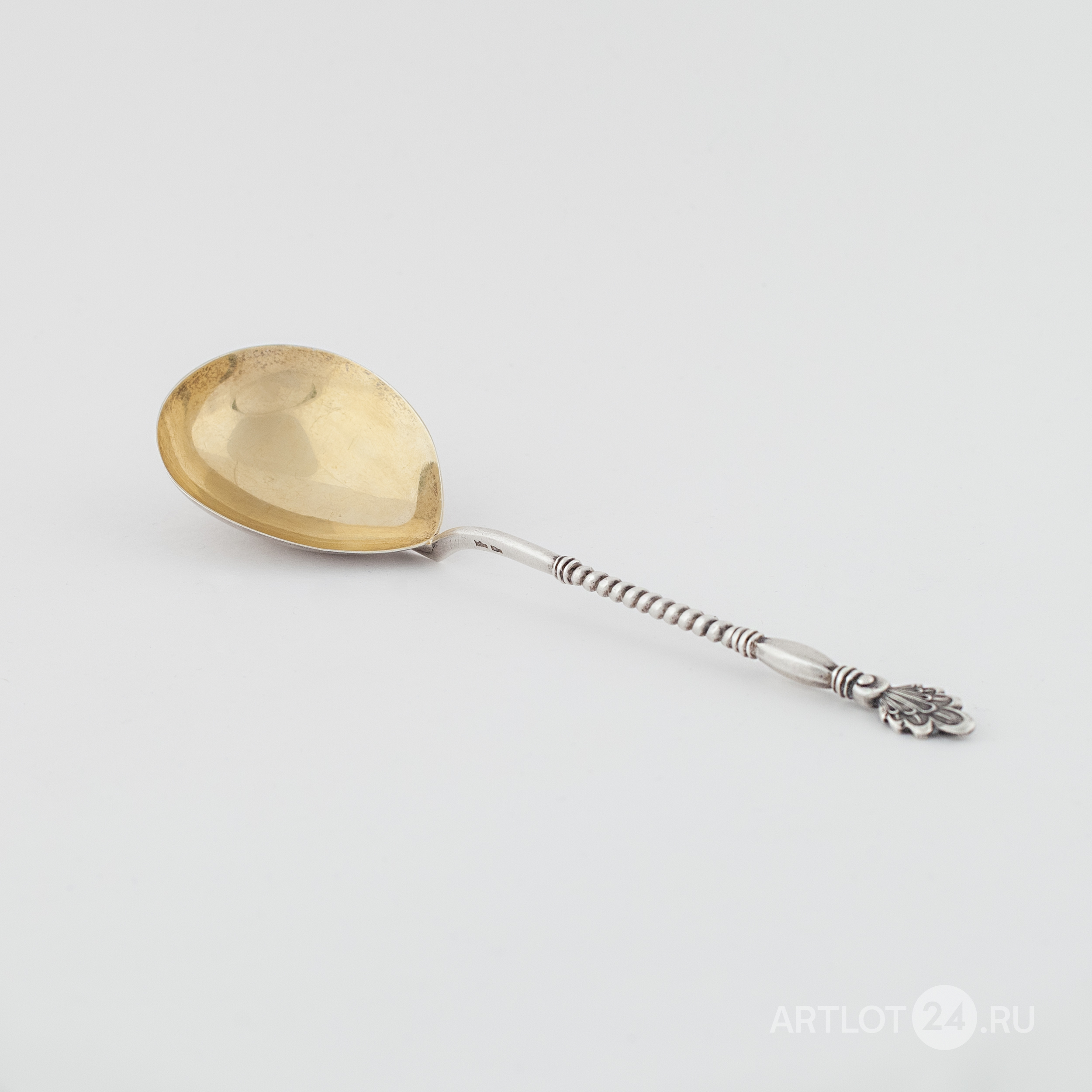 Белый, литье, золочение, клеймо: 875 проба, «голова рабочего» вправо, клеймо завода столовых приборов и посуды им. Дзержинского, 1956-1958 годы, длина 19 см, общий вес: 0,96 грамм.