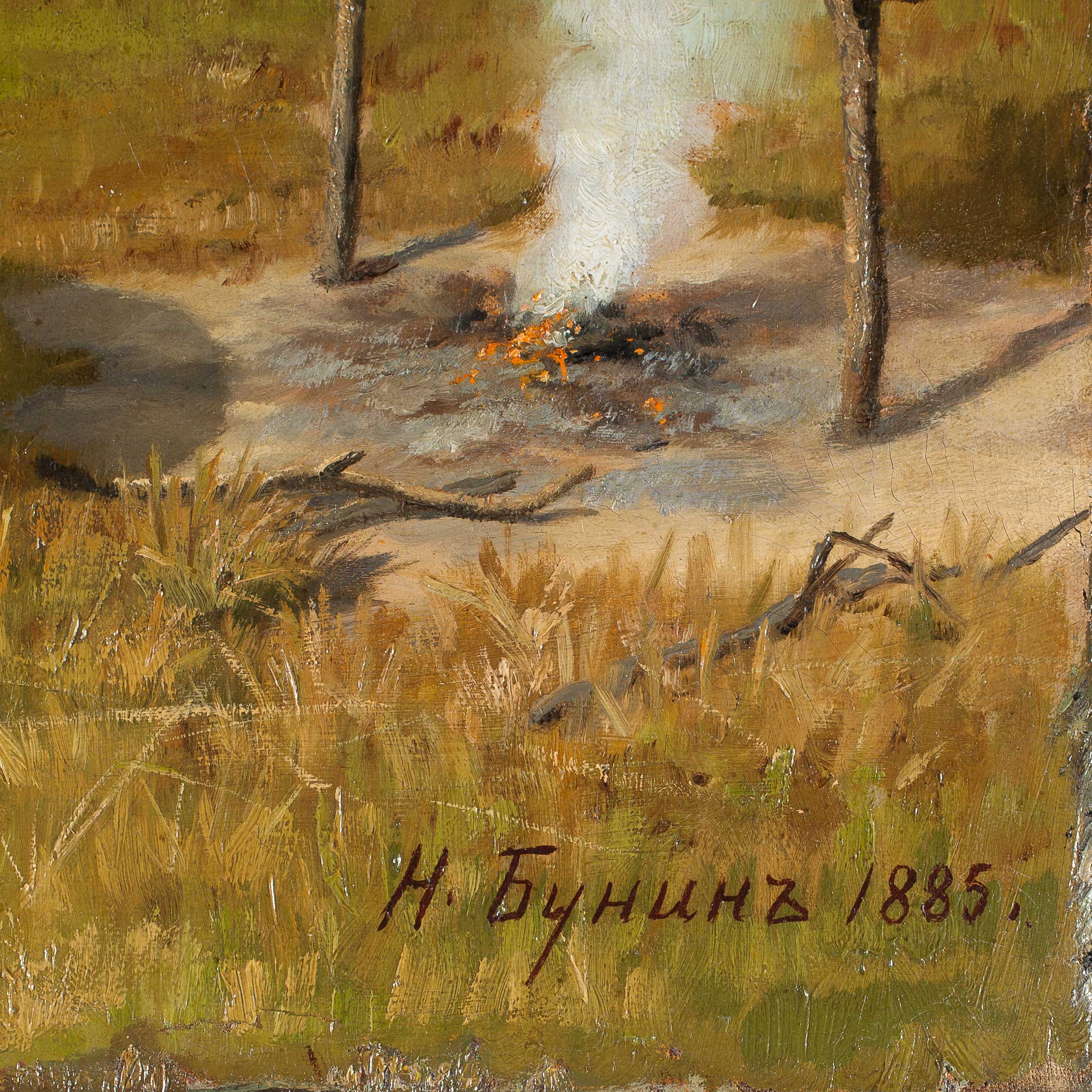 Наркиз Николаевич Бунин был не только выдающимся русским художником батального жанра, владевшим в равной степени искусством как масляной живописи, так и акварели, но также он прошел военную выслугу от вольноопределяющегося рядового в 1877, в годы Турецкой кампании до капитана в 1898 году и в 1900 году вышел в отставку в чине полковника. Н.Н. Бунин является представителем возникшего в конце XIX века узкого круга художников-офицеров, к которому относятся такие художники и скульпторы как А. Сафонов, П. Бабаев, Н. Либерих, П. Шипов и К. Кох.