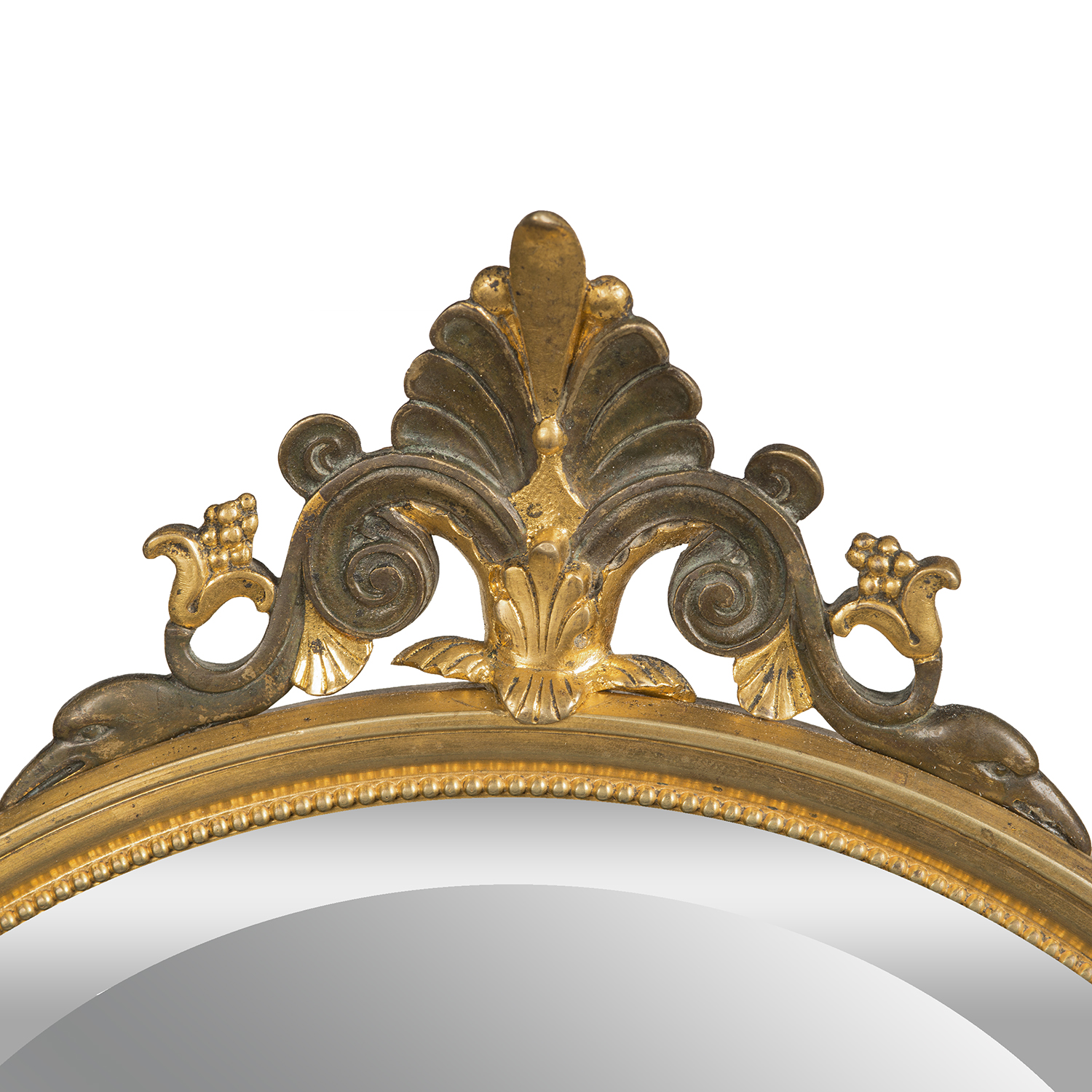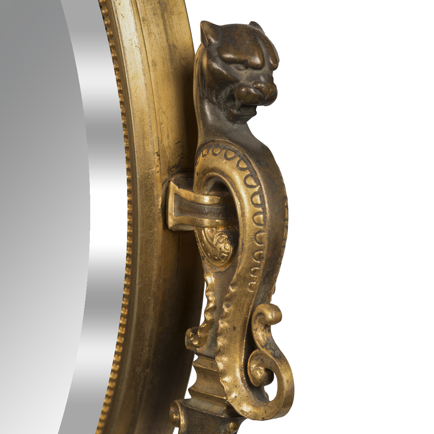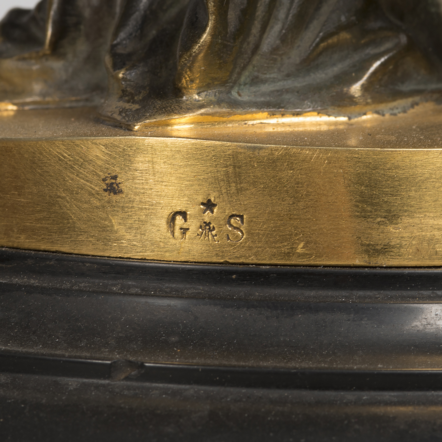 Зеркало для туалетного столика в стиле историзм. Бронза, литье, патинирование, монтировка, зеркальное стекло с фацетом, основание черный мрамор, клейма: «G&S» под звездой, в литье воспроизведение подписи мастера «Salmson», автор модели – французский скульптор Жан Жюль Салмсон (Jean Jules Salmson, 1823-1902), Франция, конец XIX века, размеры: высота 64 см, диаметр основания 18 см