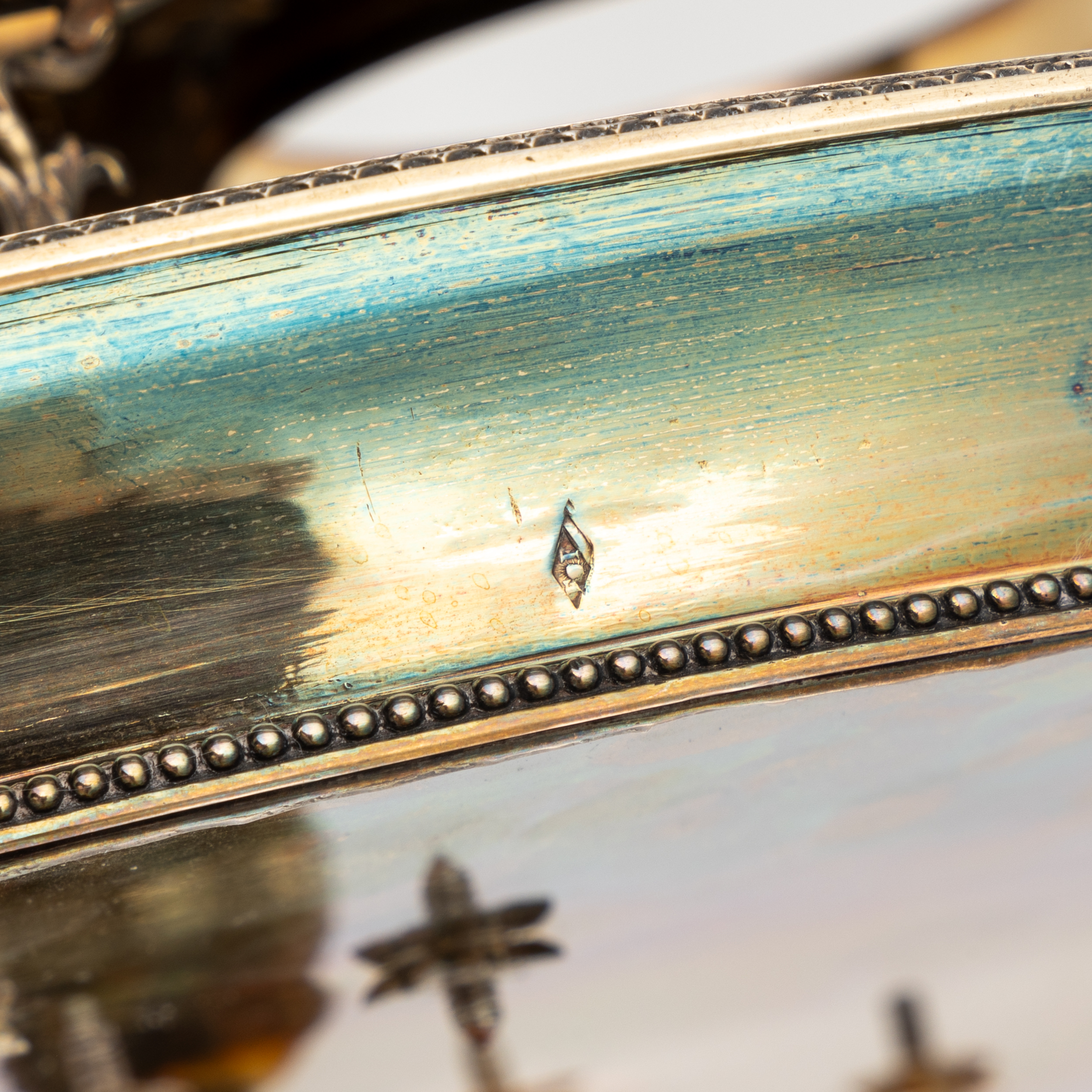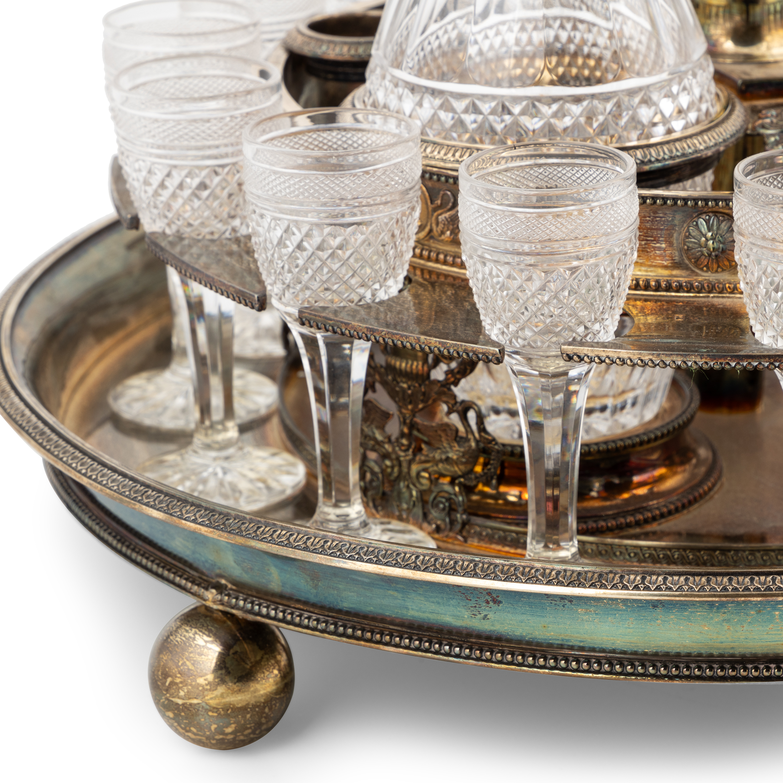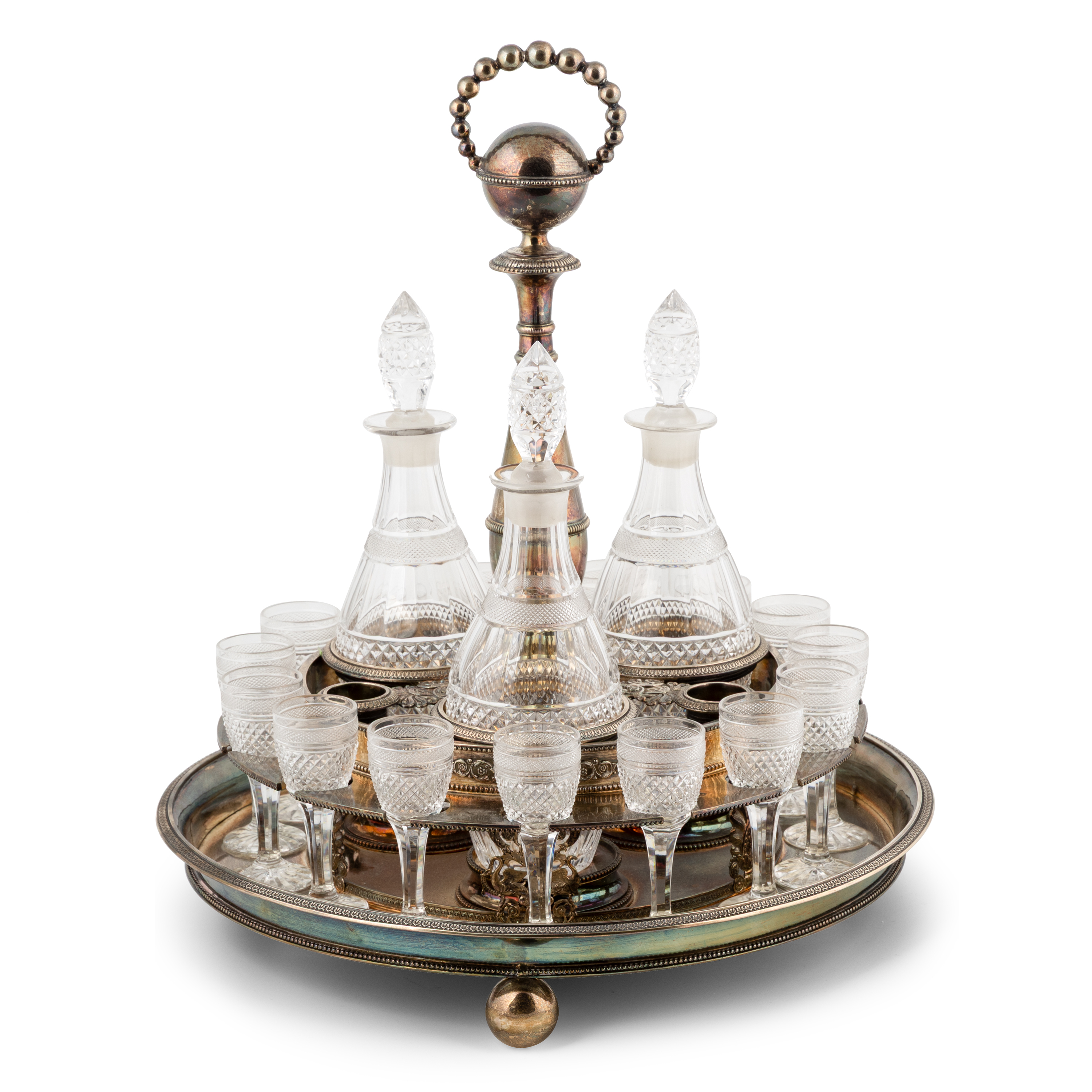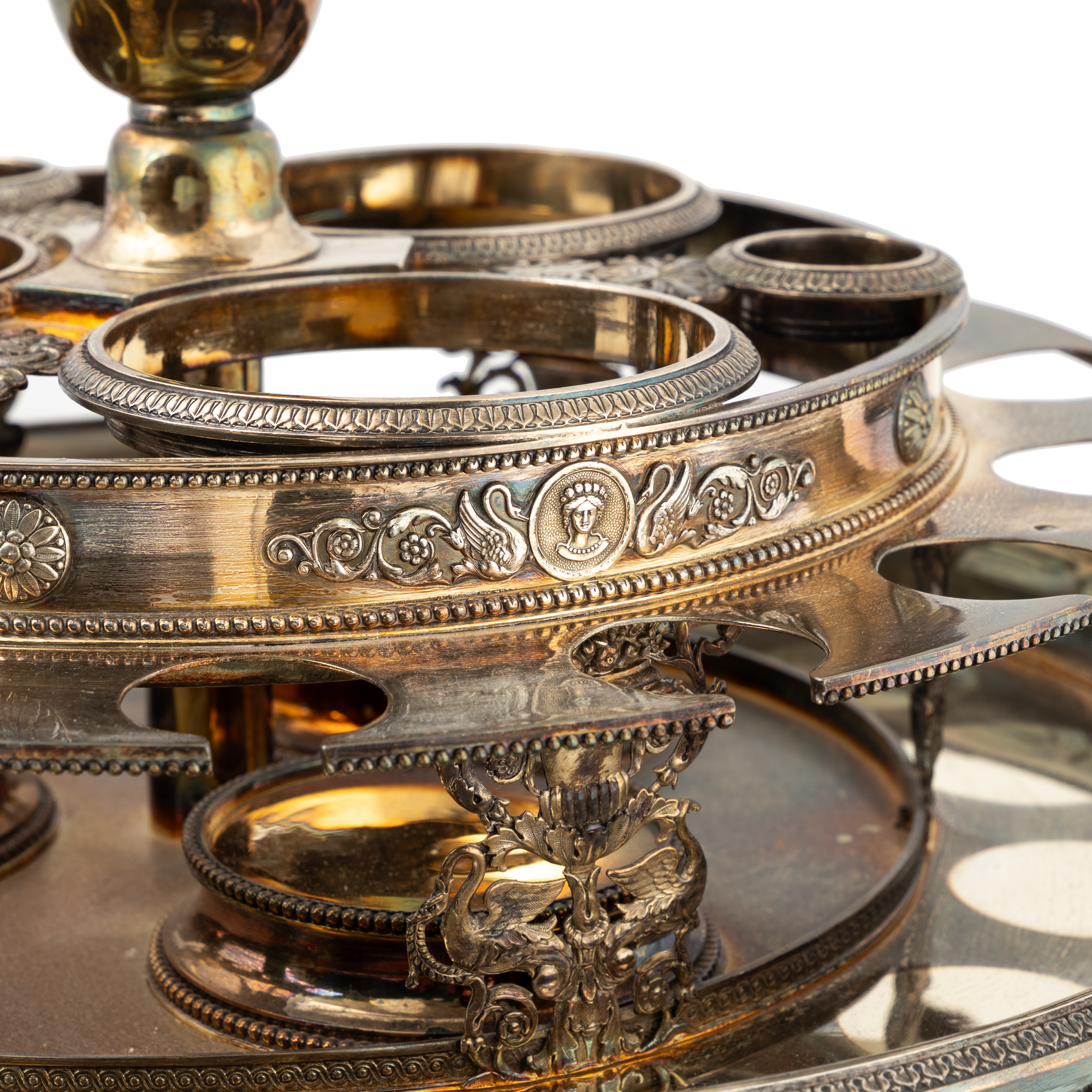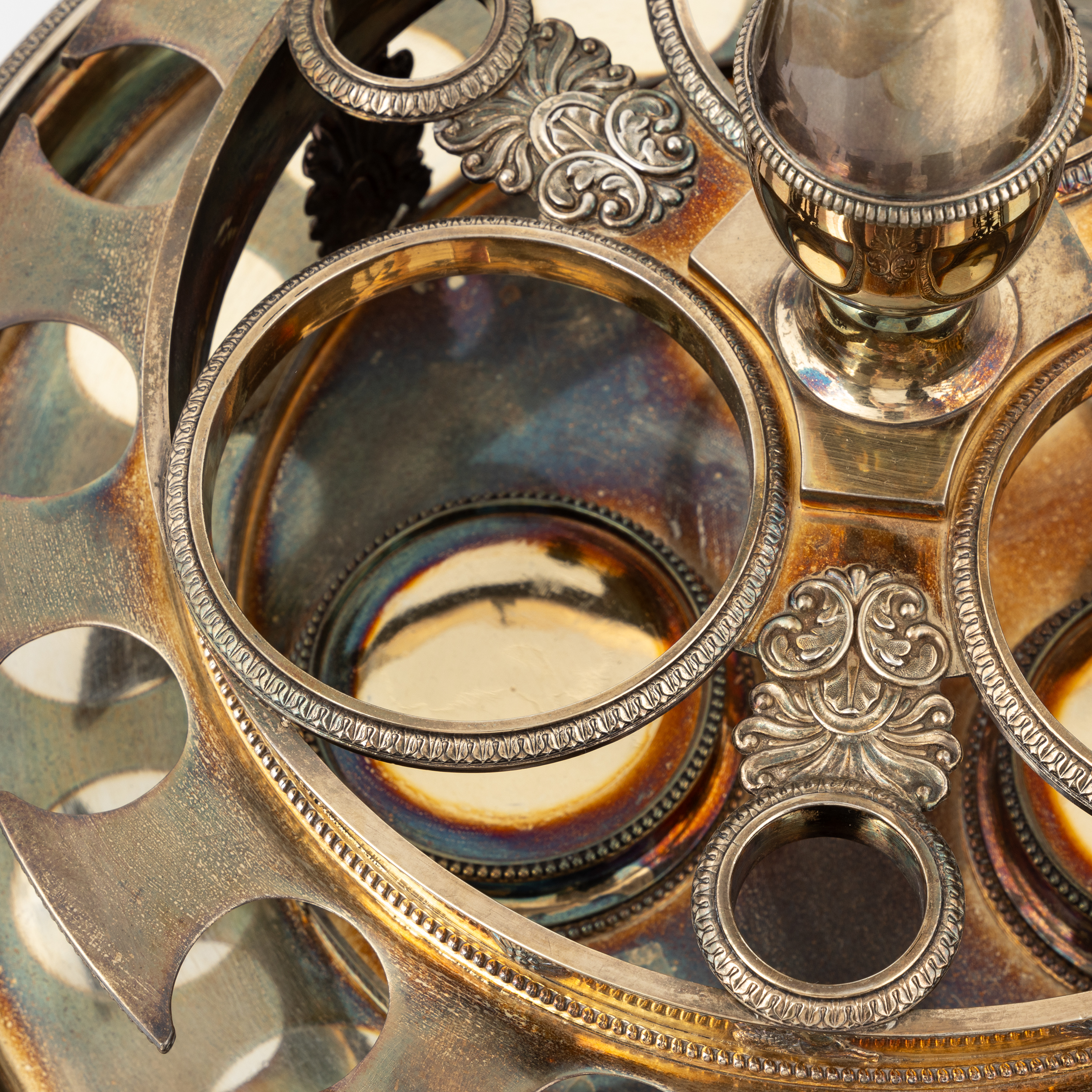 Серебряная подставка (201 г / серебро); литье, чеканка; хрусталь, гранение, высота подставки – 40, 5 см.