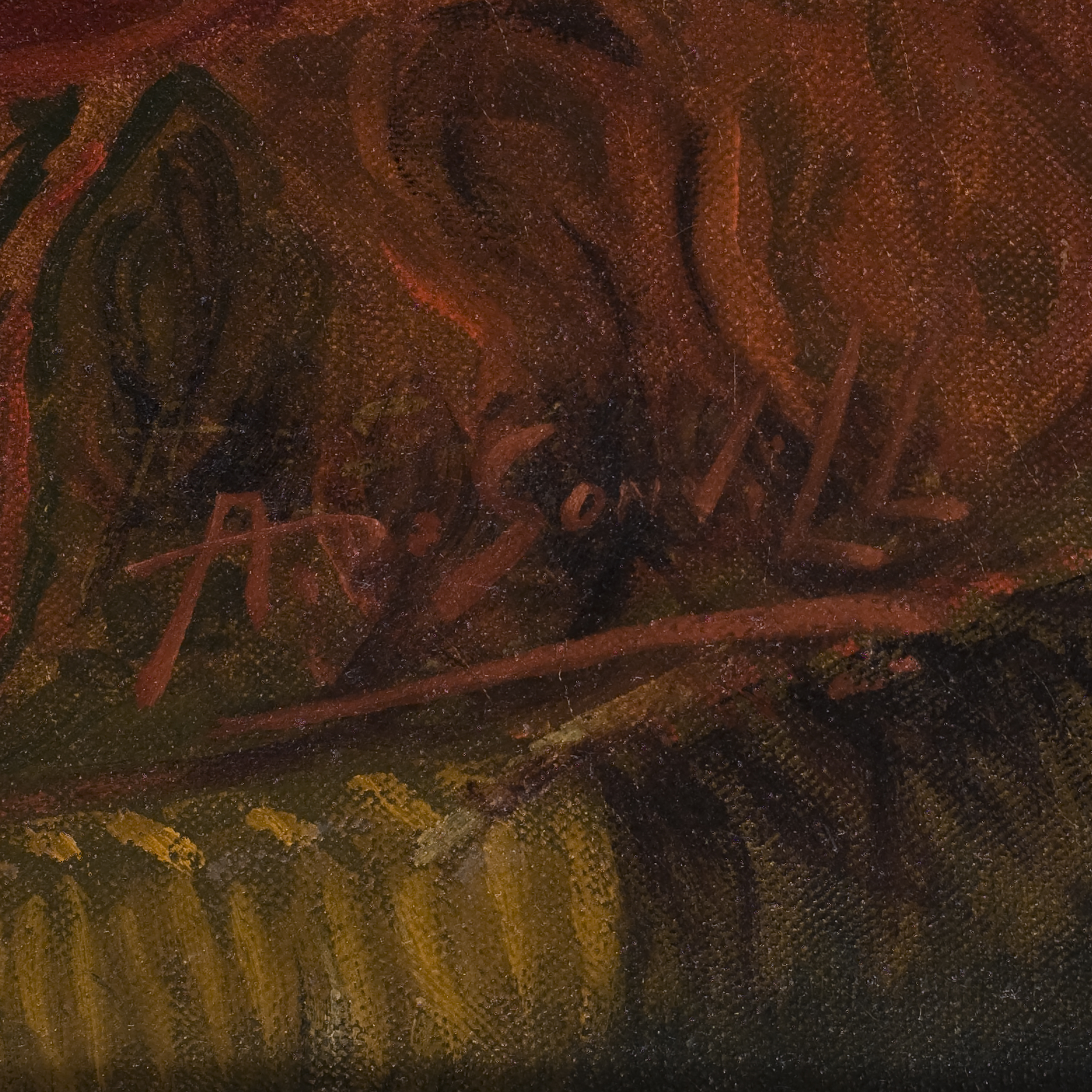 Холст, масло, в правом нижнем углу подпись "A. De Sonville", предположительно французский художник Альберт Де Сонвиль (Albert De Sonville), Бельгия, около 1910 года, размер холста: 116 х 97 см, в раме: 151 х 133 см