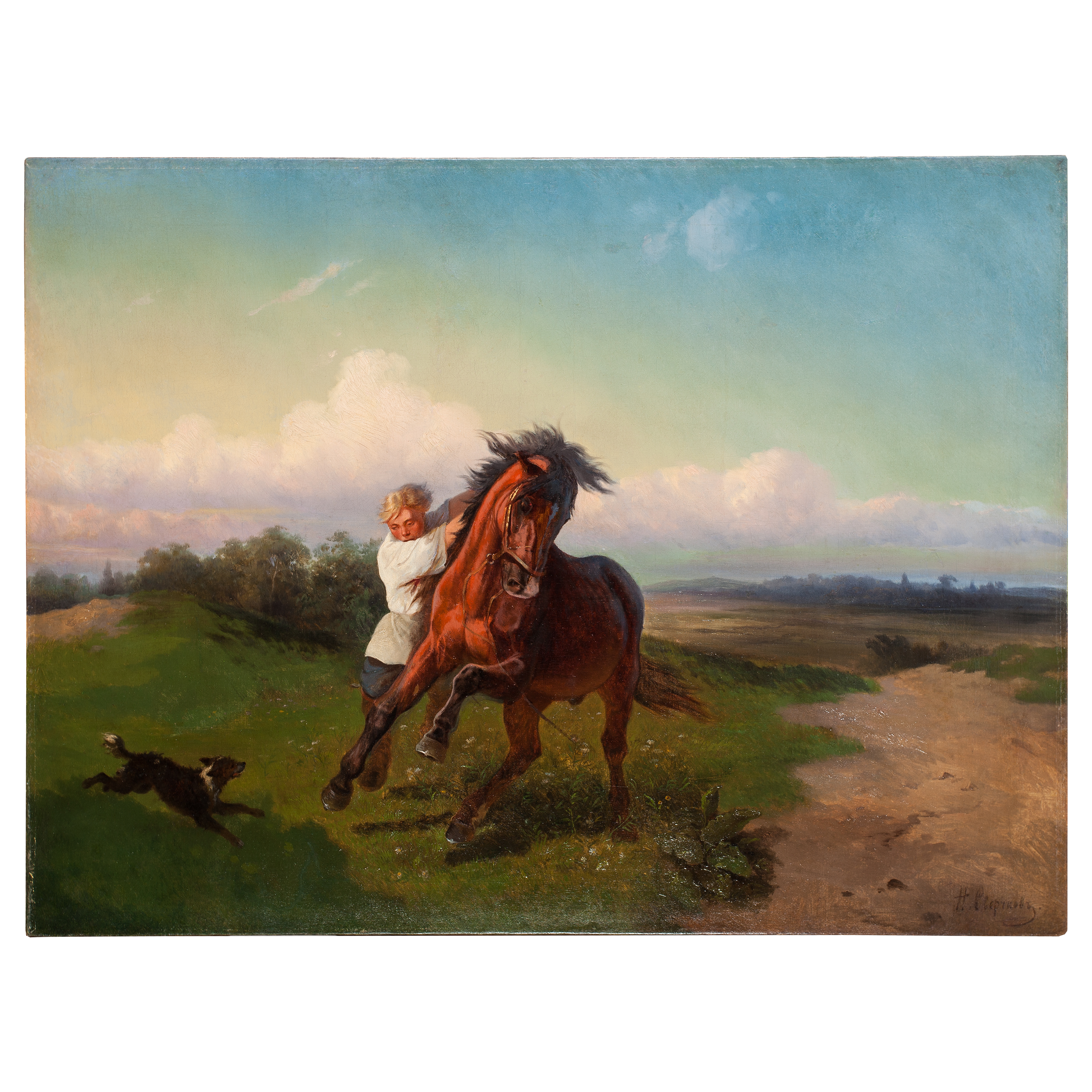 Холст, масло, справа внизу подпись: «Н.Сверчковъ», последняя четверть XIX века, размер холста: 79 х 107 см, в раме: 106 х 134 см.