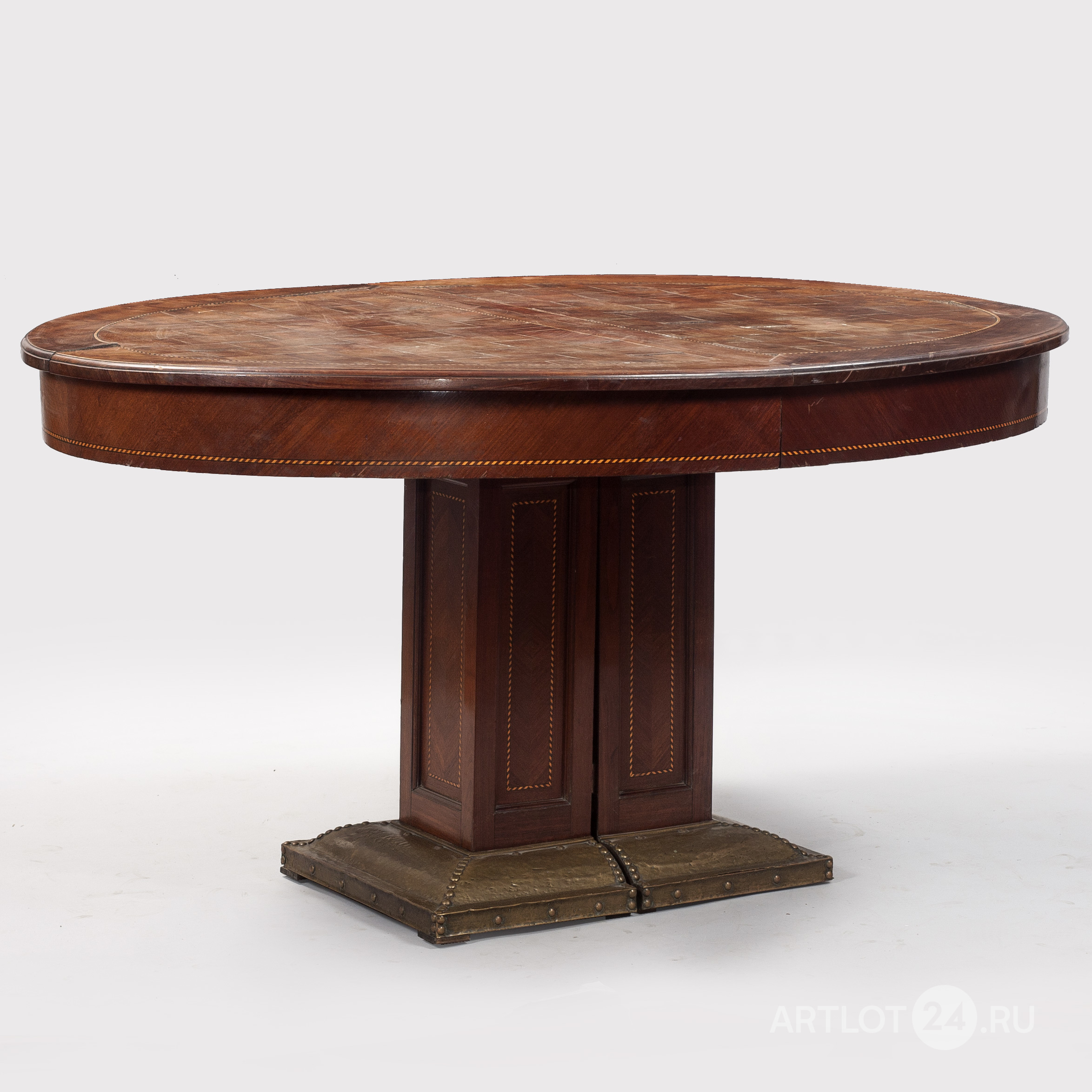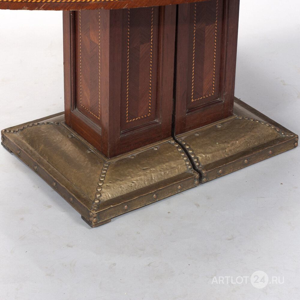 Наборная столешница в технике паркетри. Красное дерево, палисандр, фанерование, латунь, Европа, начало XX века, размер (в/д/ш): 110 х 145 x 76 см