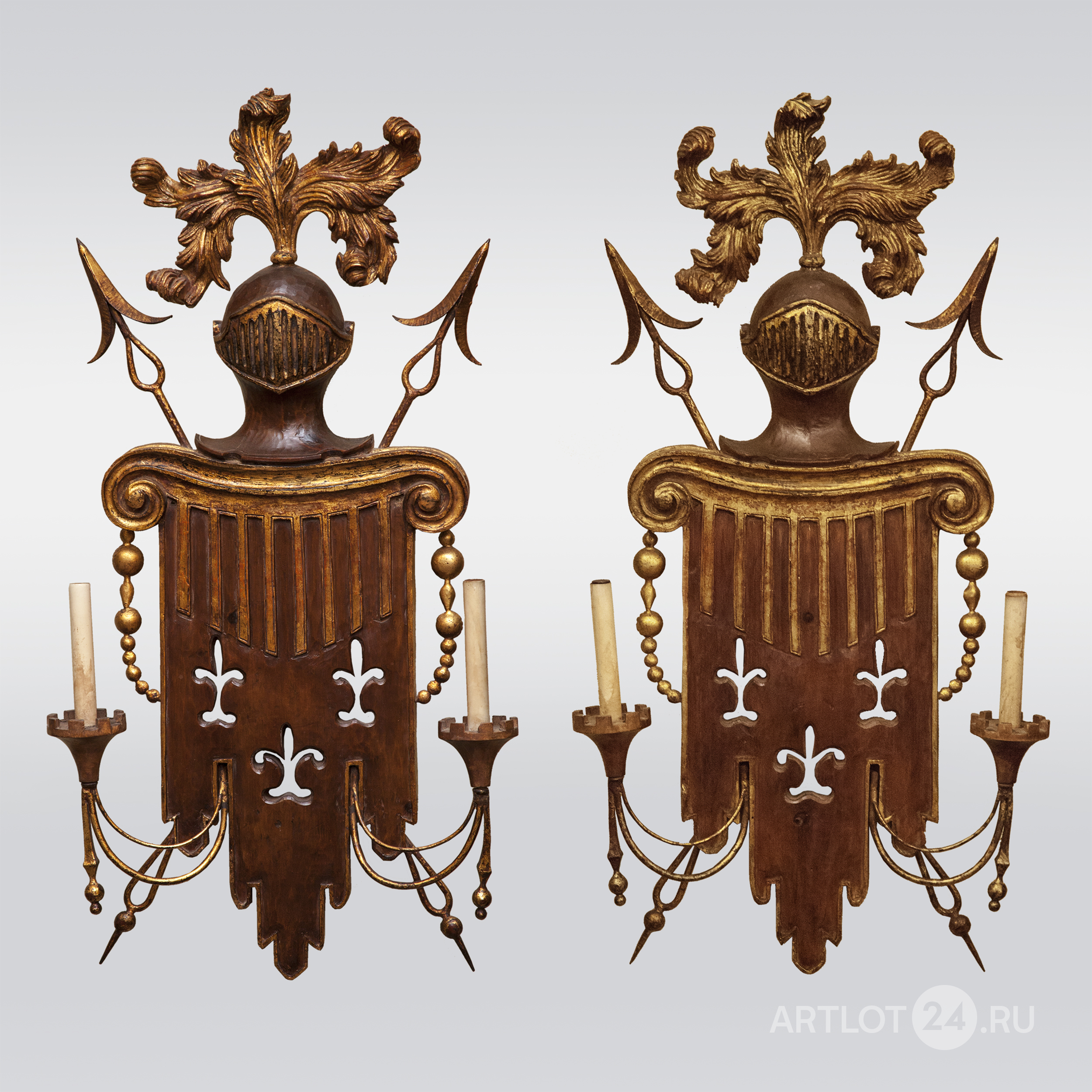 Пара настенных бра на две свечи в стиле английского ренессанса.