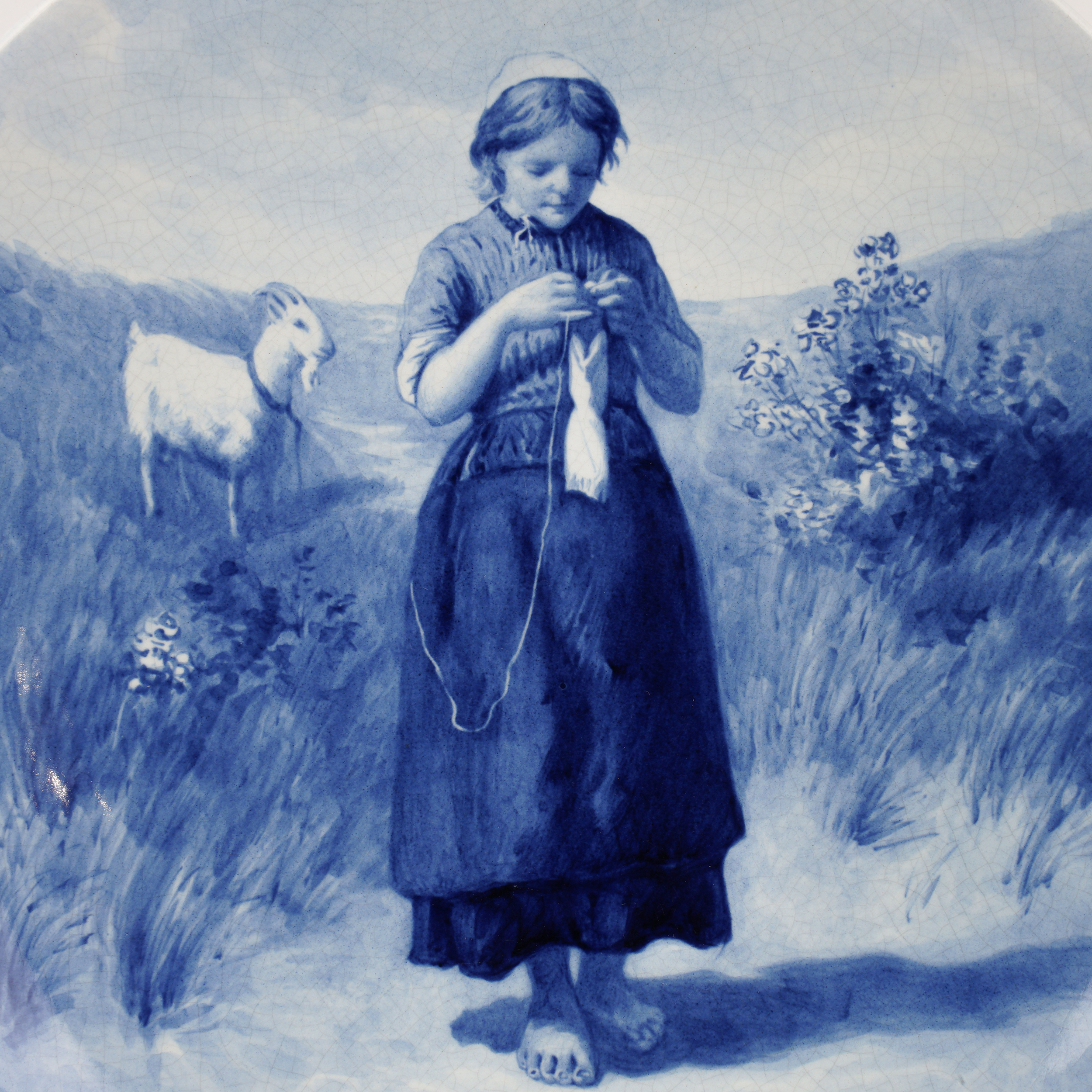 Тарелка «Босая девочка с козой» выполнена по сюжету картины Дэвида Артца «Вязальщица в дюнах».