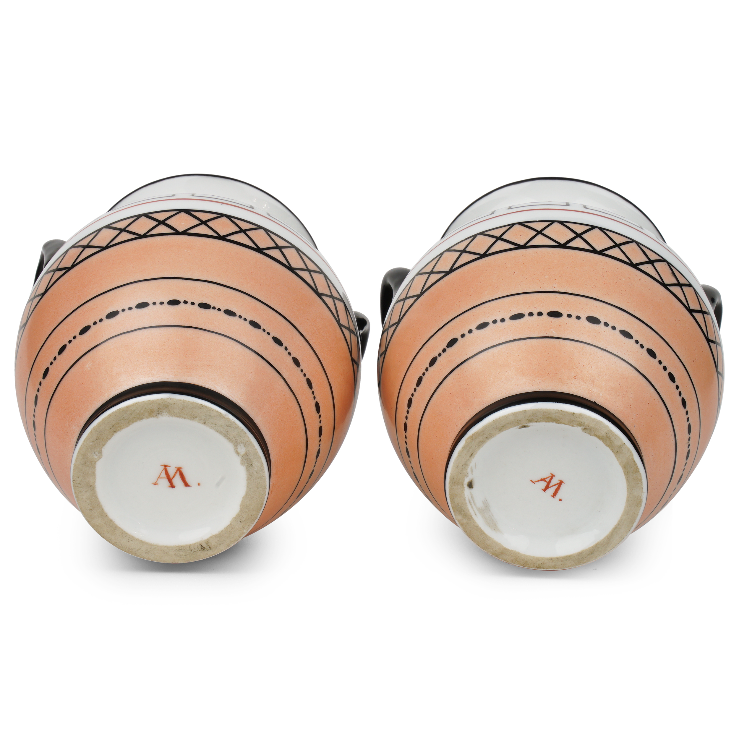 Фарфор, монохромное крытье, монохромная роспись; надглазурные марки в виде совмещенных «АМ»; высота - 11,6 см.