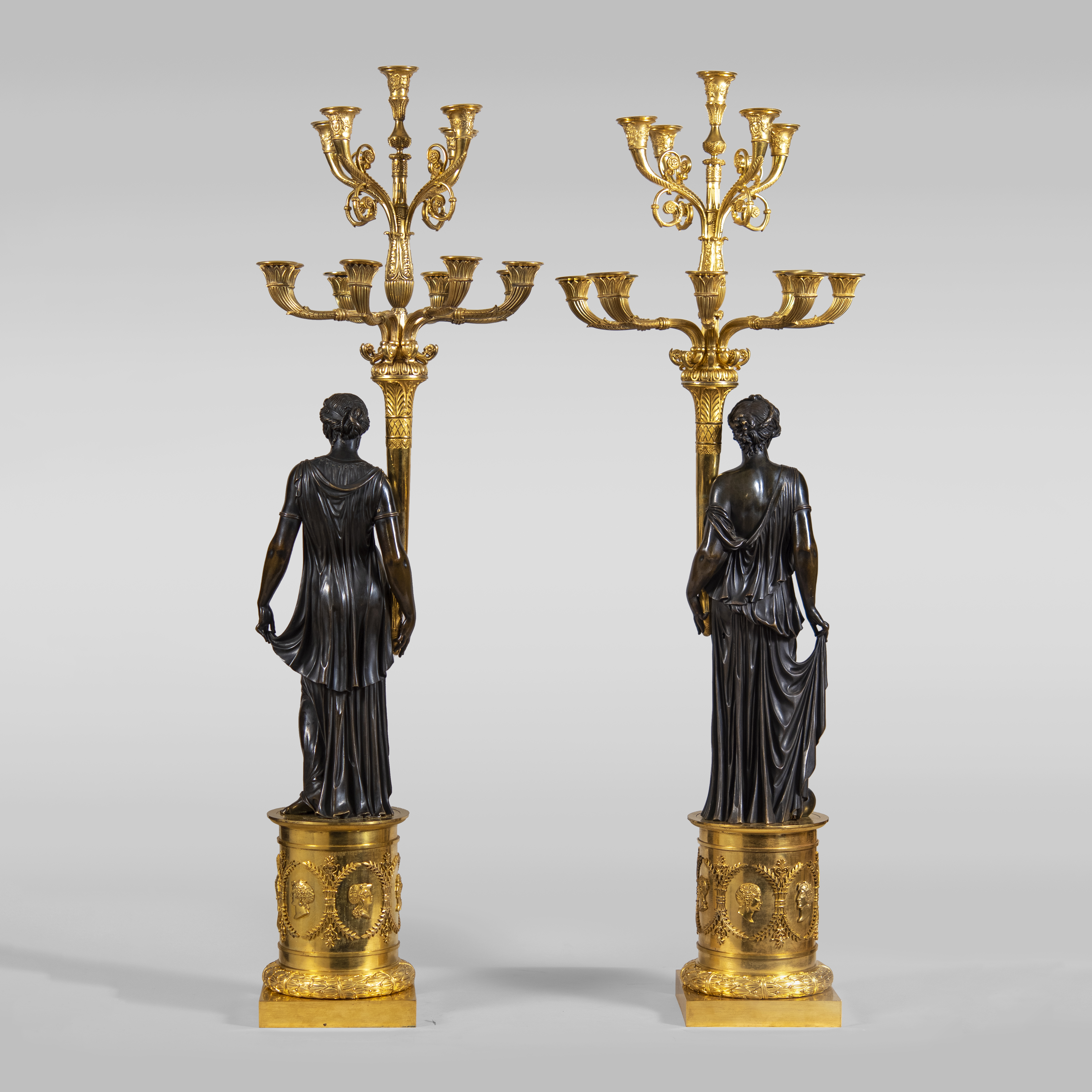 Парные дворцовые канделябры в виде женских фигур мастерской Пьера-Филиппа Томира