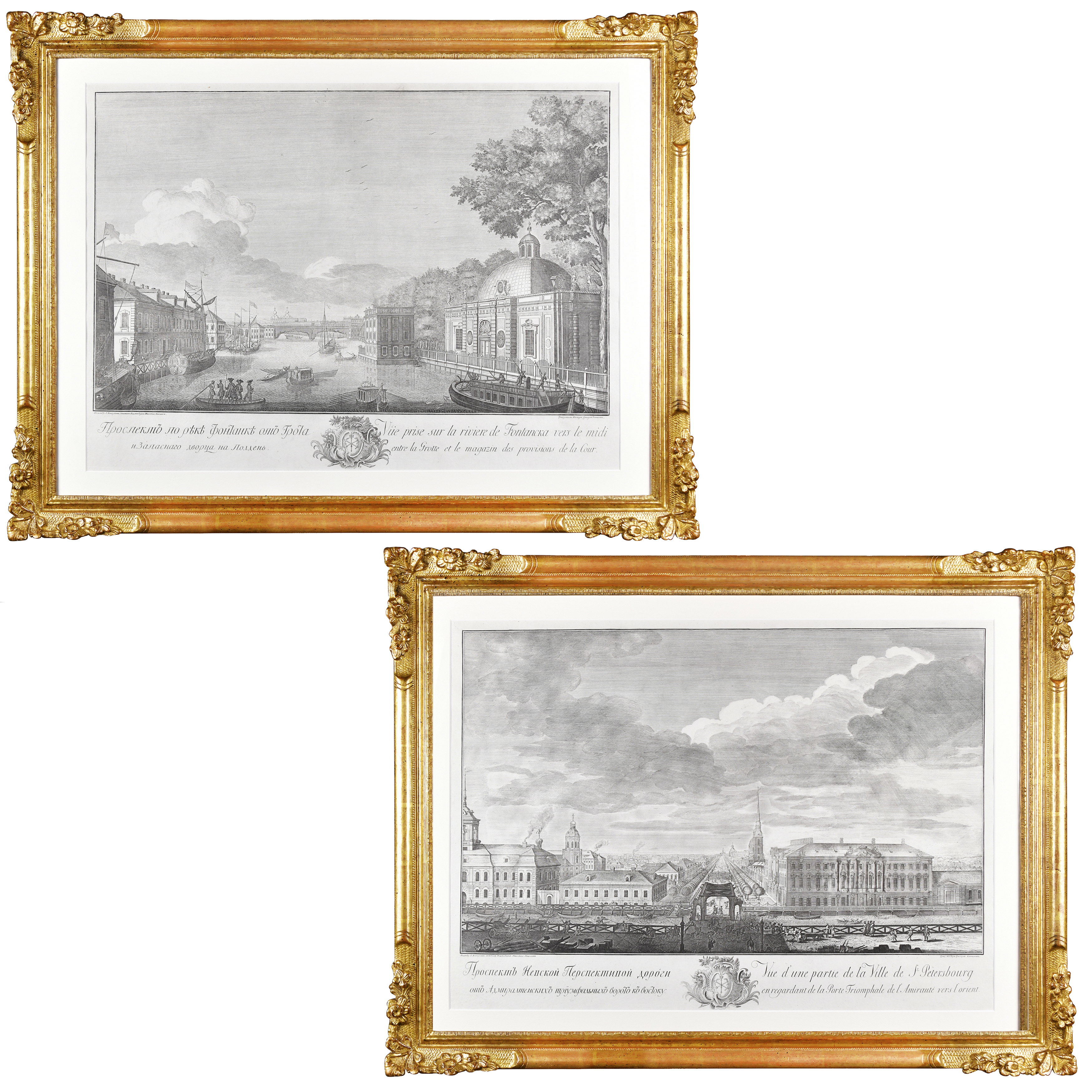 Гравюры Григория Аникиевича Качалова (1711/1712 - 1759) по оригиналу мастера архитектурного пейзажа Михаила Ивановича Махаева (1718 - 1770) 1748-1749 годов. Веленевая бумага, гравюра резцом на меди, офорт.
