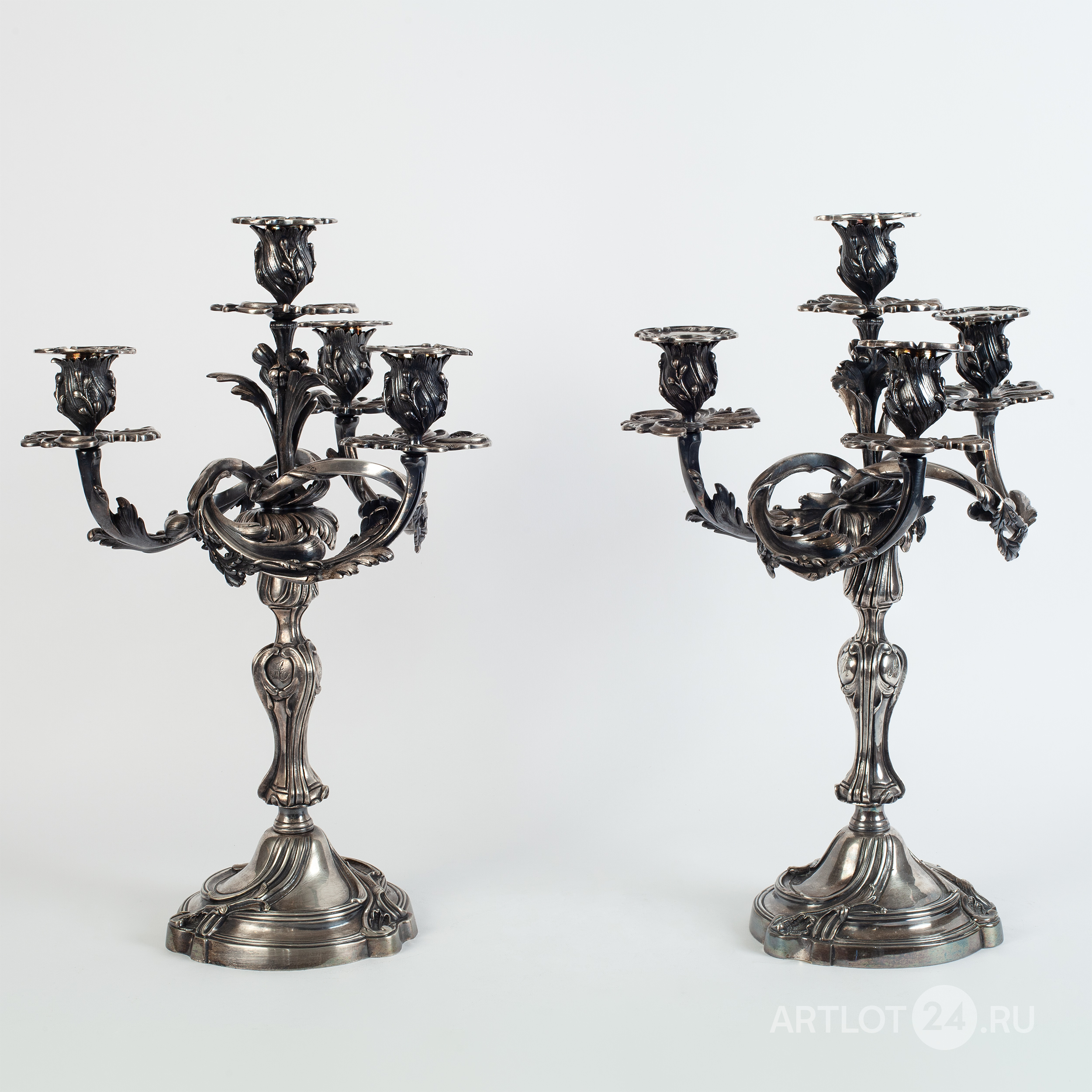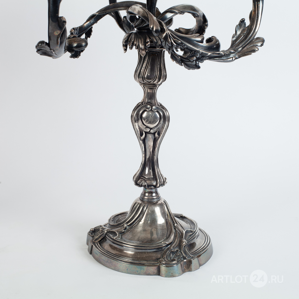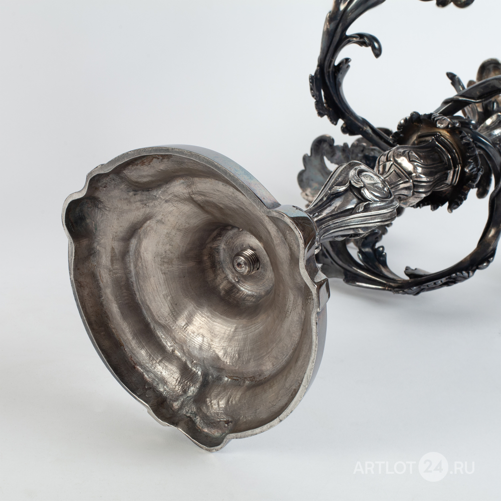 Бронза, литье, глубокое посеребрение, чеканка, клейма отсутствуют, монограммы в картушках штихелем