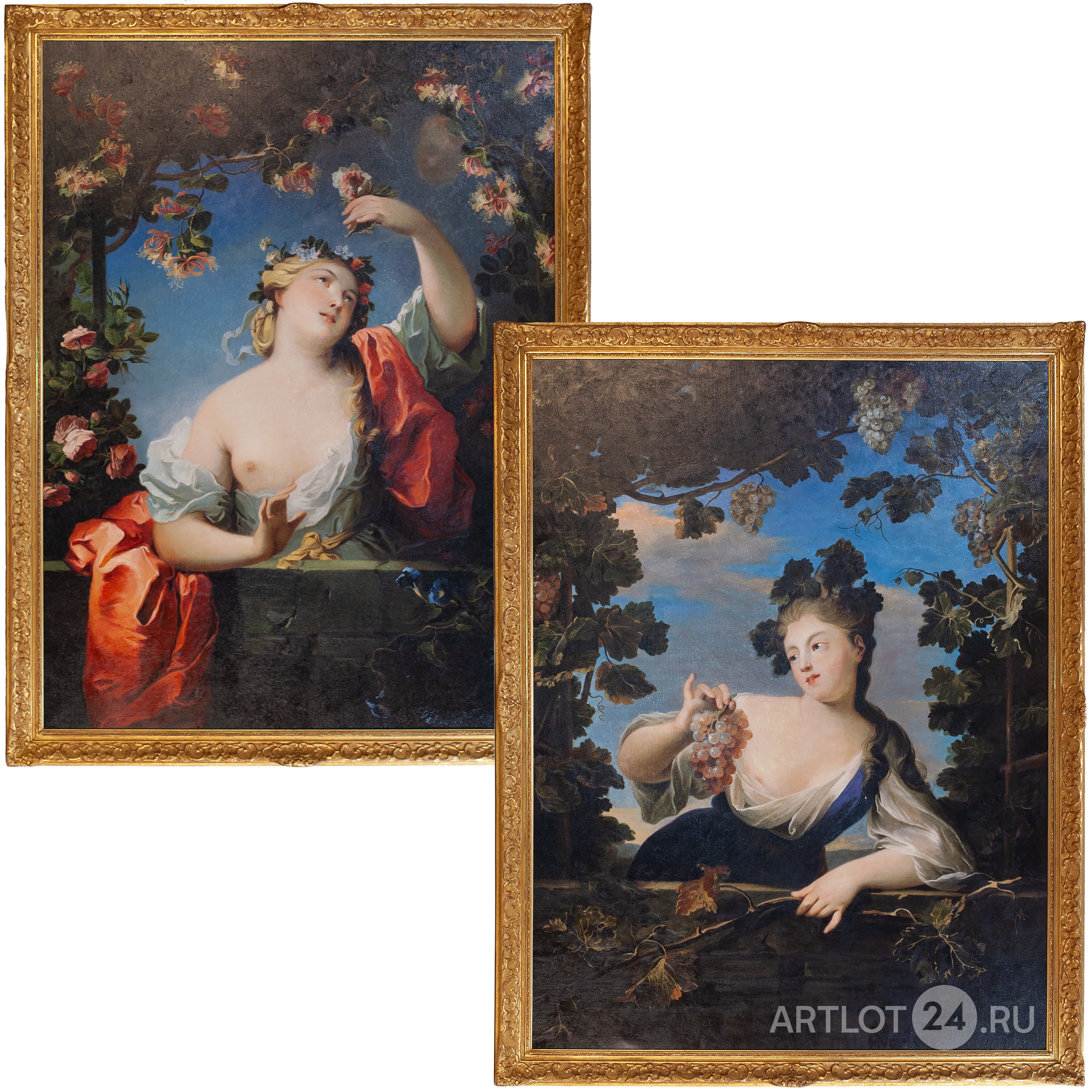 Копии с картин Робера Леврак де Турньера (1667-1752). Холст, техника жикле с применением фактурных гелей, масло, рамы в стиле Людовика XV, размер: холста 129 x 94 см, в рамах: 142 x 109 см