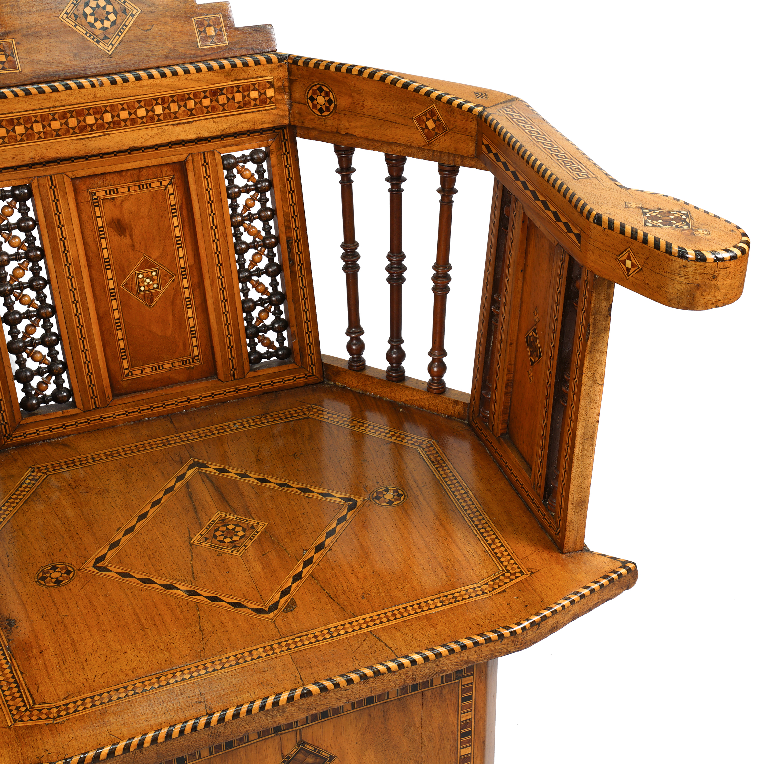 Розовое дерево, резьба, маркетри, инкрустация фруктовыми породами деревьев.