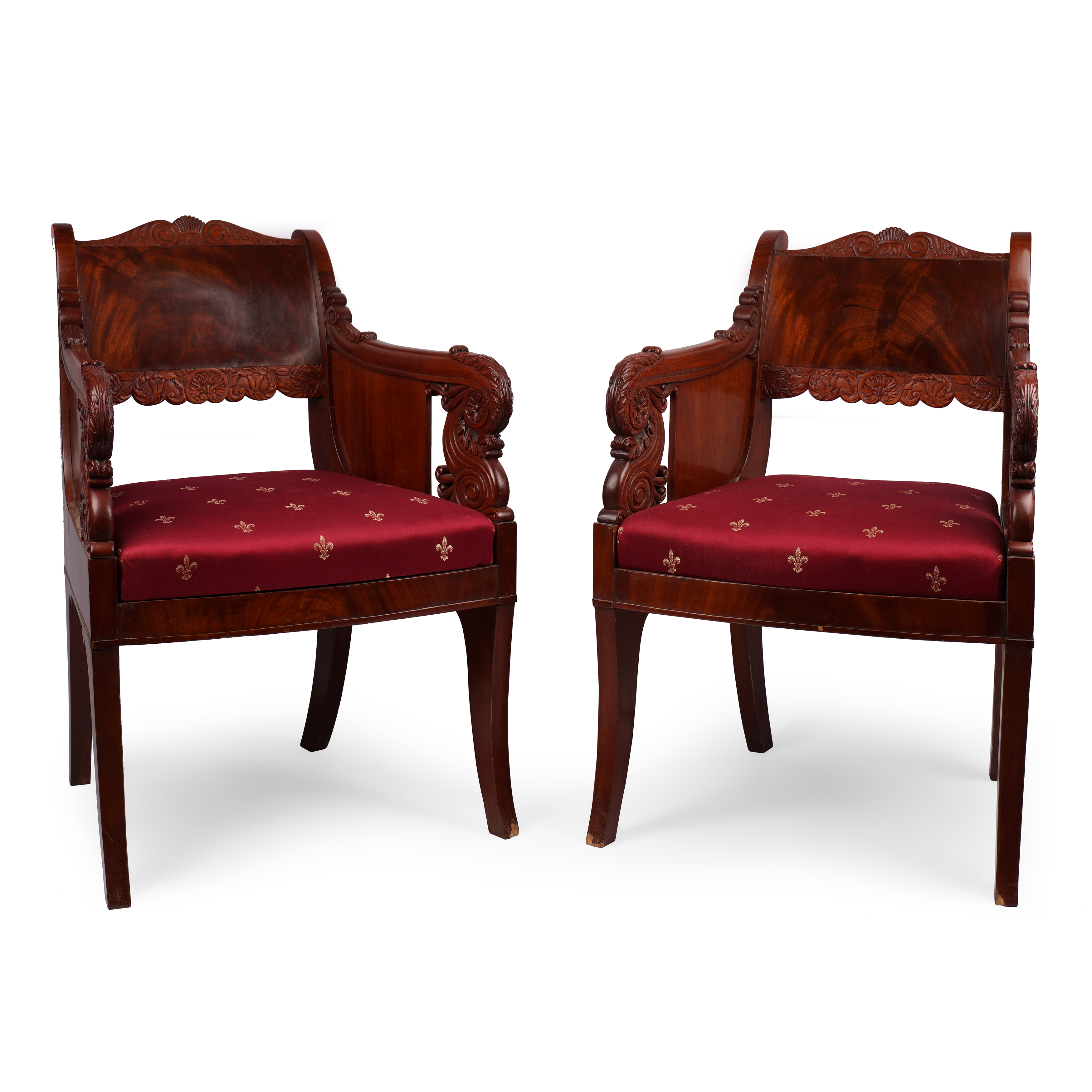 Красное дерево (шпон), хвойные породы дерева (основа), шпонирование, резьба, тонировка, Россия, первая половина XIX века, размер (в/ш/г): 84х59х49 см.